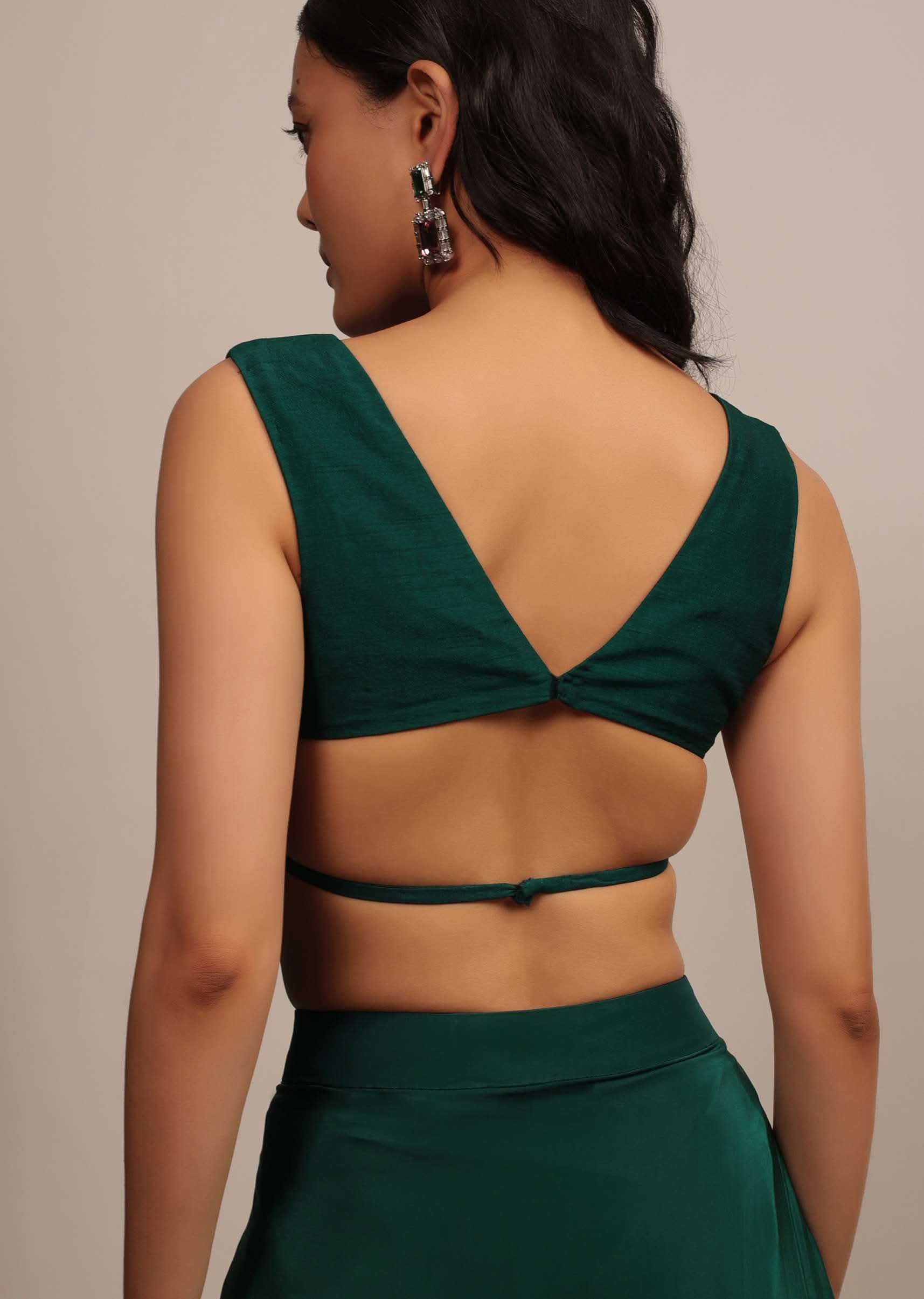 Emerald Green Sleeveless Blouse In Raw Silk With Strappy Back Hook