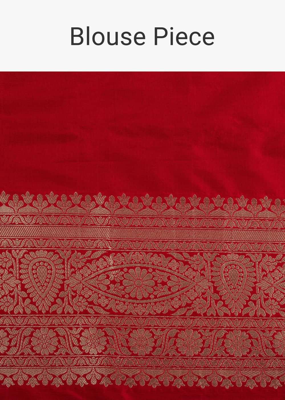 Fiery Red Zari Banarasi Saree In Katan Silk With Single Zari Work And Unstitched Blouse
