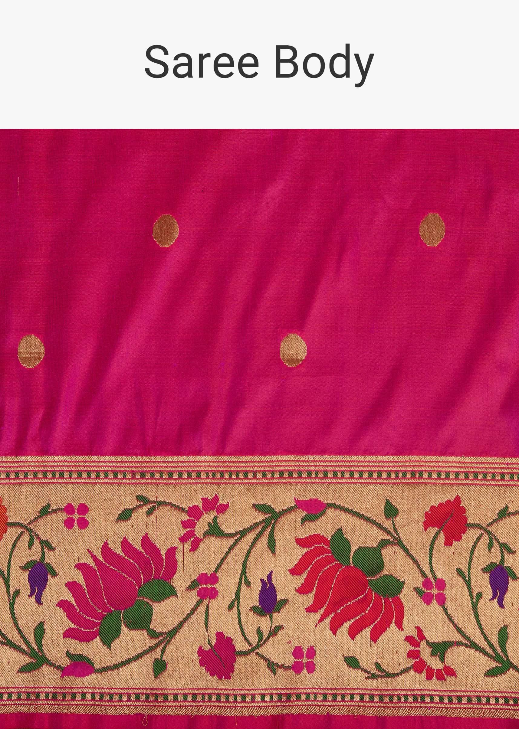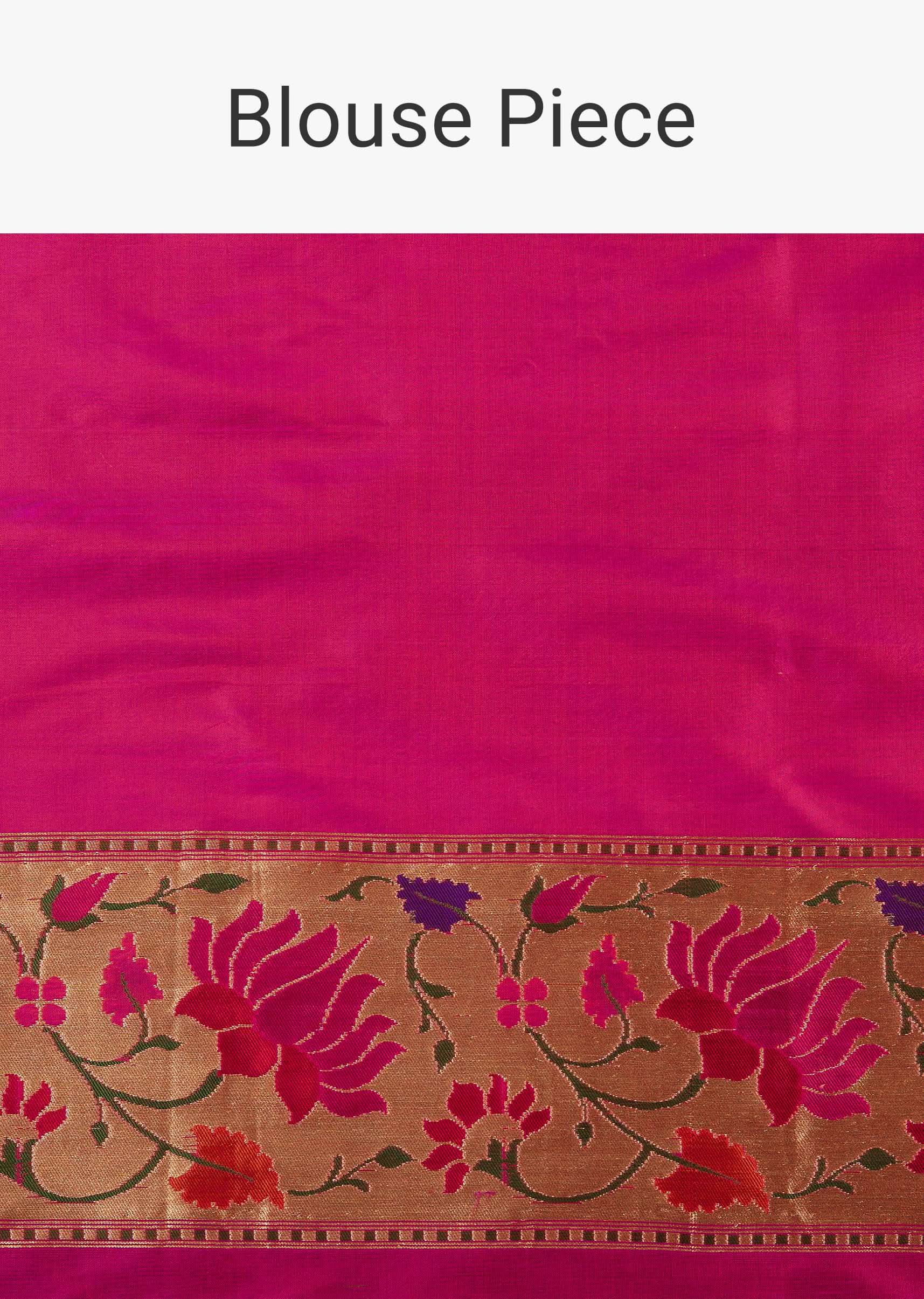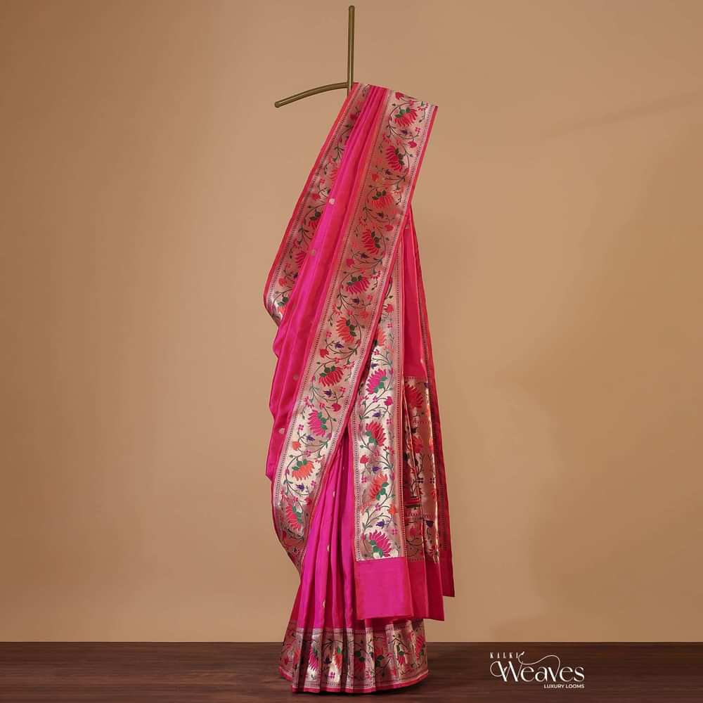 Fluorescent Pink Banarasi Saree In Katan Silk With Paithani Pallu And Unstitched Blouse