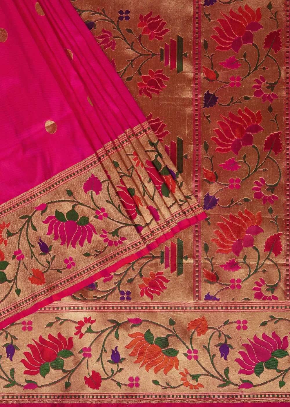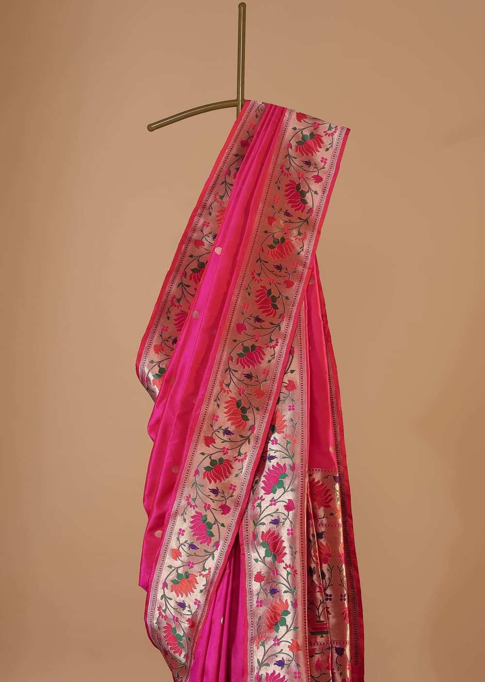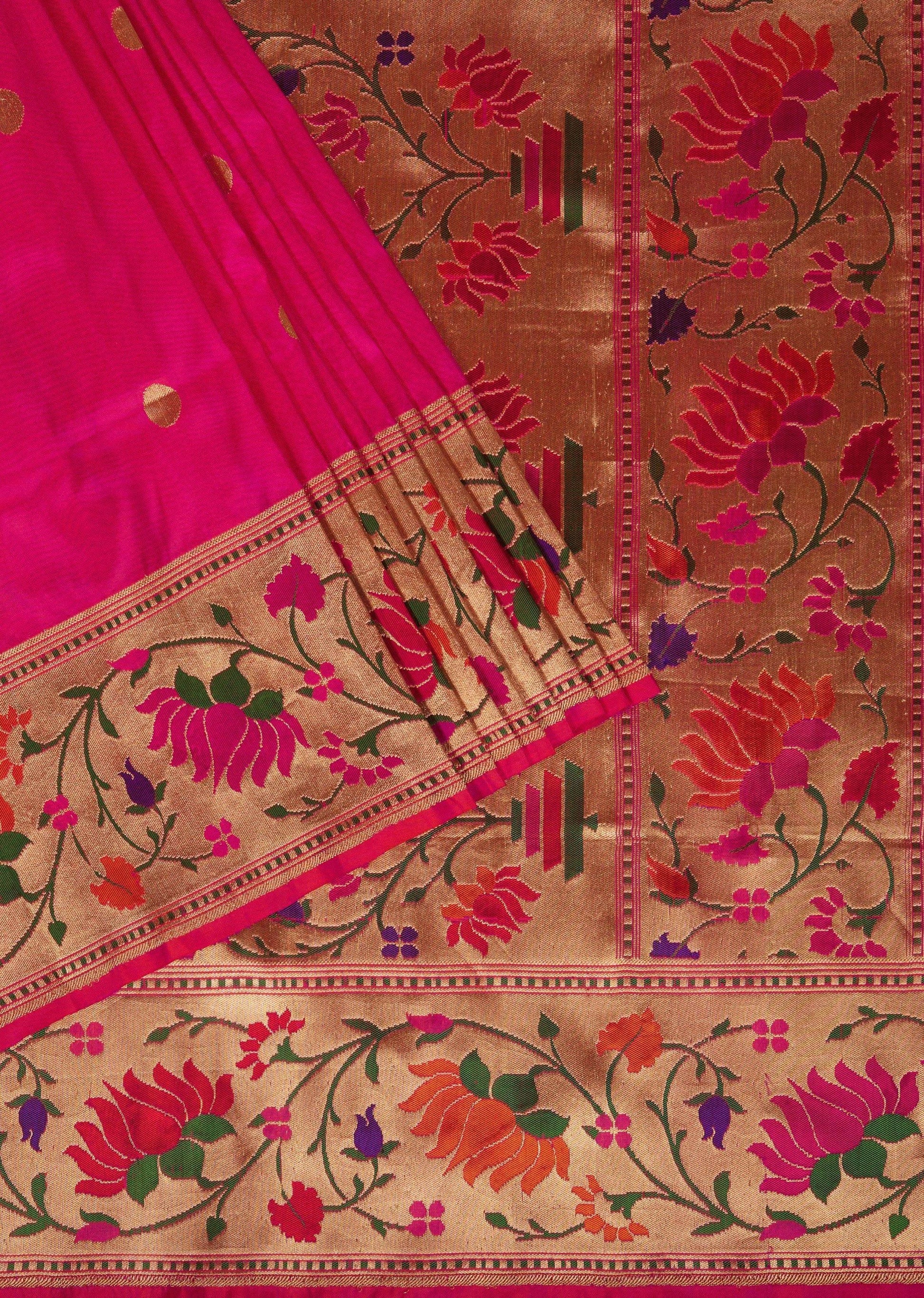 Fluorescent Pink Banarasi Saree In Katan Silk With Paithani Pallu And Unstitched Blouse
