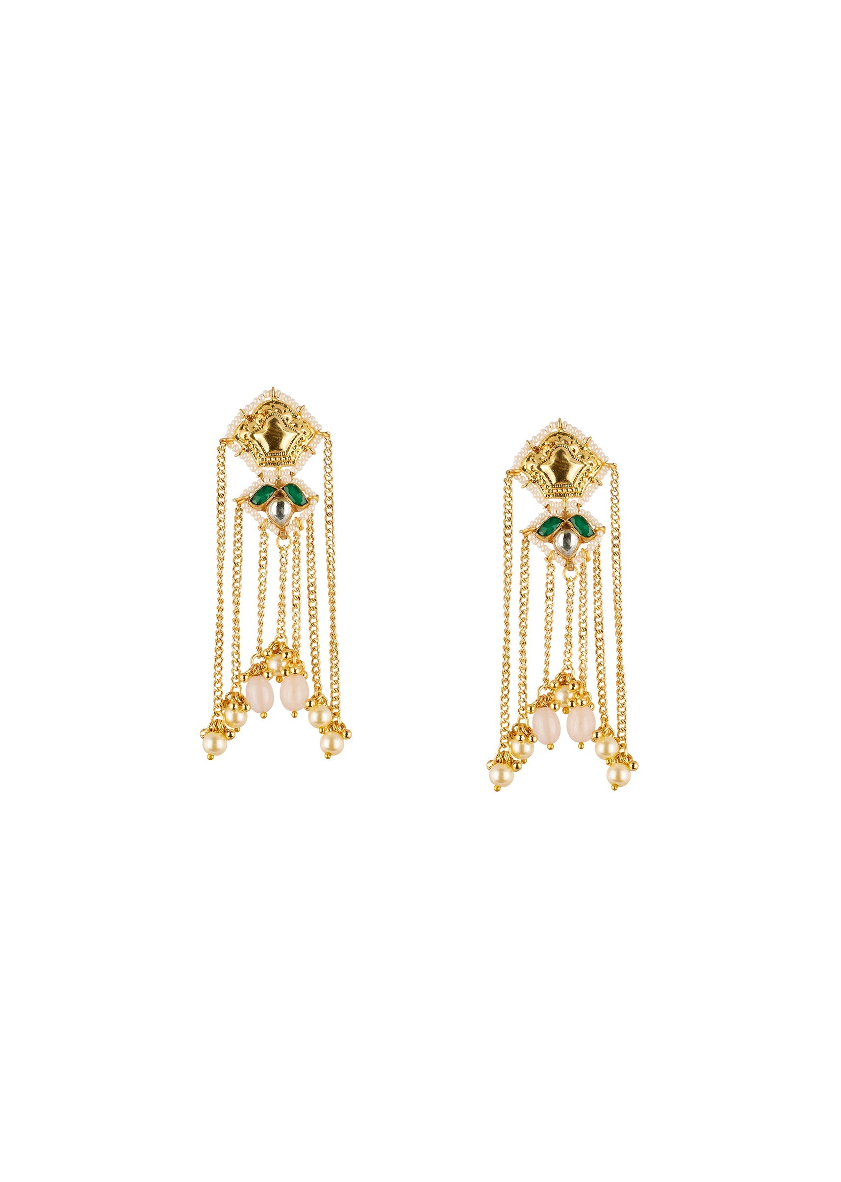 Gold and Green Anti Tarnish Kundan Earrings with CZ Diamond