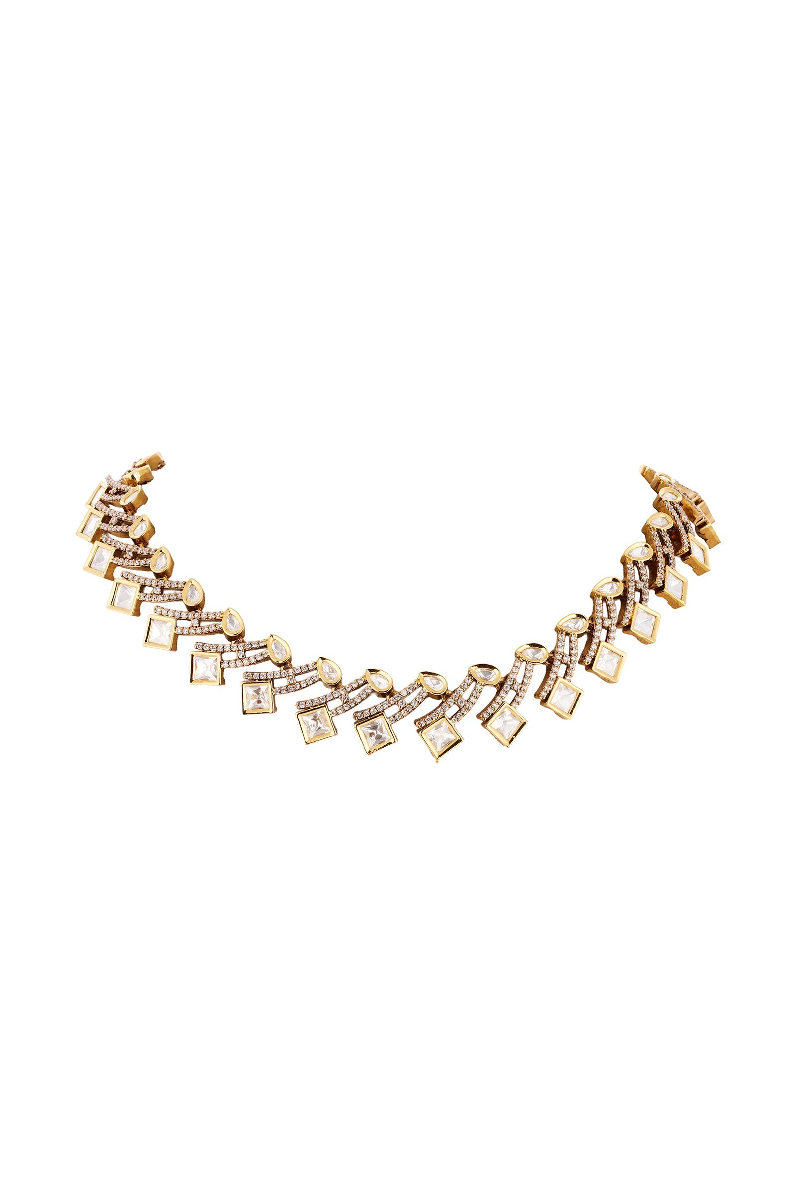 Gold and White Polki Necklace Set in Traditional Kundan Jadau