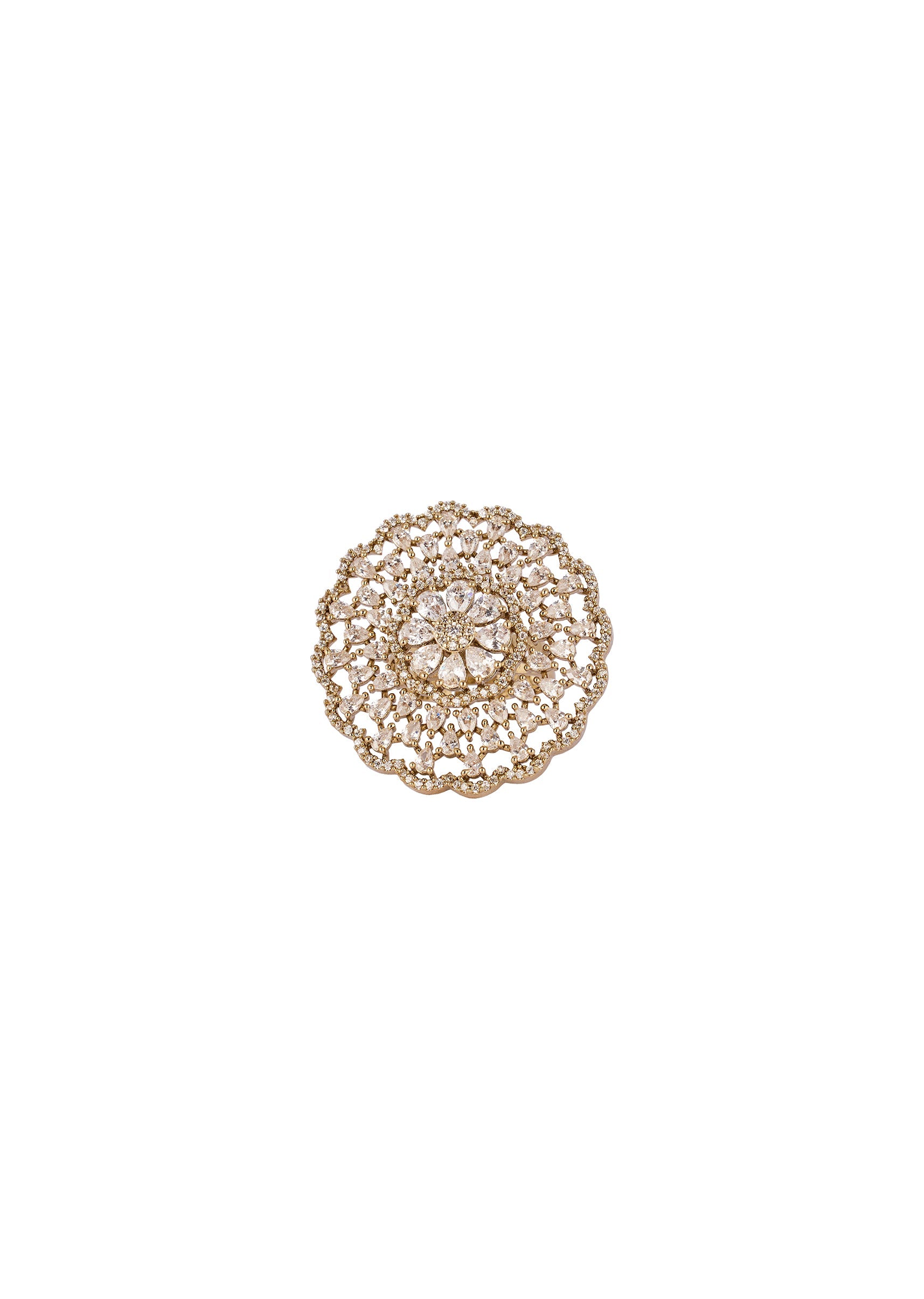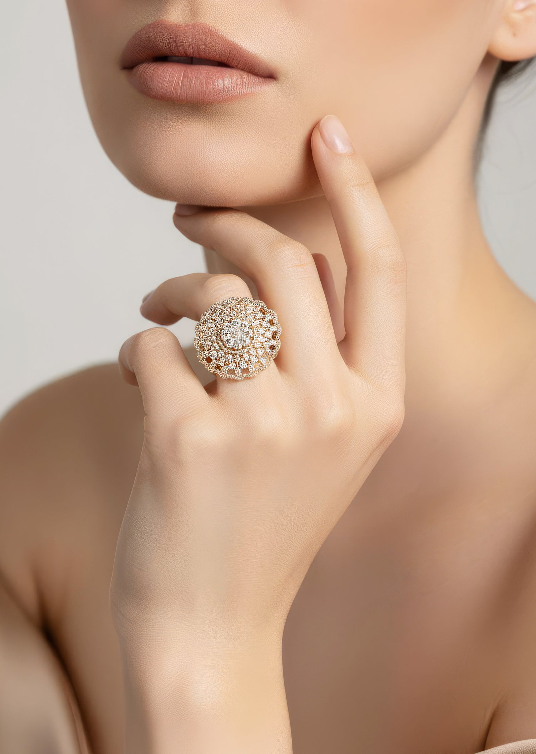 Gold Anti Tarnish Finish CZ Diamond Rhodium Plated Floral Ring