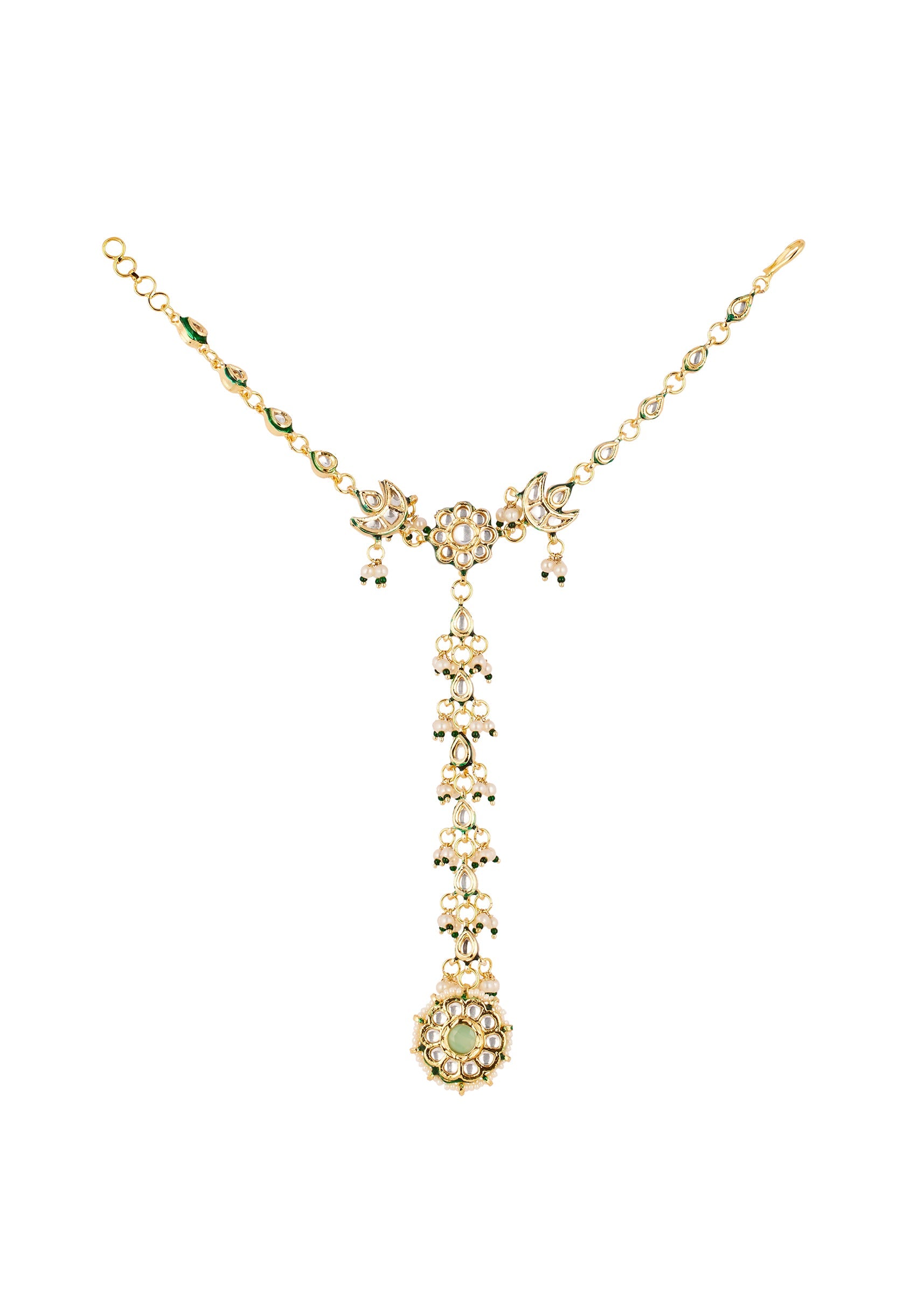 Gold Contemporary Faux Stones Studded Hathphool with CZ Diamond