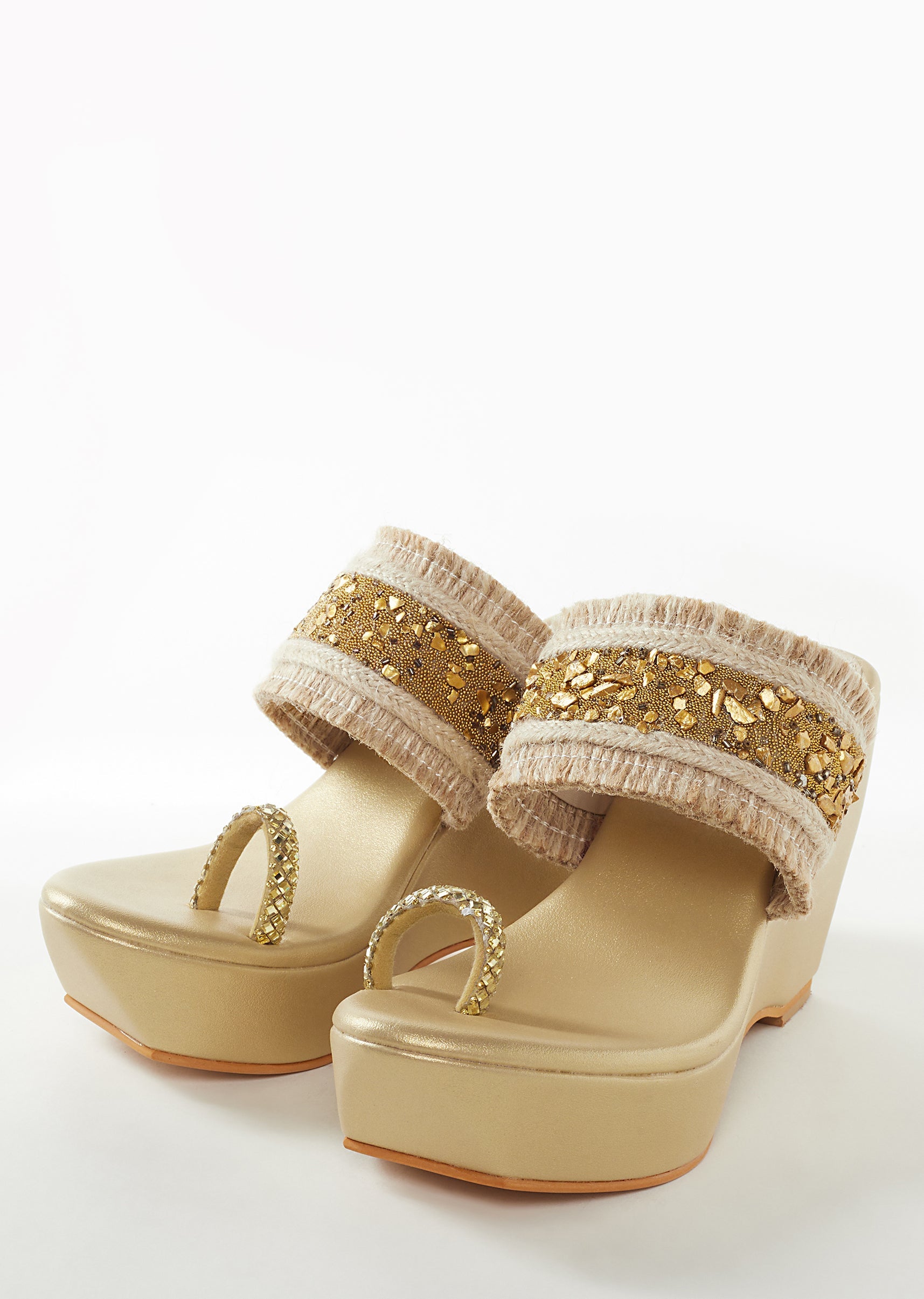 Radiant and versatile, these gold festive footwear pieces are crafted in smooth faux leather for a polished finish perfect for receptions and wedding celebrations. The embellished detailing adds a subtle yet elegant sparkle, while the tabletop face silhouette ensures easy slip on comfort. Ideal for a wedding guest, these shoes blend style and ease, making them a seamless match for both ethnic and contemporary festive outfits. Awarded as the Most Trusted Brand, we're delivering styles you love, just as promised.