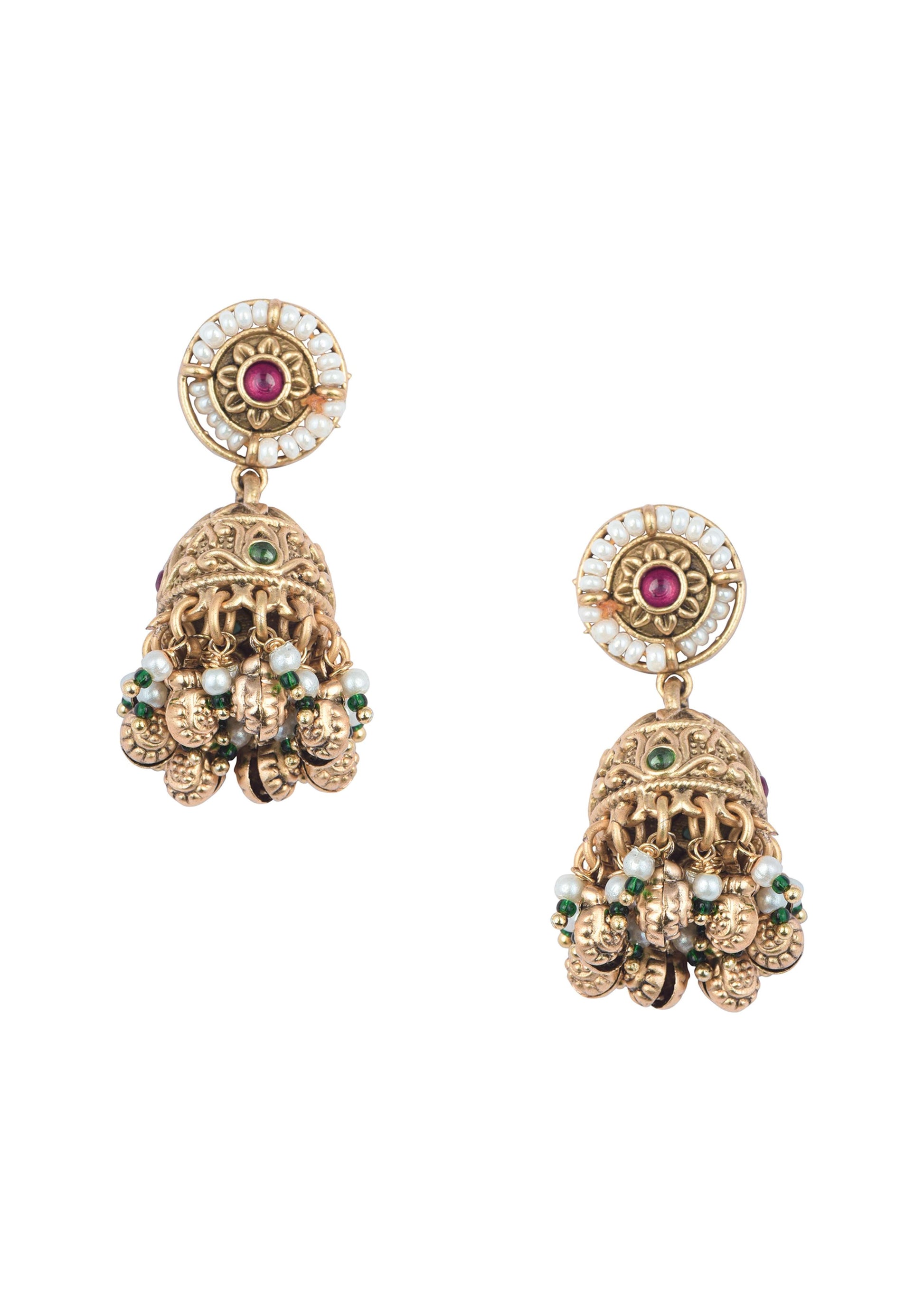- The multi pearl string strands paired with jhumkas add to its elegant and timeless look.