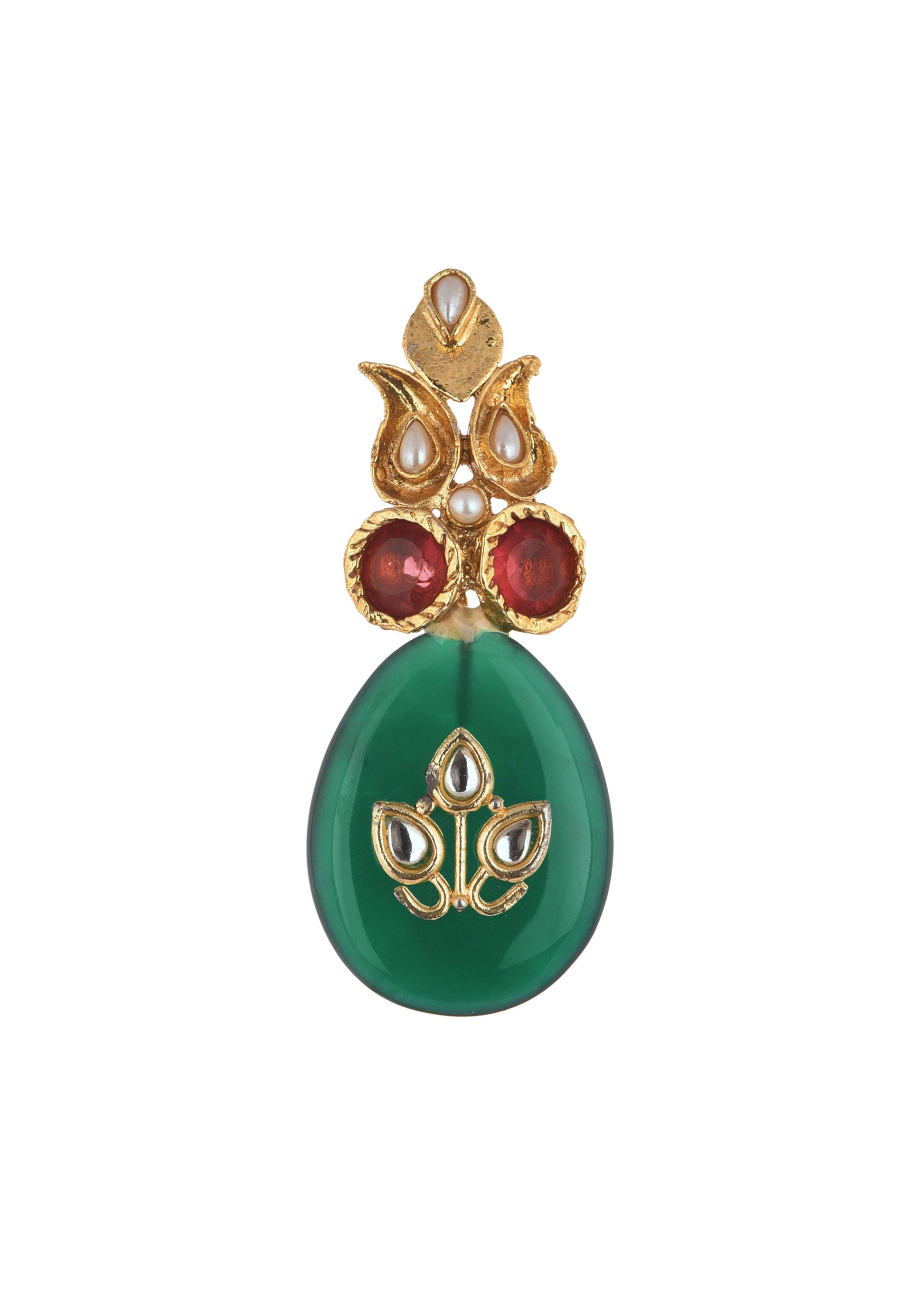 - These opulent danglers are embellished with intricate green and red kundan work showcasing the beauty of traditional Indian artistry.