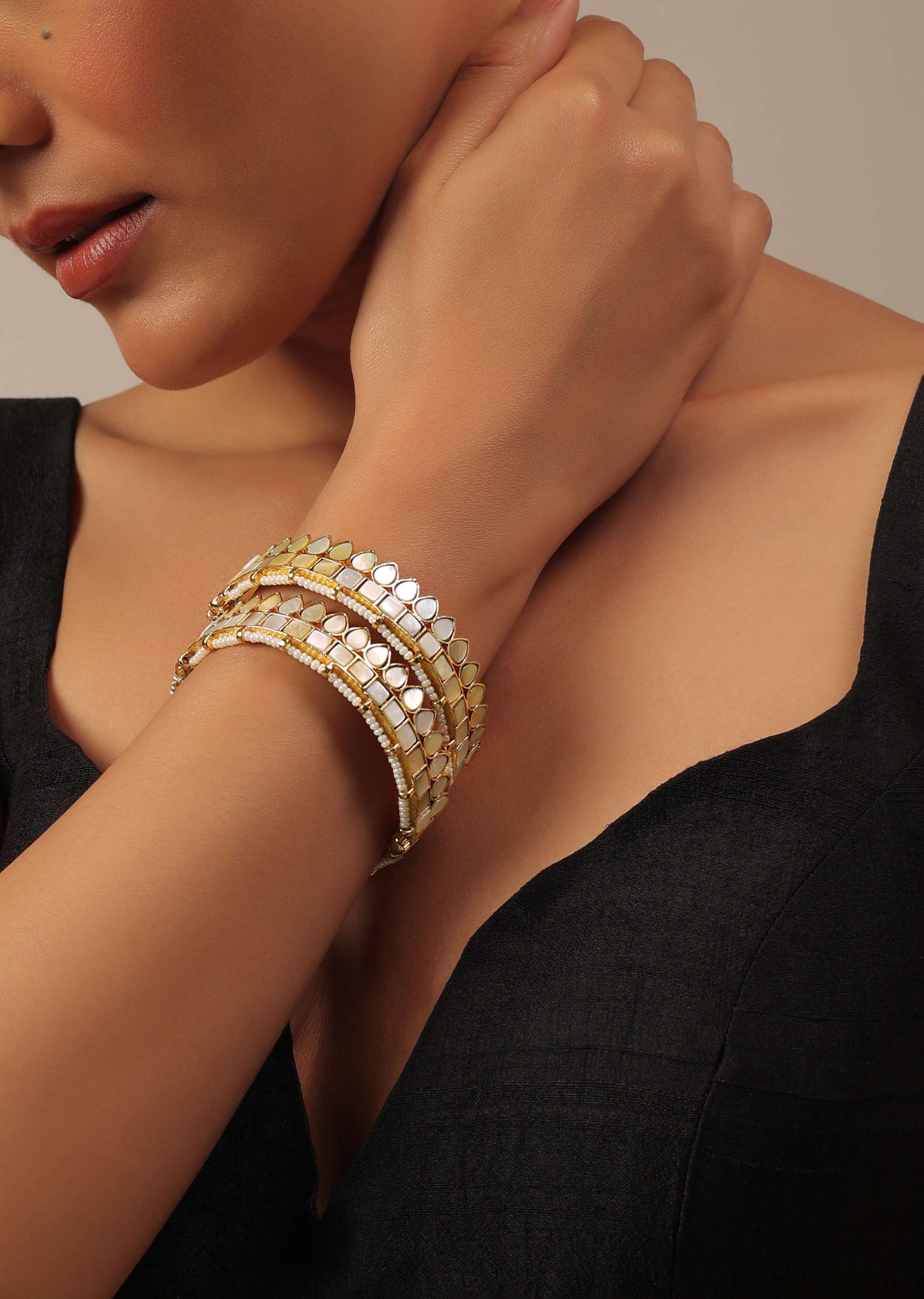 Gold Finish Jadau Kundan Kadas With Synthetic Stones