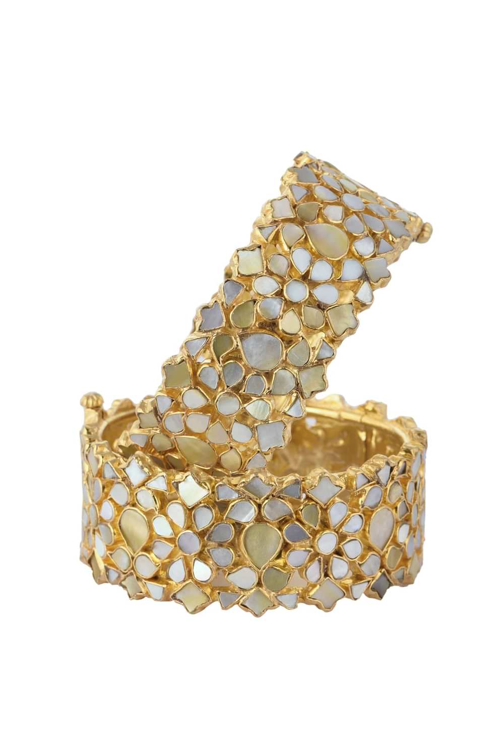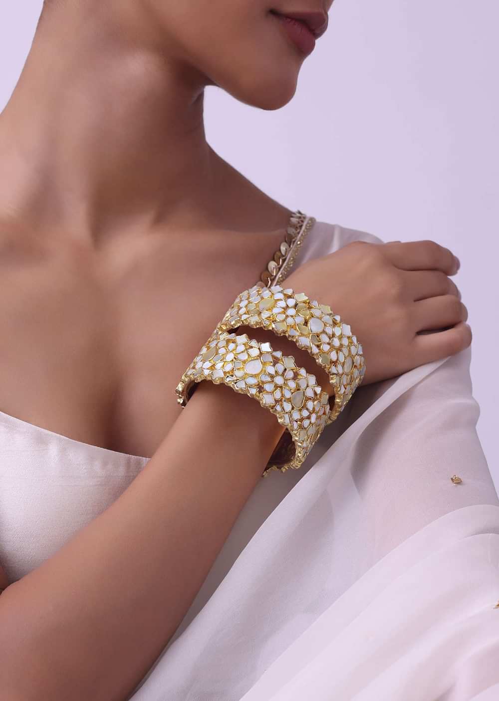 - These stunning bangles feature intricate kundan work and a luxurious gold finish creating a regal and timeless design.