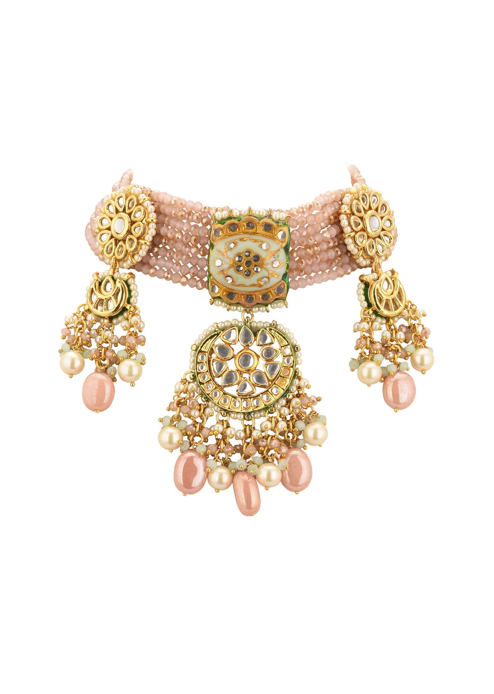 - Introducing our gold-finish kundan choker necklace and earring set.