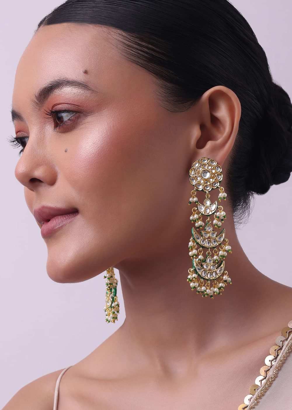 - Step into a world of regal charm with our gold-toned kundan danglers in mix metal.