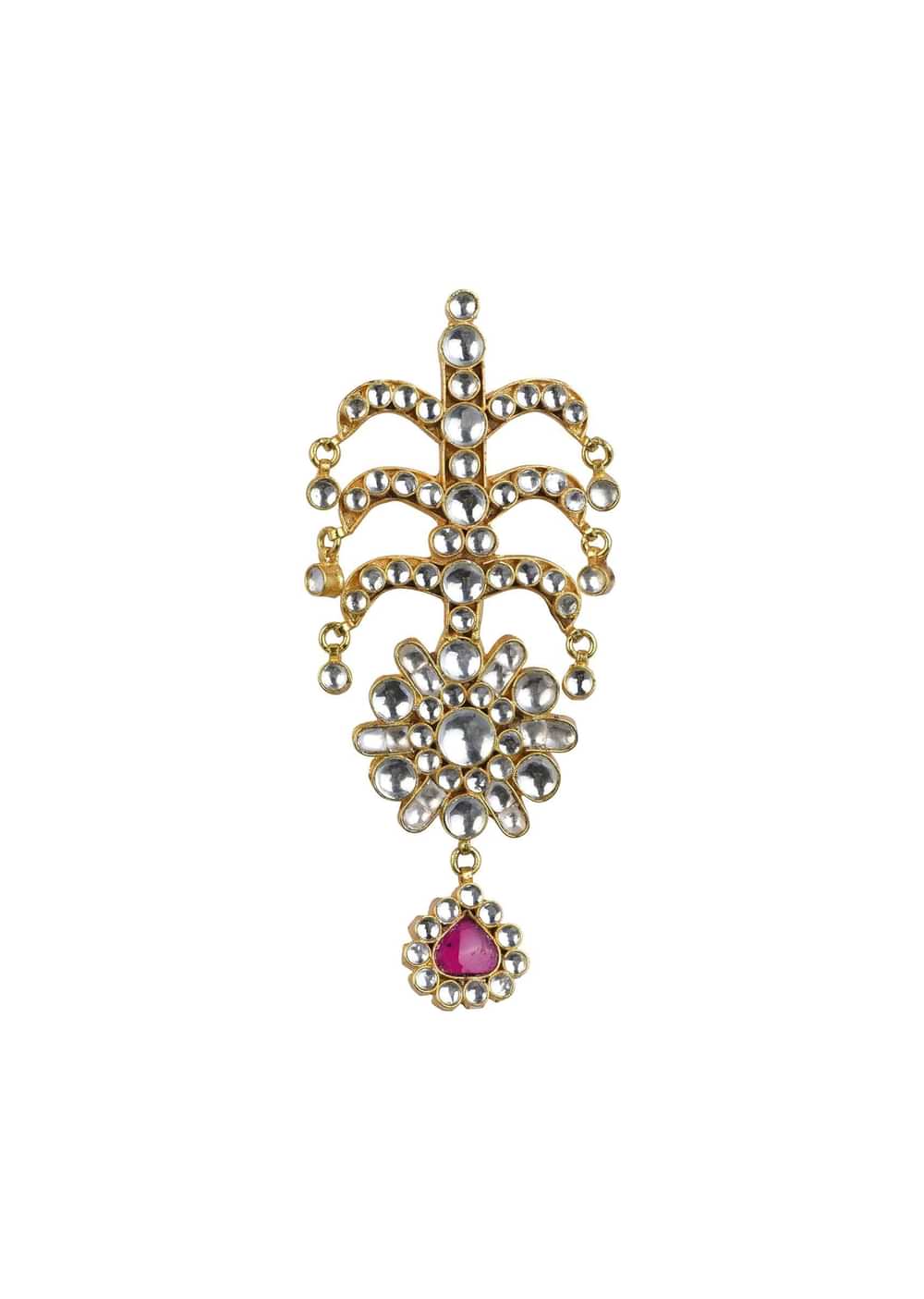 - Add a touch of regal elegance to your hairstyle with this exquisite gold finish Kundan hairpin.