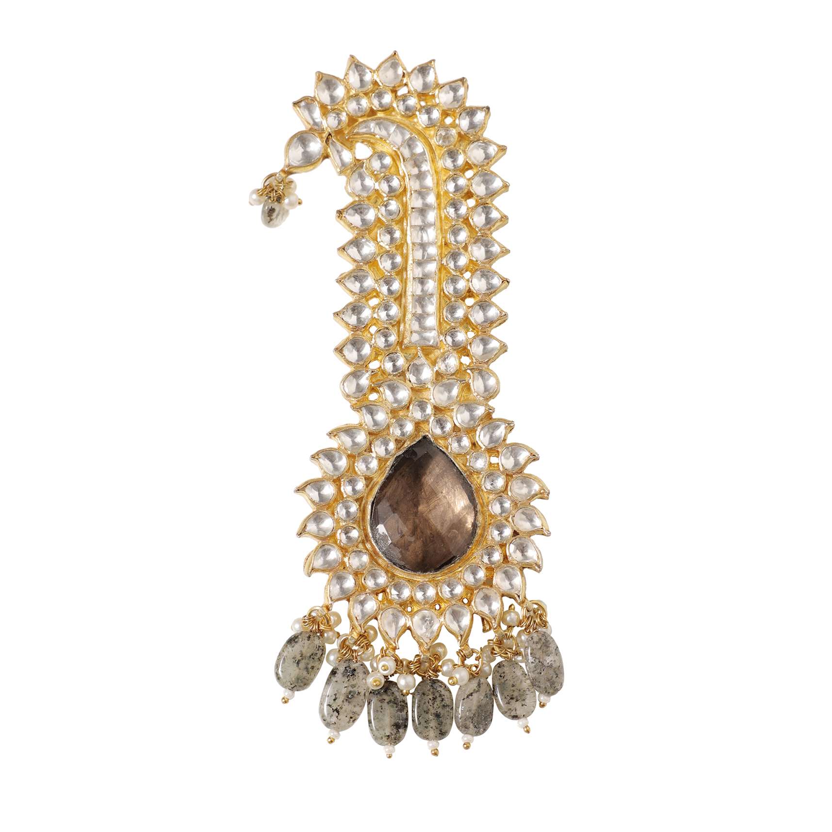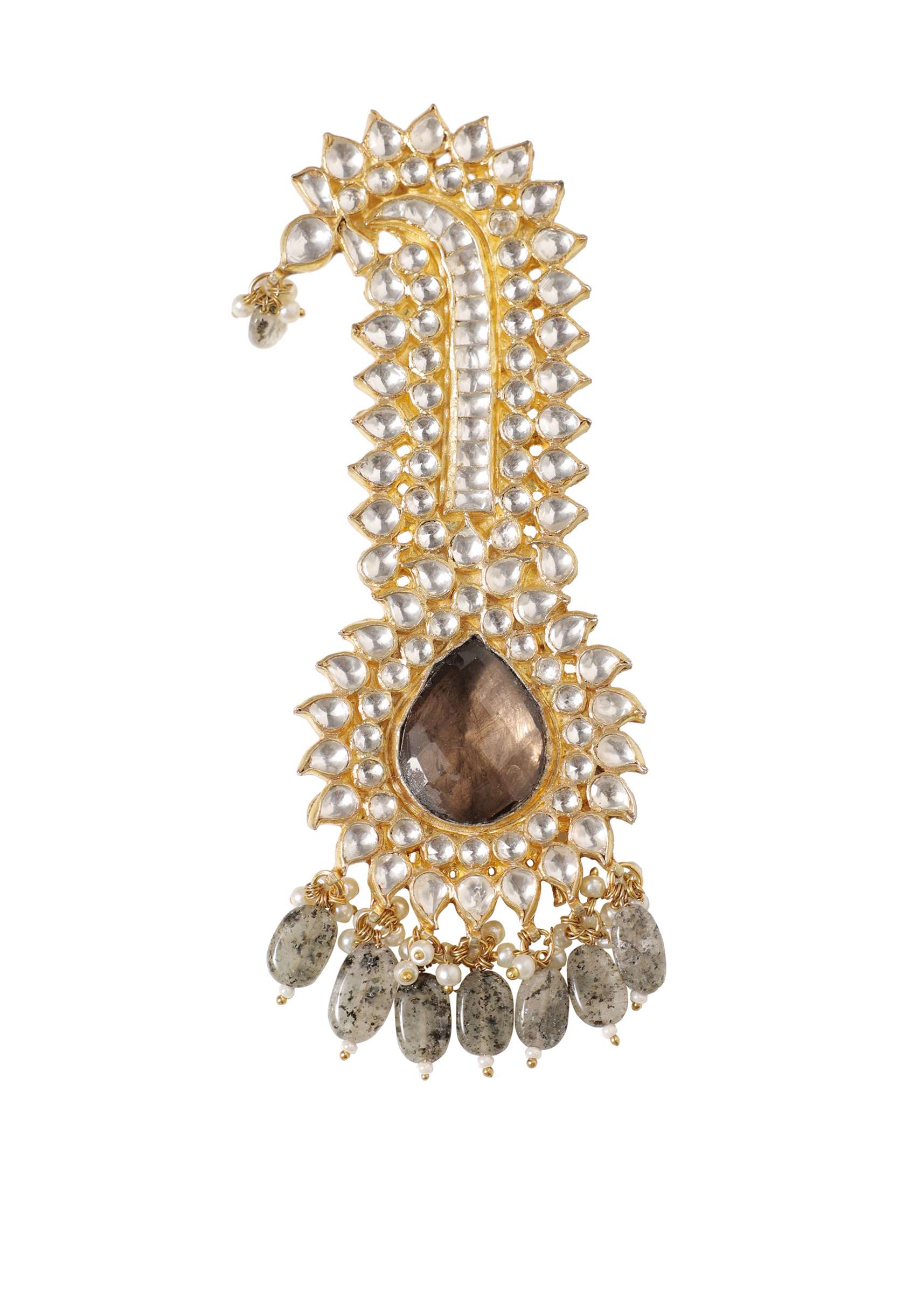 - Elevate your regal look with the captivating charm of our gold finish kundan kalgi in mix metal with a light brown stone.
