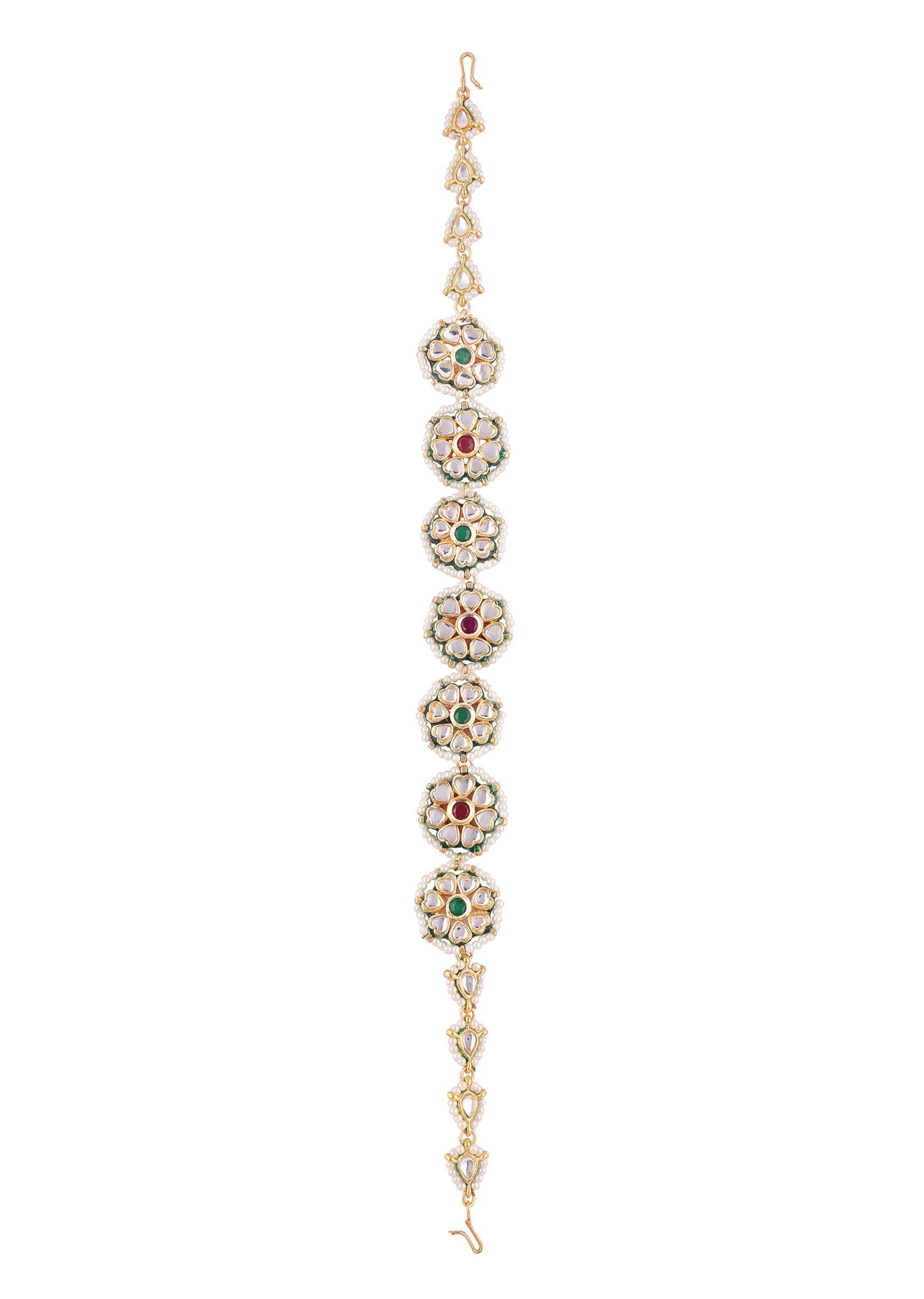 - An enigmatic mathapatti with gold finish kundan and pearls.