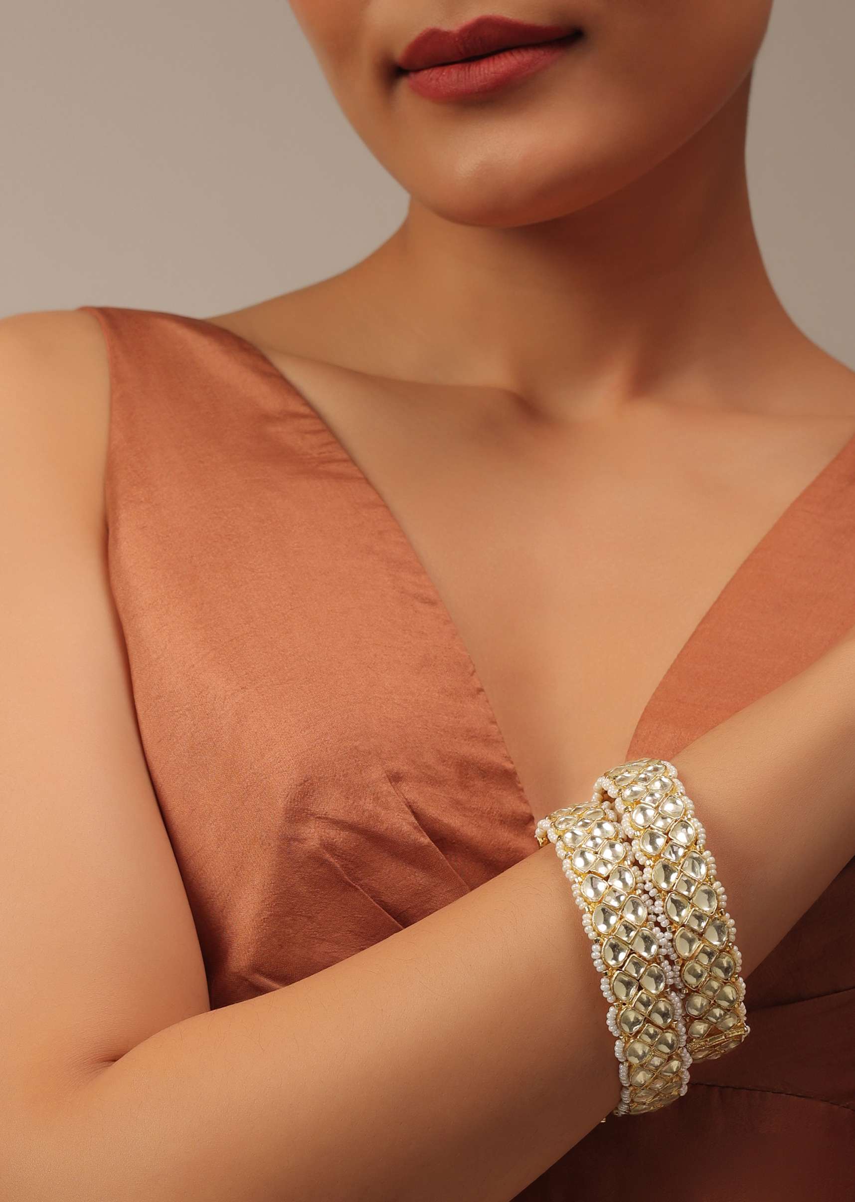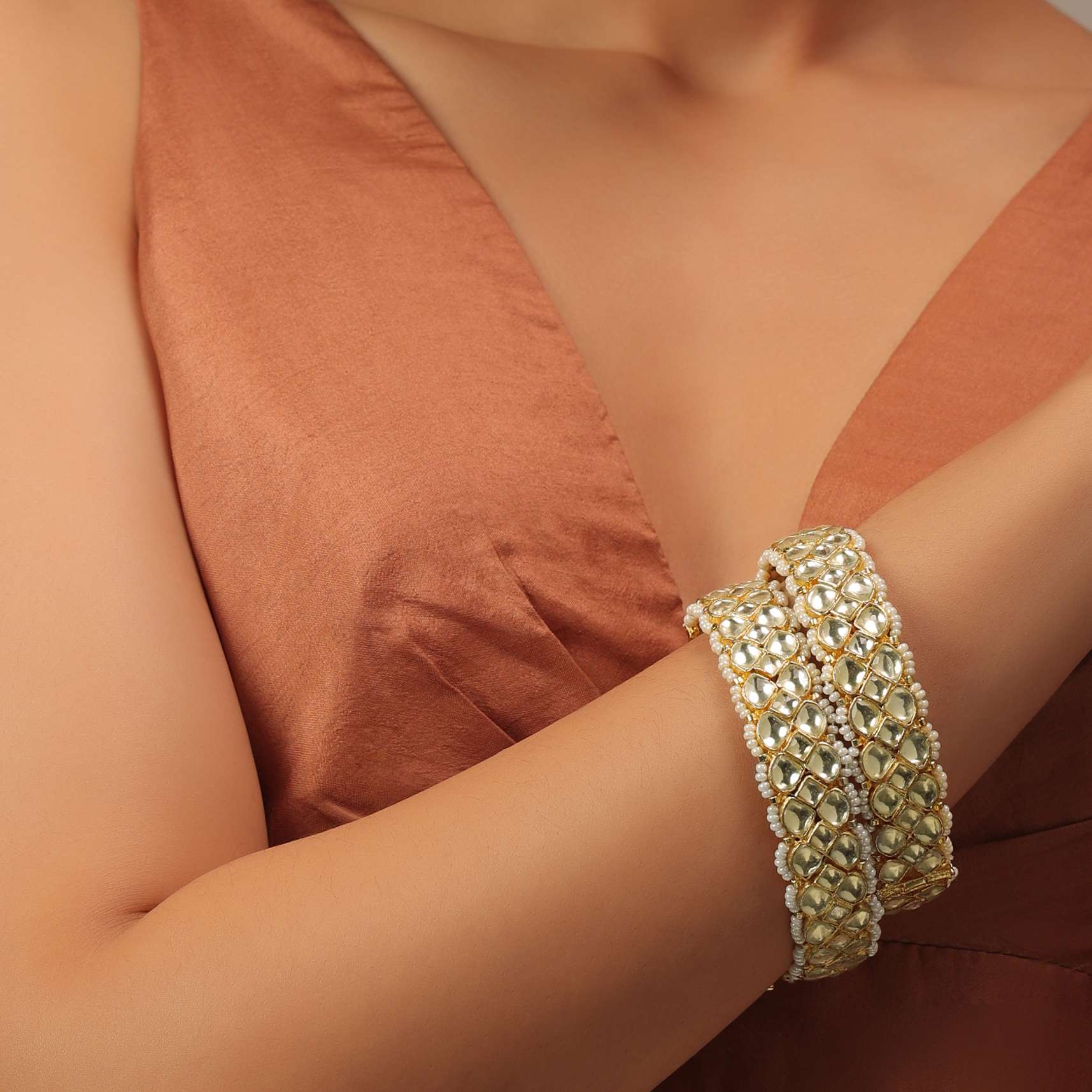 - The unique design and the addition of pearls to these bangles are sure to make a statement and add a touch of elegance to any ensemble.