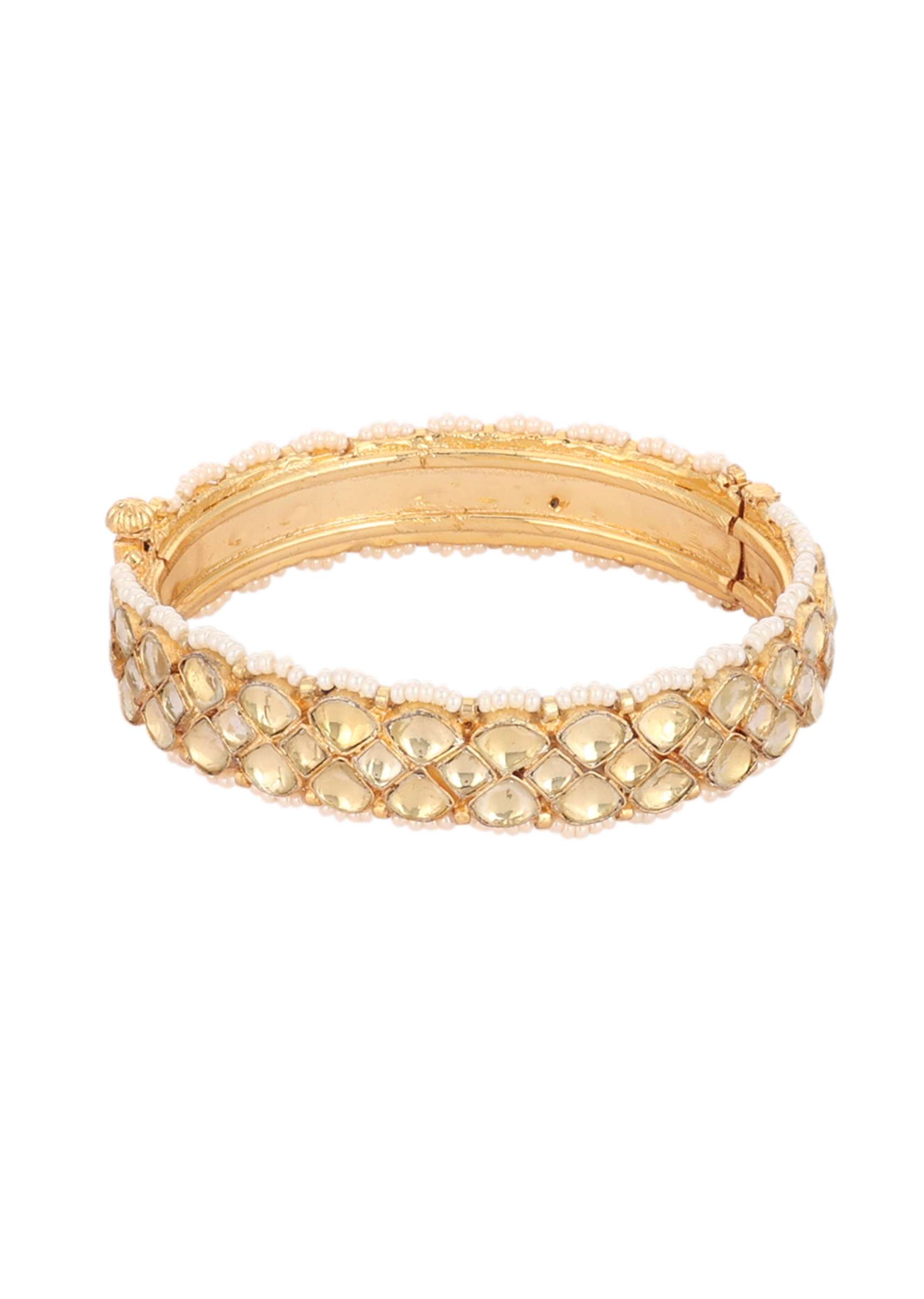 Gold Finish Kundan Polki Bangles With Pearls