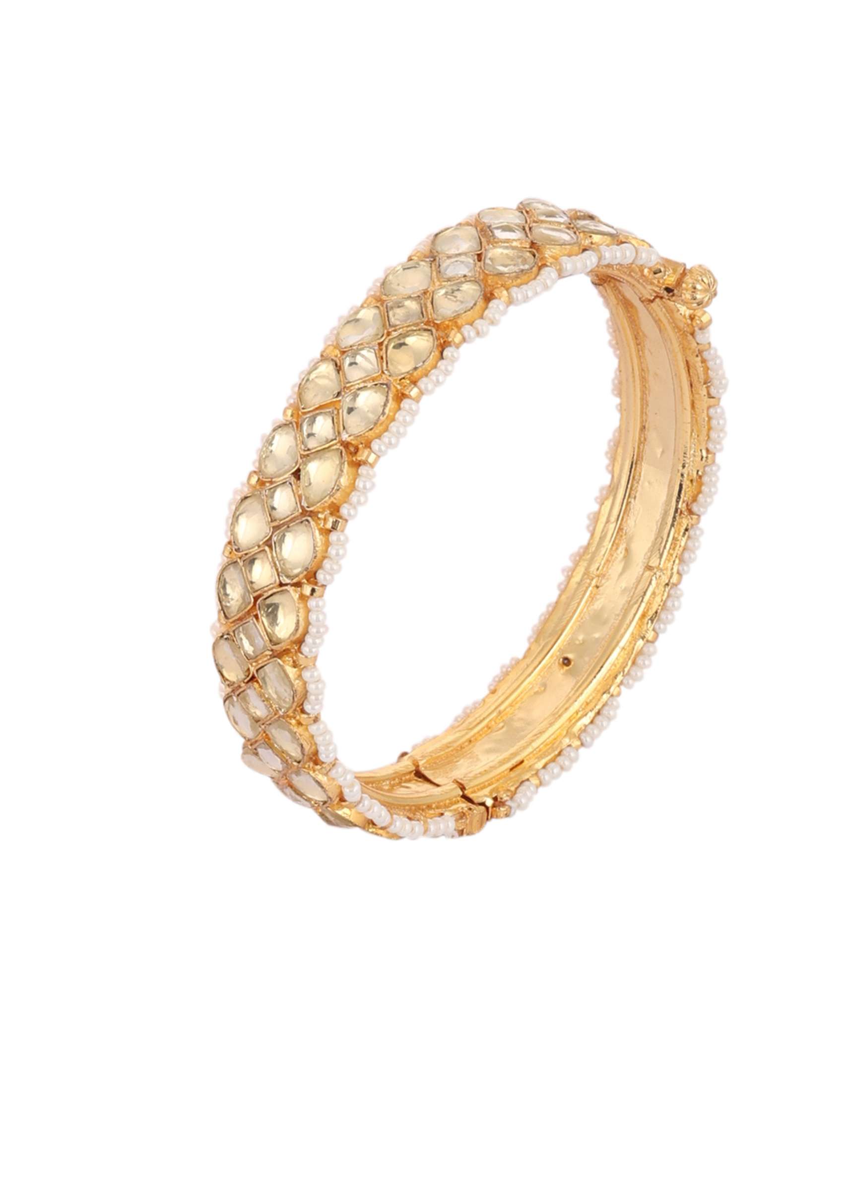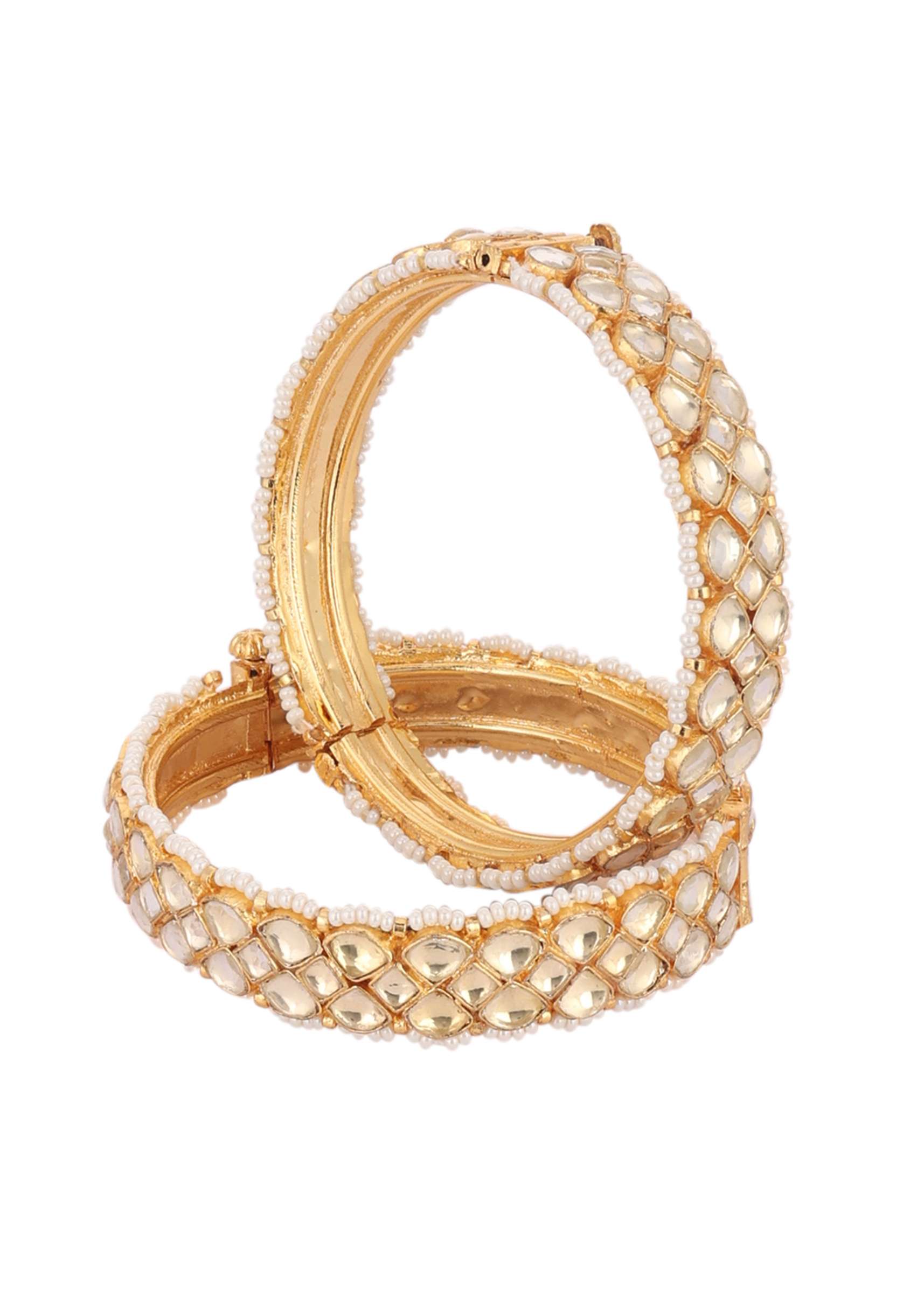 - This exquisite pair of gold finish kundan polki bangles are crafted with precision and feature a mesmerizing pattern, making it the perfect accessory for any festive occasion.