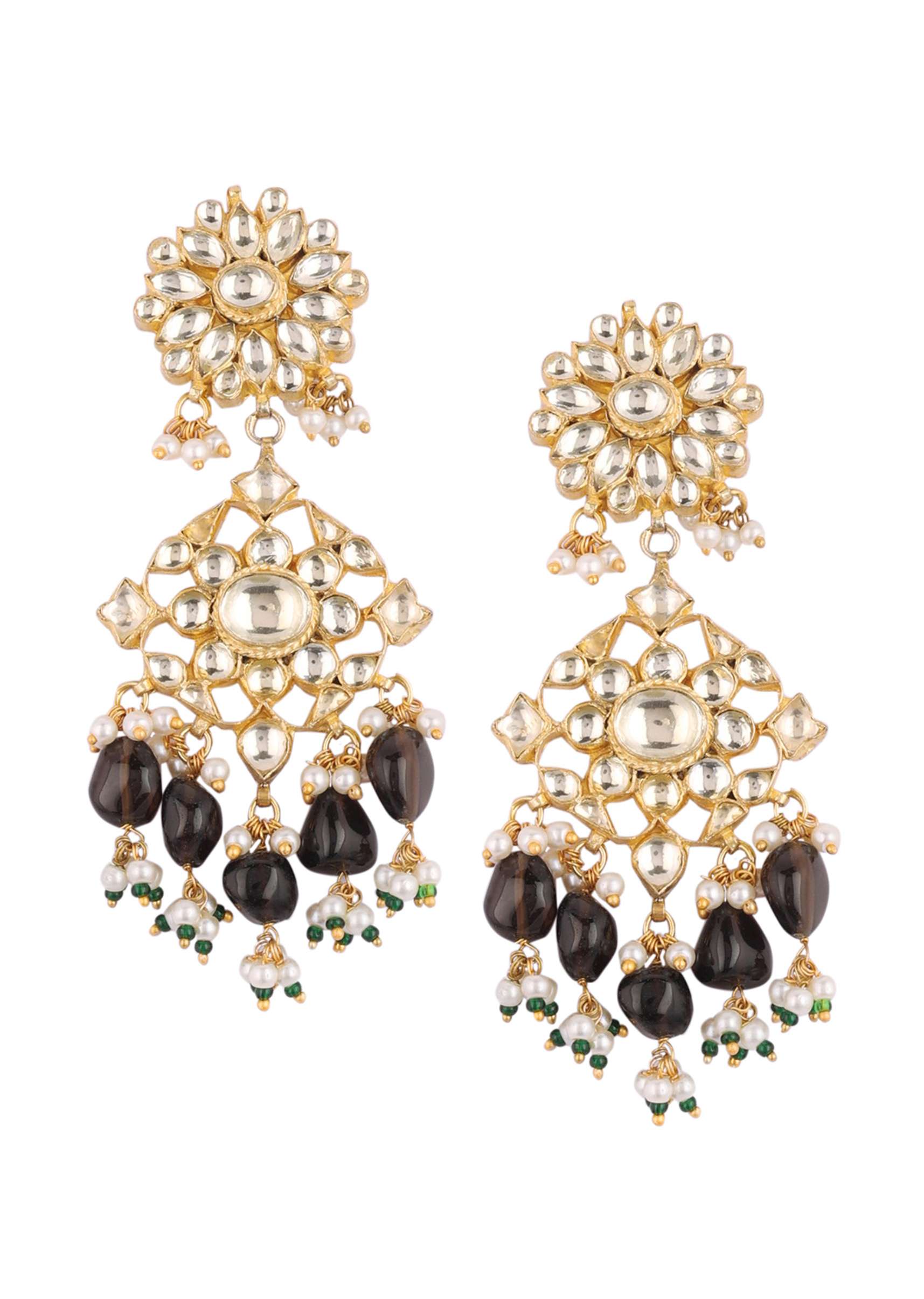 - Introducing this exquisite gold finish kundan polki necklace and earring set with stones and beads, a stunning piece of jewelry that exudes elegance and beauty.