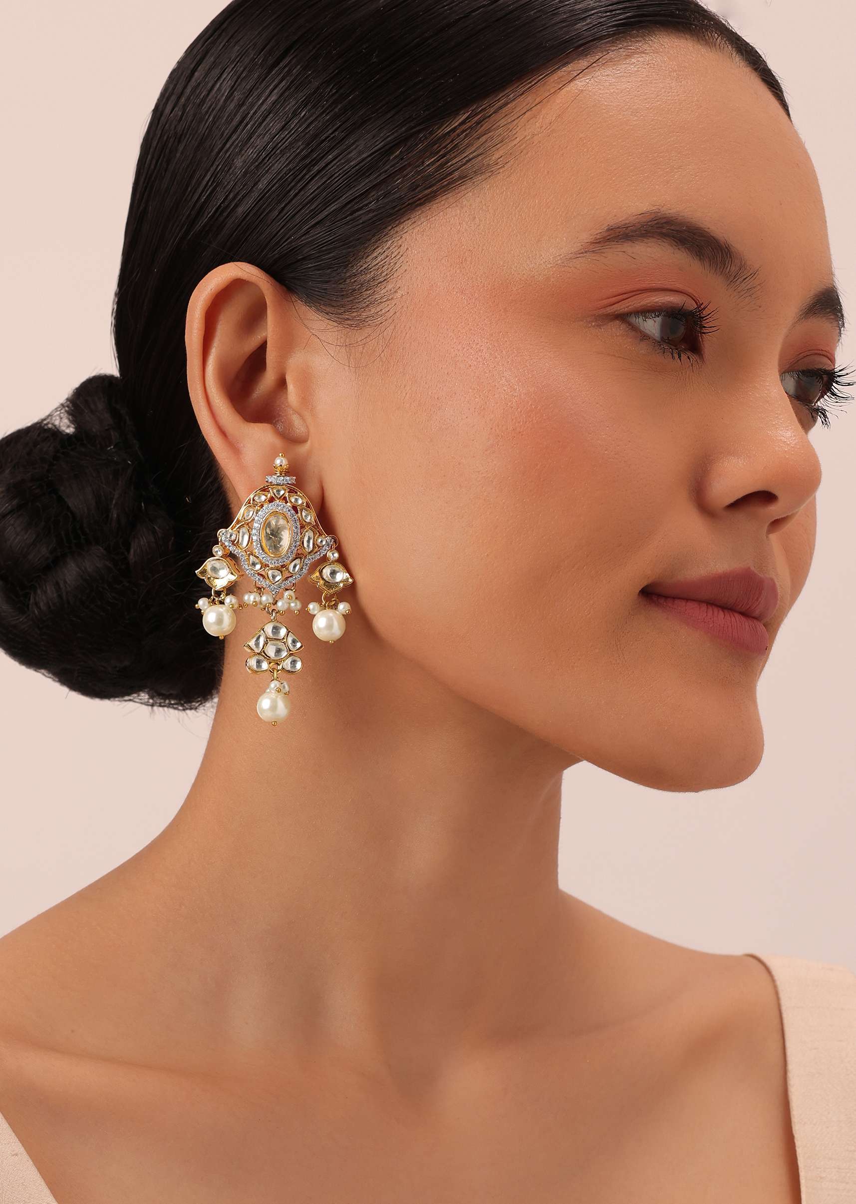 - This exquisite set combines the traditional charm of kundan polki with a contemporary twist, featuring mesmerizing pearls.