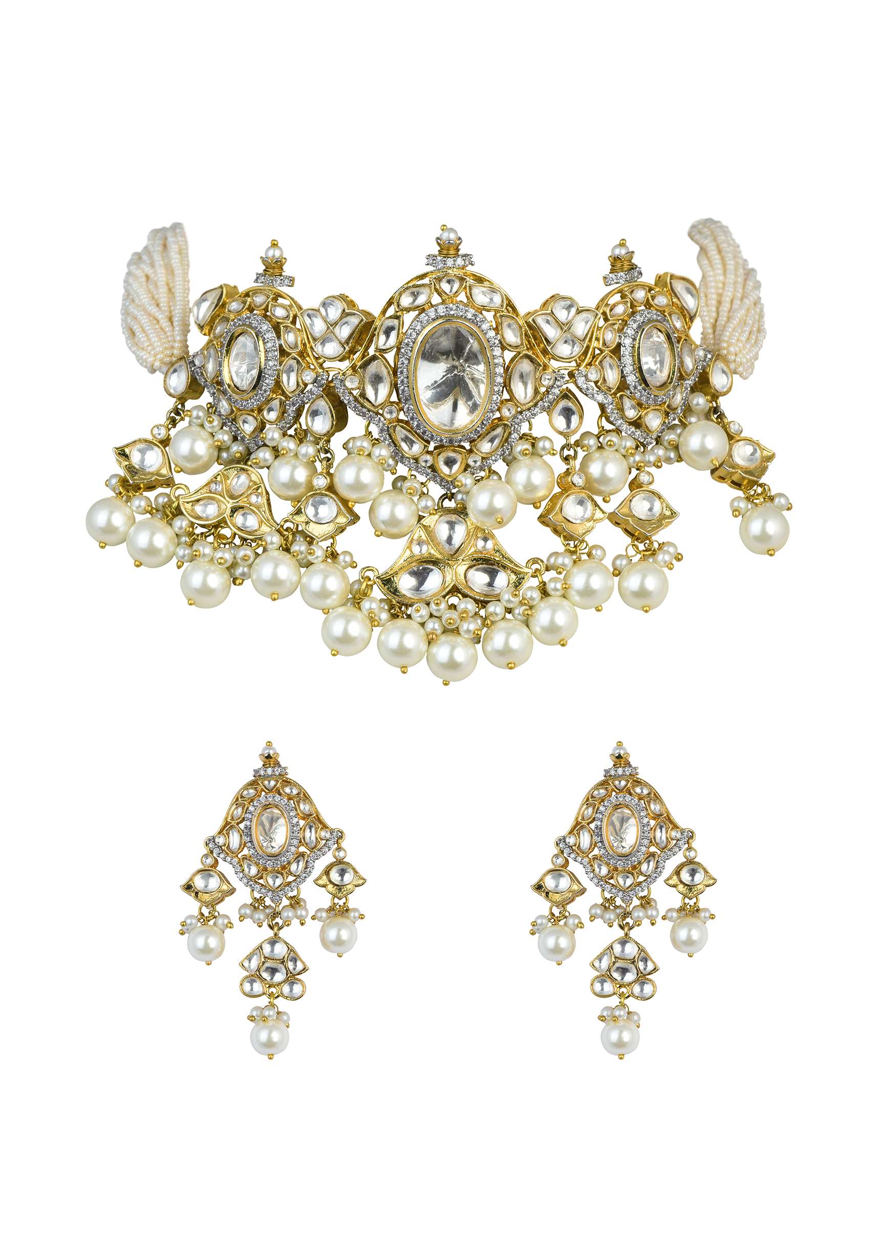 - Introducing our stunning gold finish kundan polki choker set, a true embodiment of regal beauty.