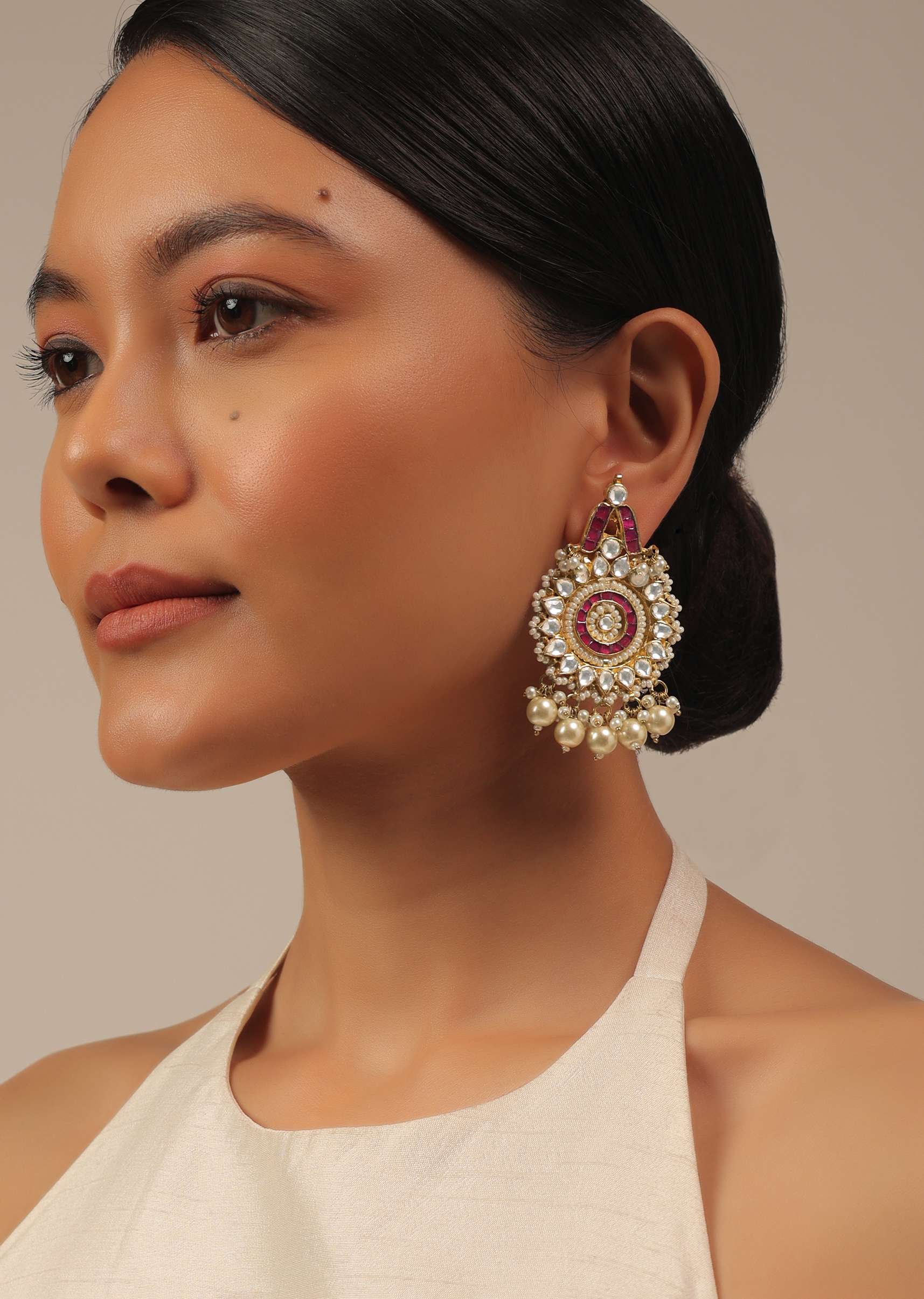 - These earrings are a combination of Kundan Polki stones, pearls, and beads that gives a regal and luxurious look, making them an apt choice for bridal wear.