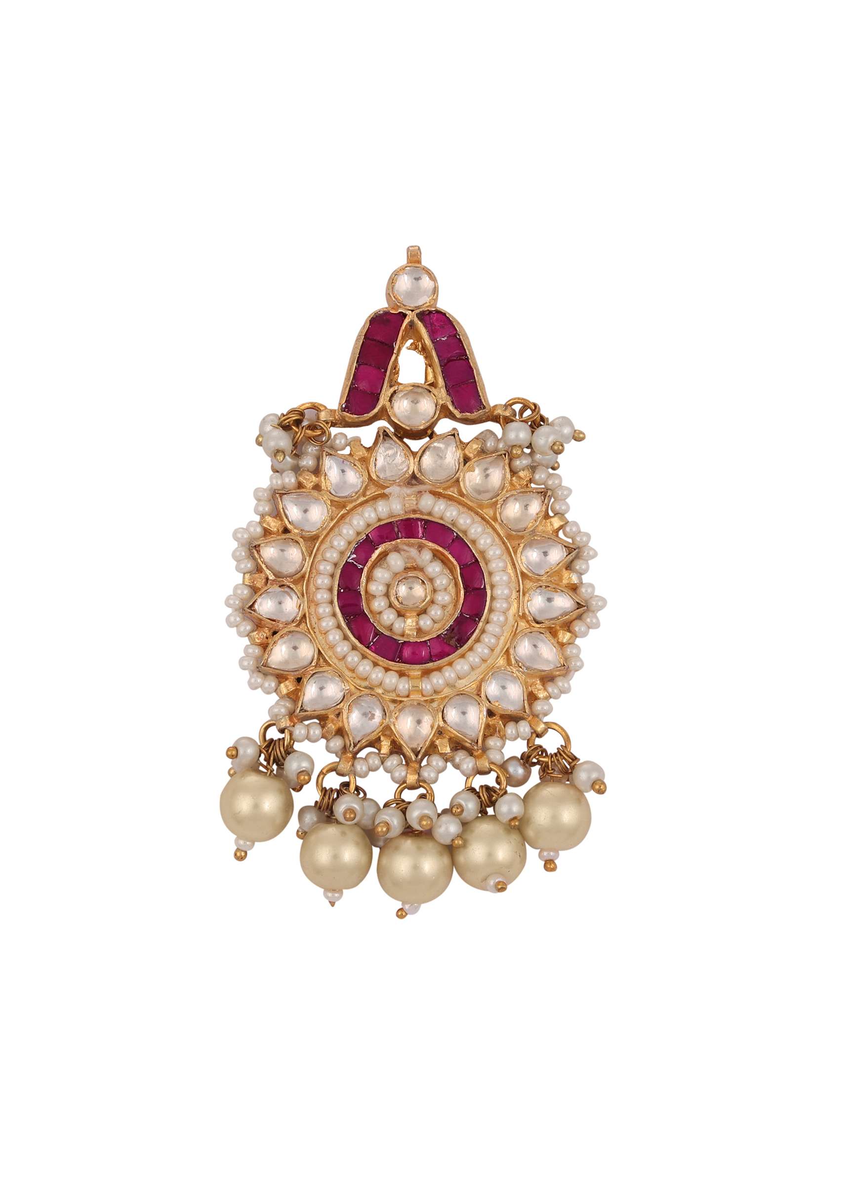 A traditional jadau kundan piece that's sure to take your entire look a notch higher. The jewelry piece is perfect when paired with some traditional and festive outfits, for an ecstatic Indian look with minimal makeup, traditional sarees, or suits to create a breathtaking ethnic look for your upcoming festivities.