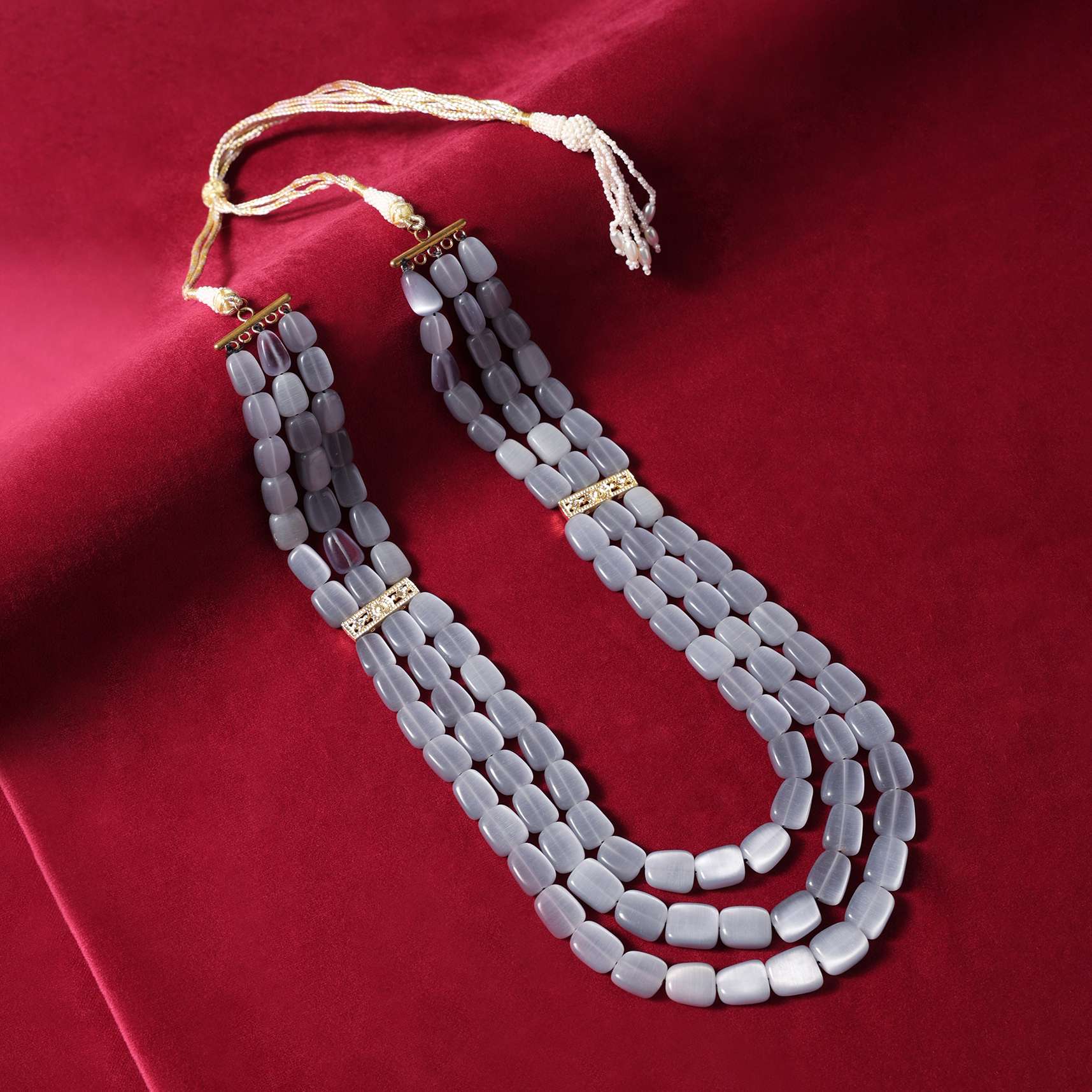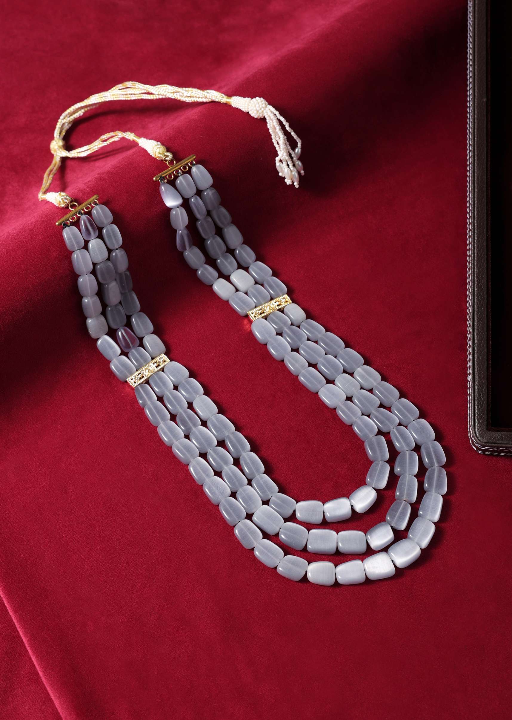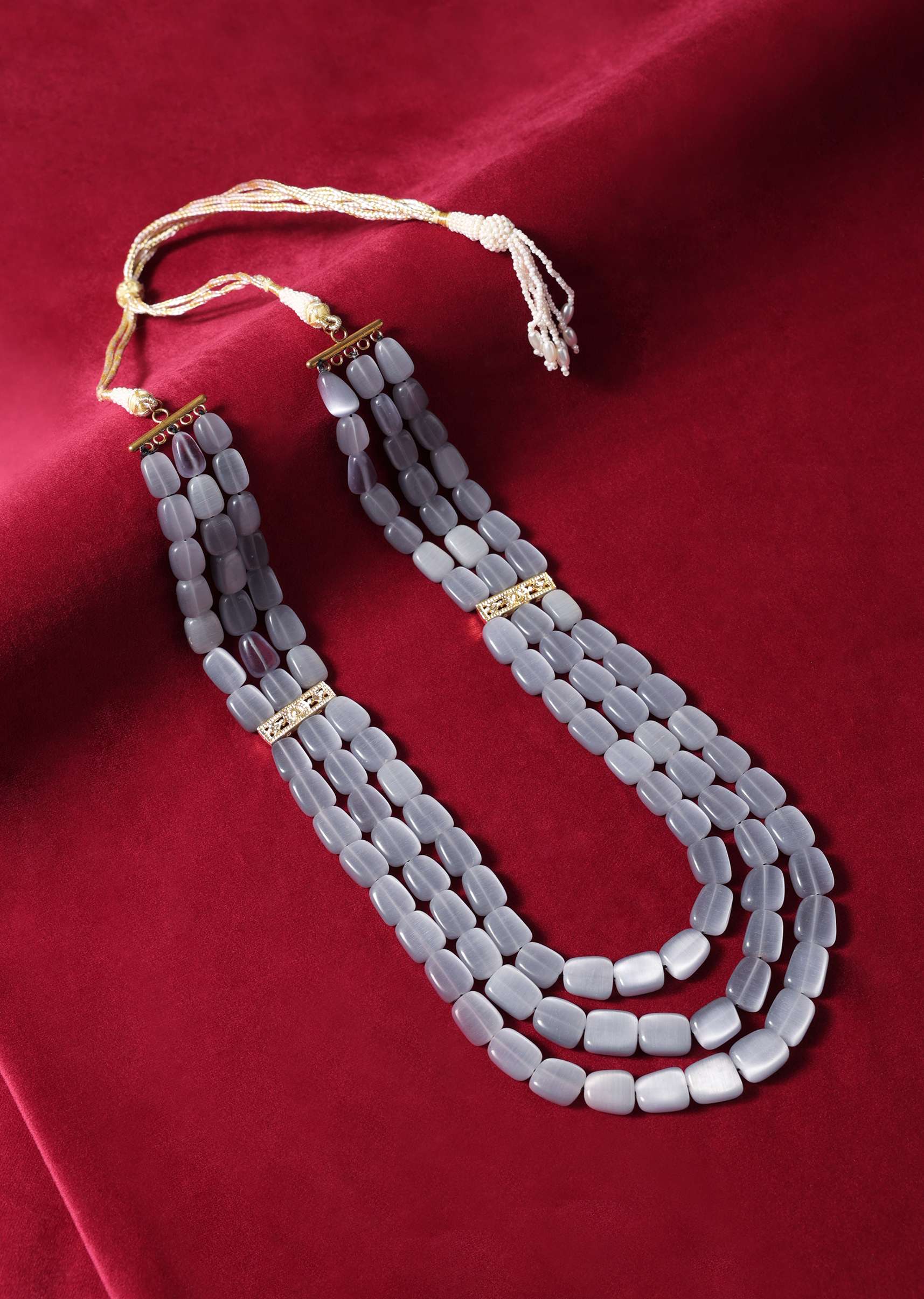 - Enhance your ensemble with the timeless beauty of our gold finish long mala in mix metal with beads.