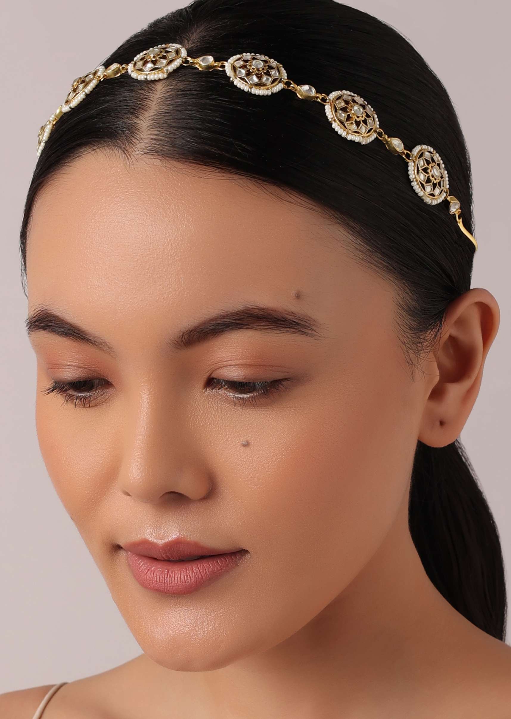 Gold Finish Mathapatti With Studded Kundan