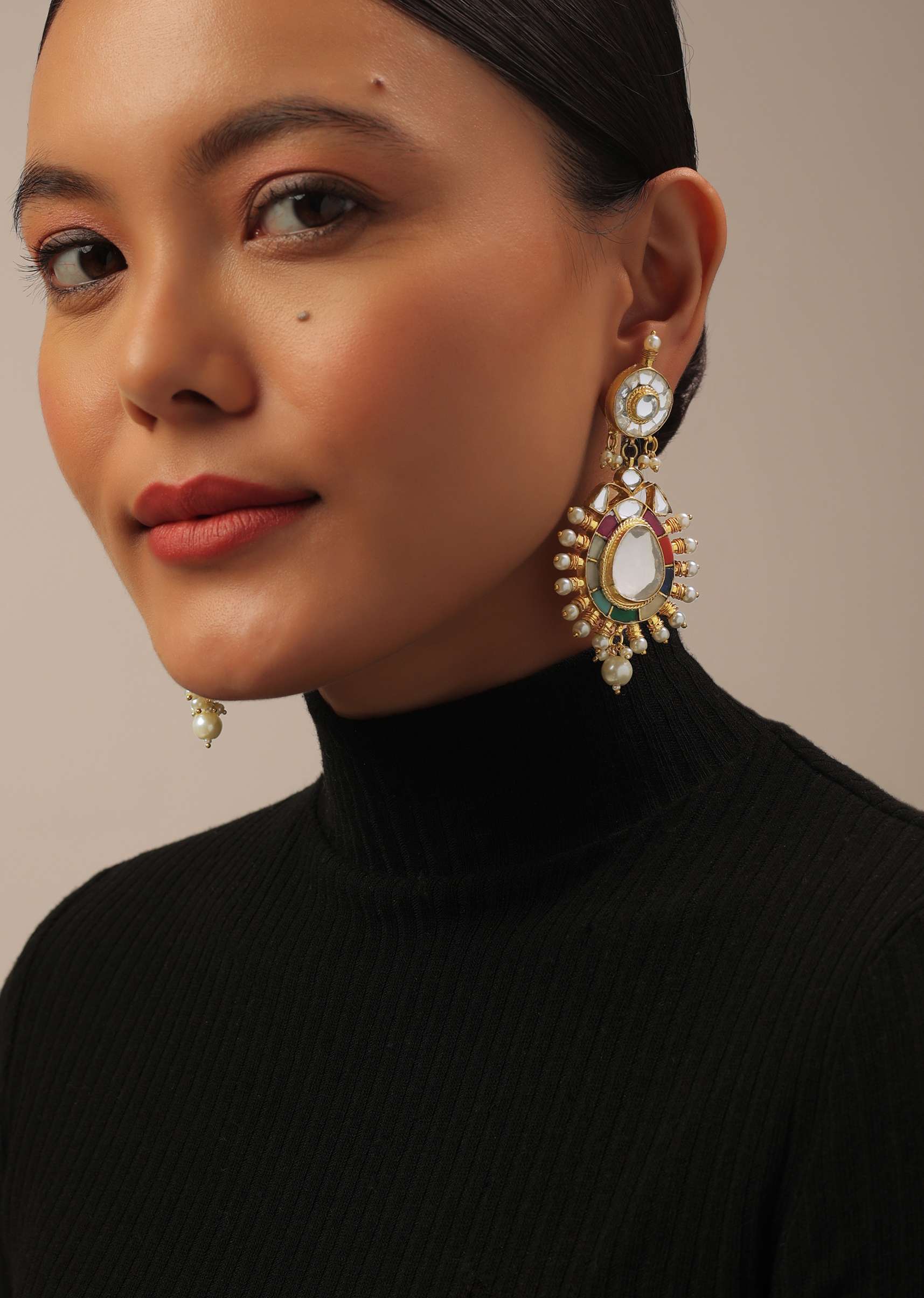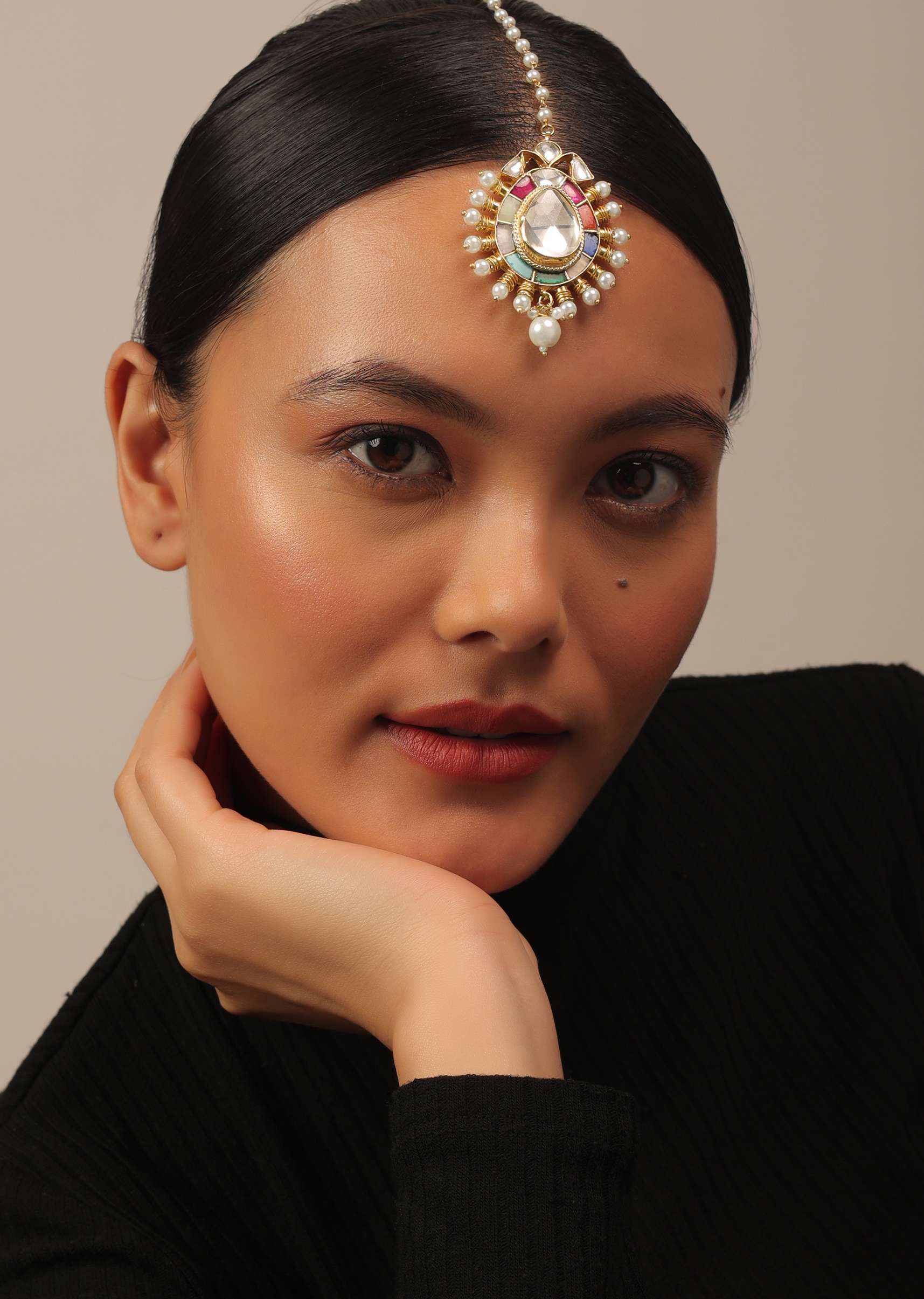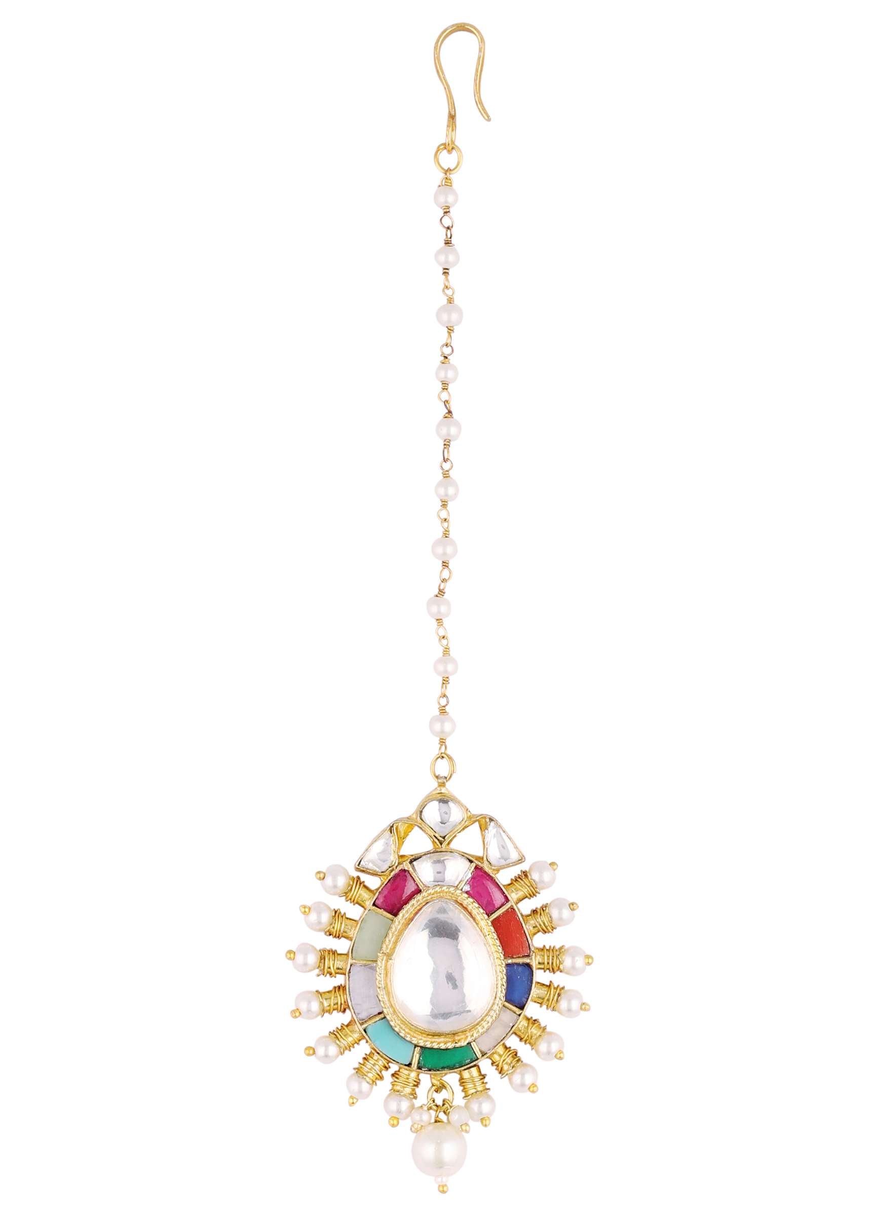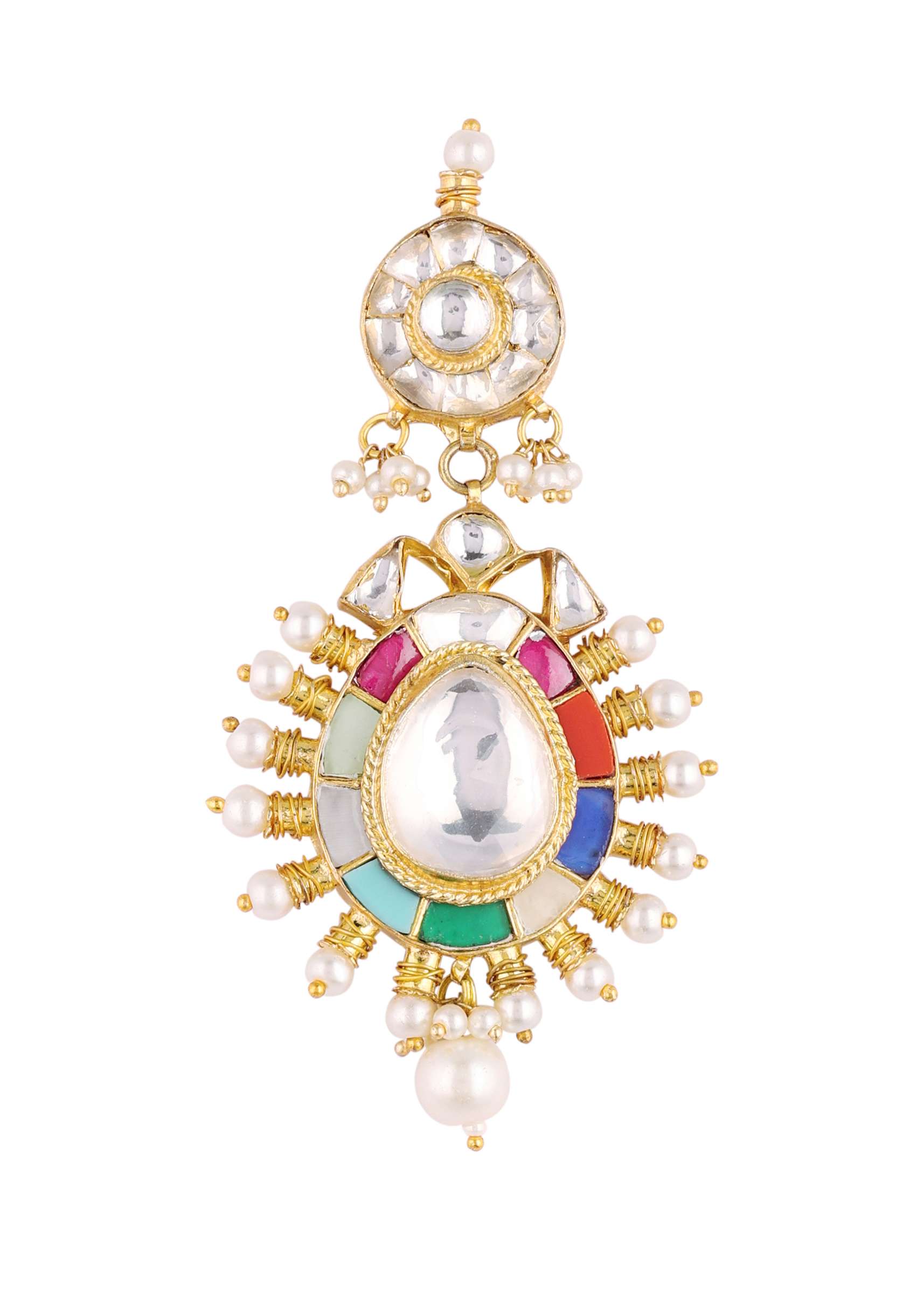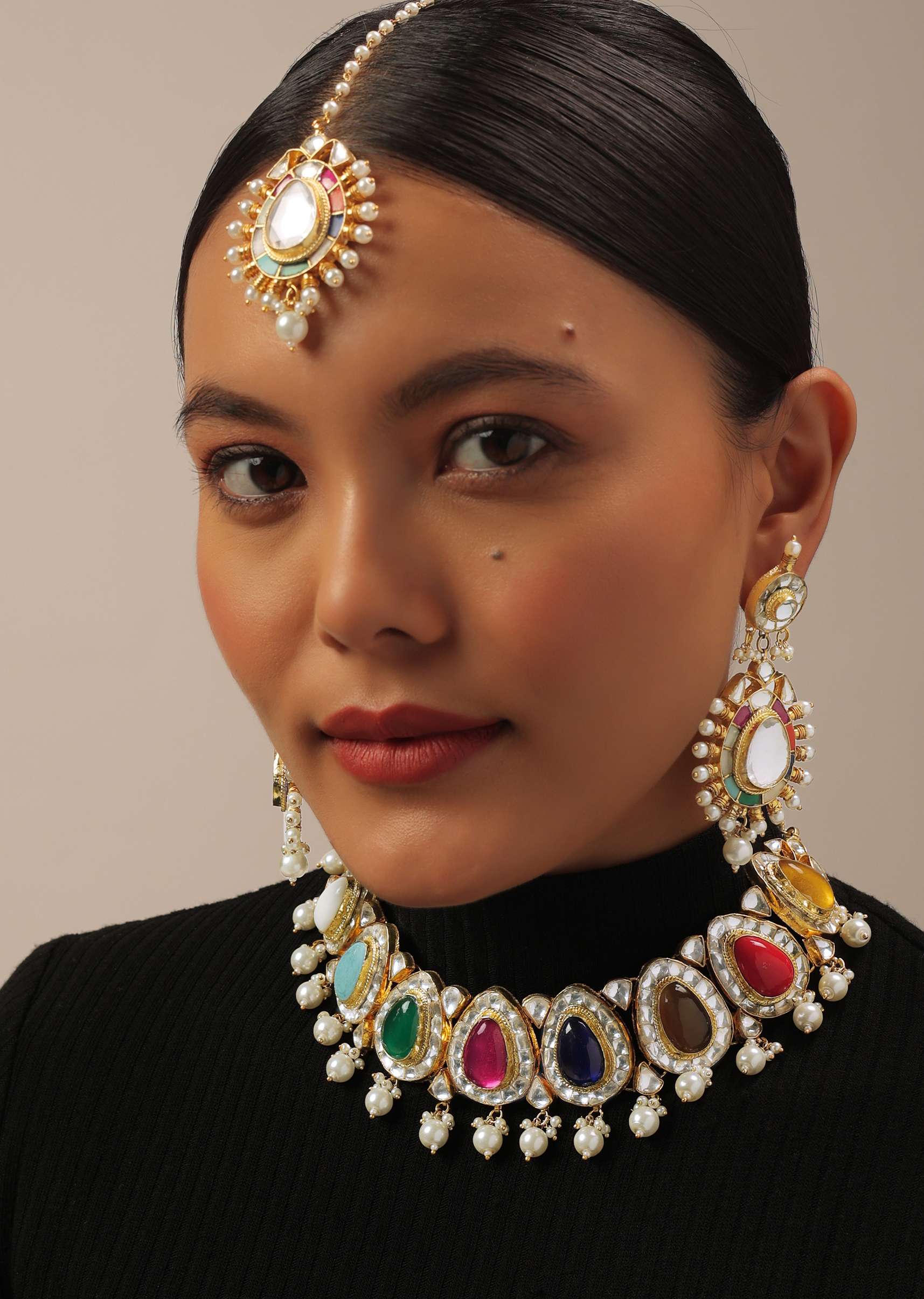 - The colorful stones are encased in gold finish kundan and polki work, giving it a regal look that is sure to turn heads.