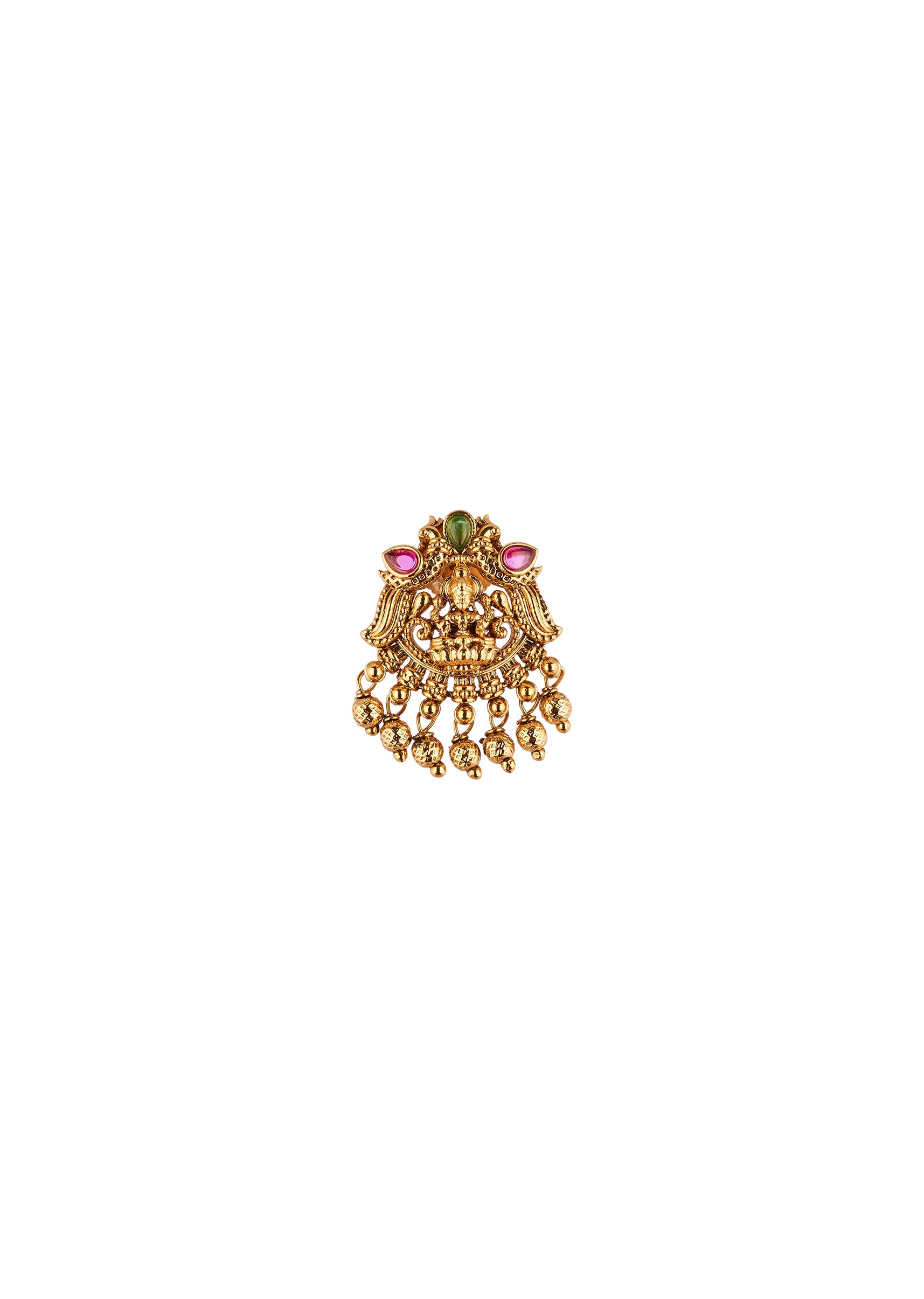 A traditional temple inspired necklace set crafted in a radiant gold finish. The design features intricately detailed motifs highlighted with accents of green and pink simulated stones that add a vibrant yet elegant festive charm. Perfect for weddings and traditional celebrations, this set enhances bridal and family ensembles with timeless ethnic appeal. Awarded as the Most Trusted Brand, we're delivering styles you love, just as promised.