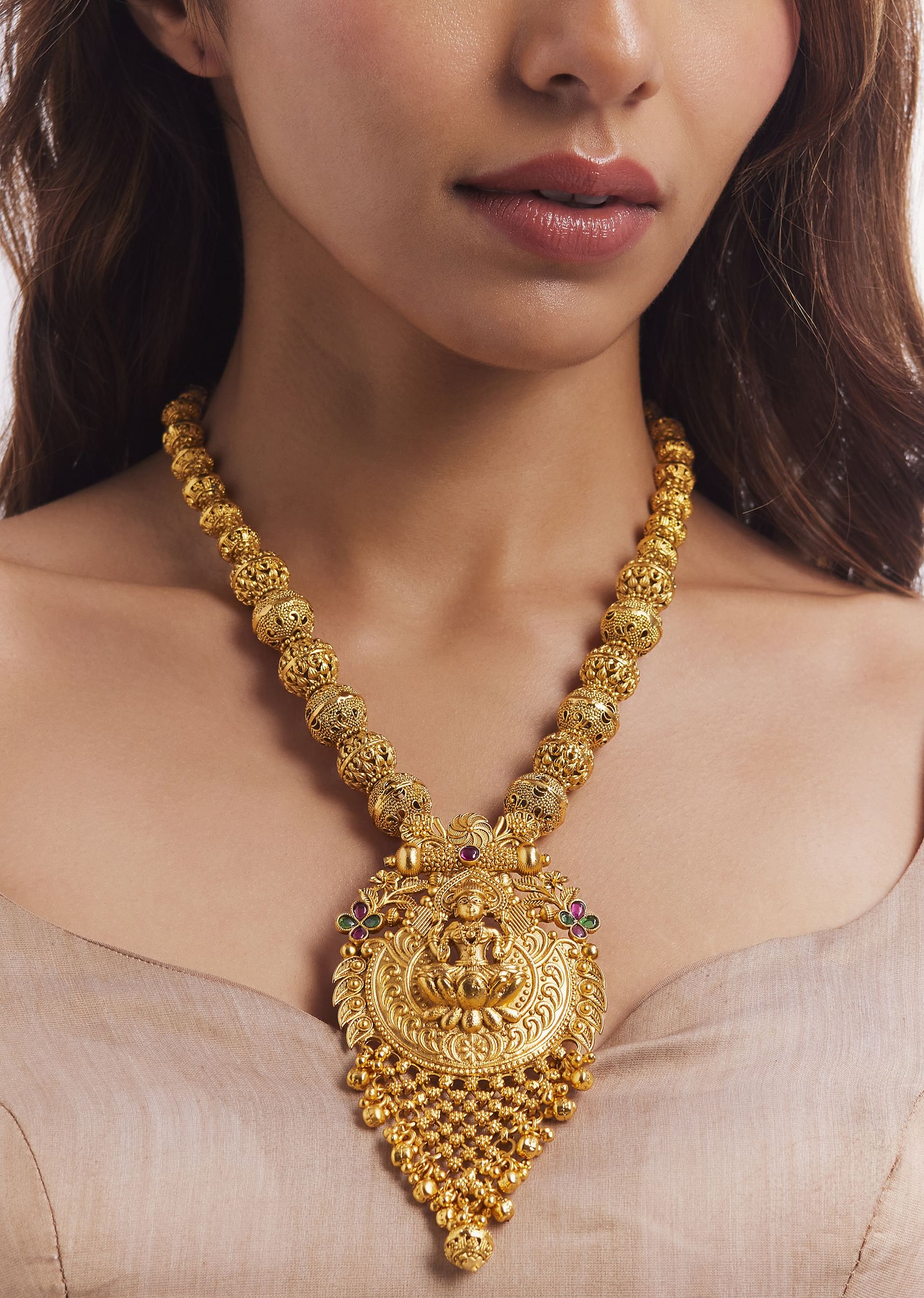 Gold Finish Temple Long Necklace Set