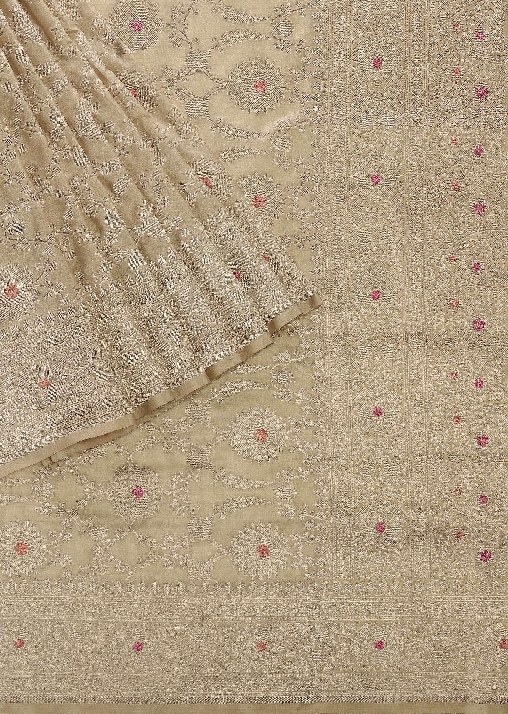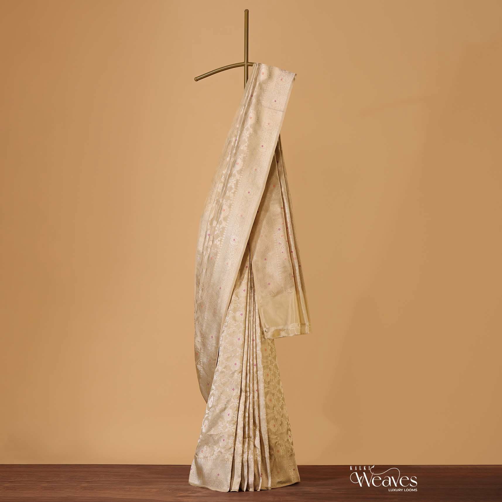 Gold Handloom Banarasi Saree In Uppada Silk With Meenakari Weave And Unstitched Blouse