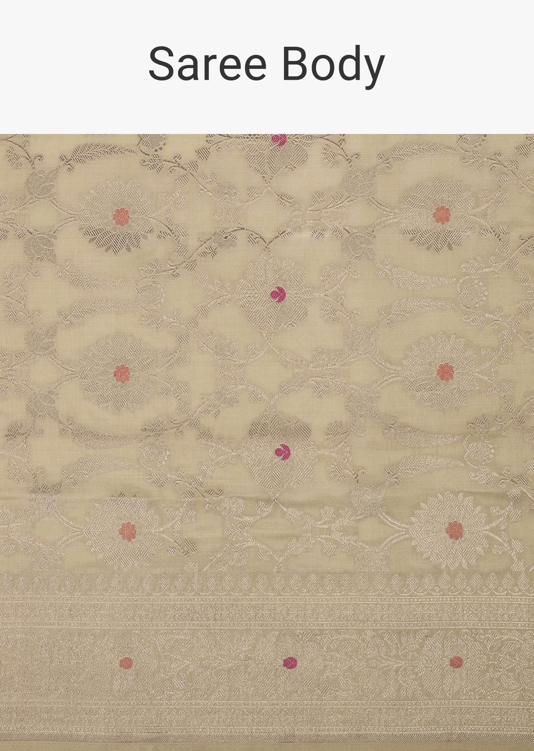 - Banarasi saree in premium meenakari weave, with a rich, intricately woven, and beautiful border.