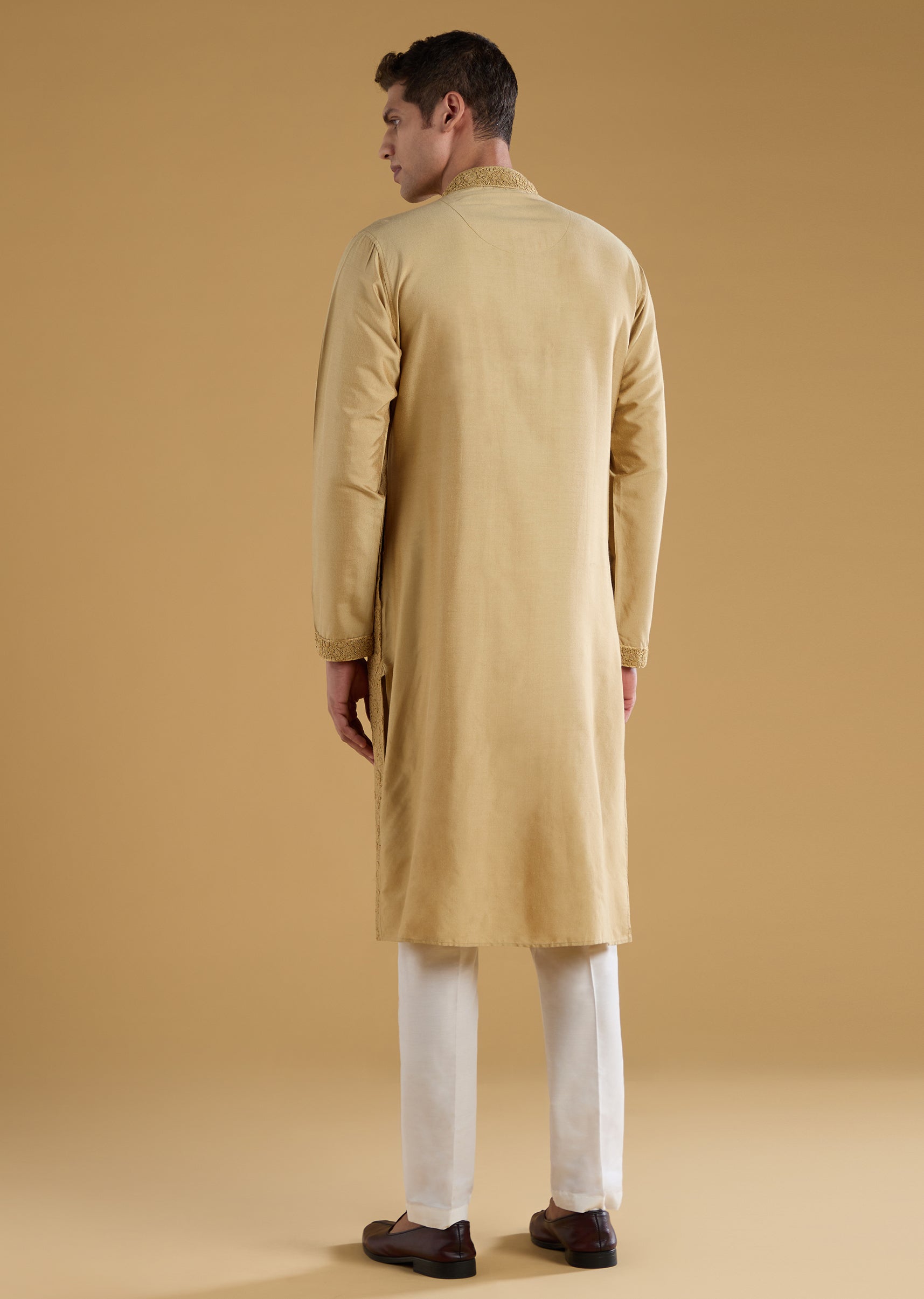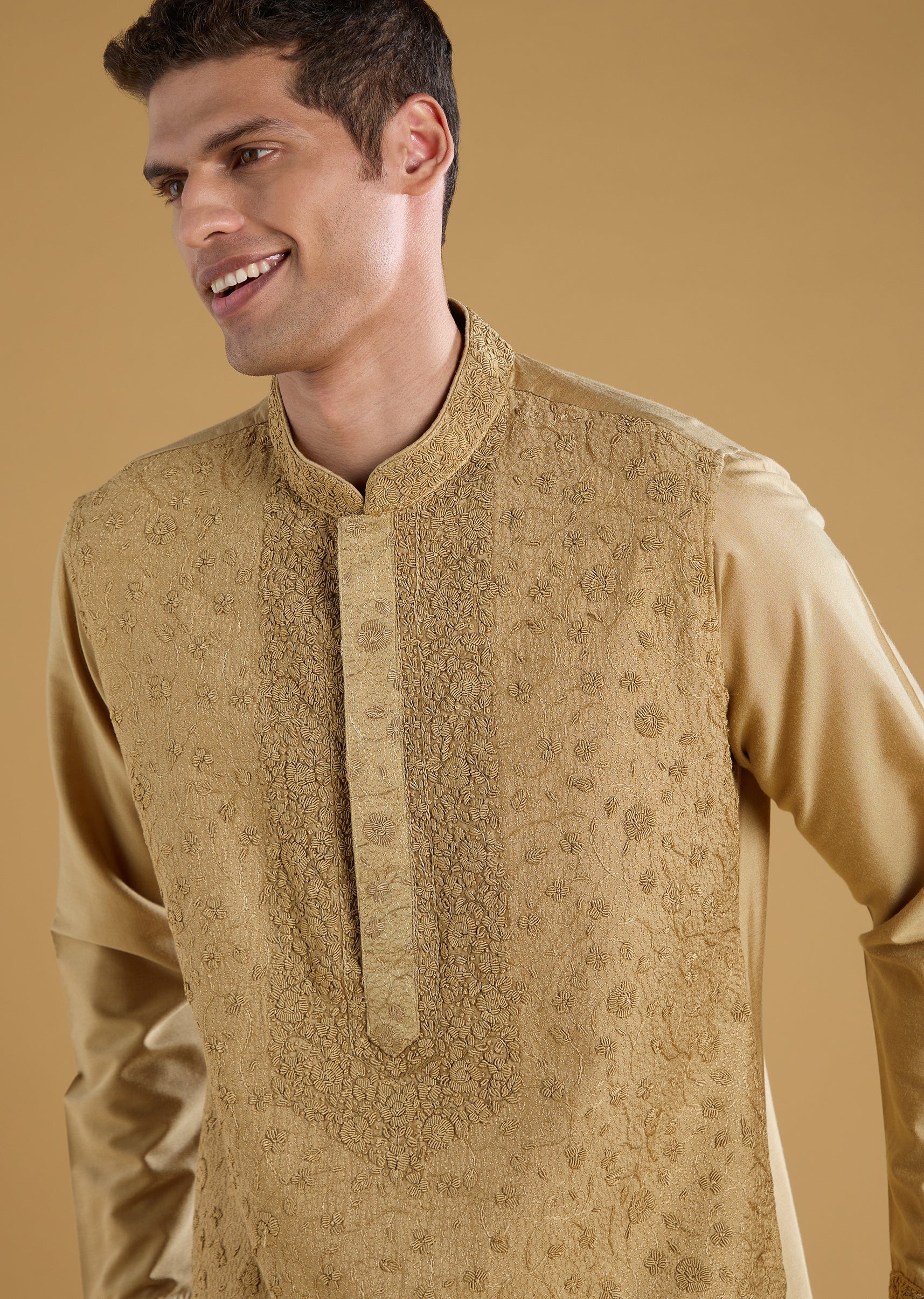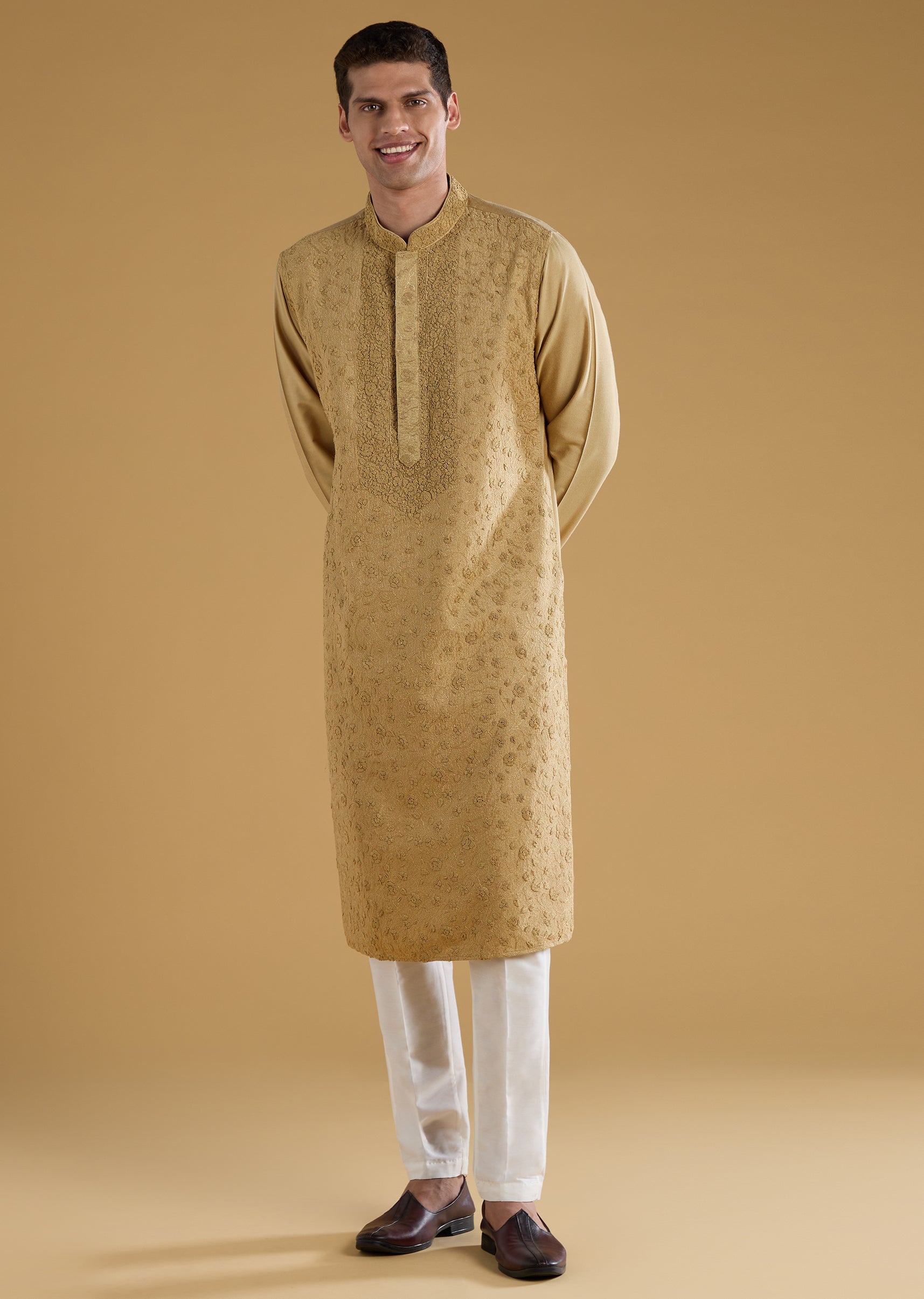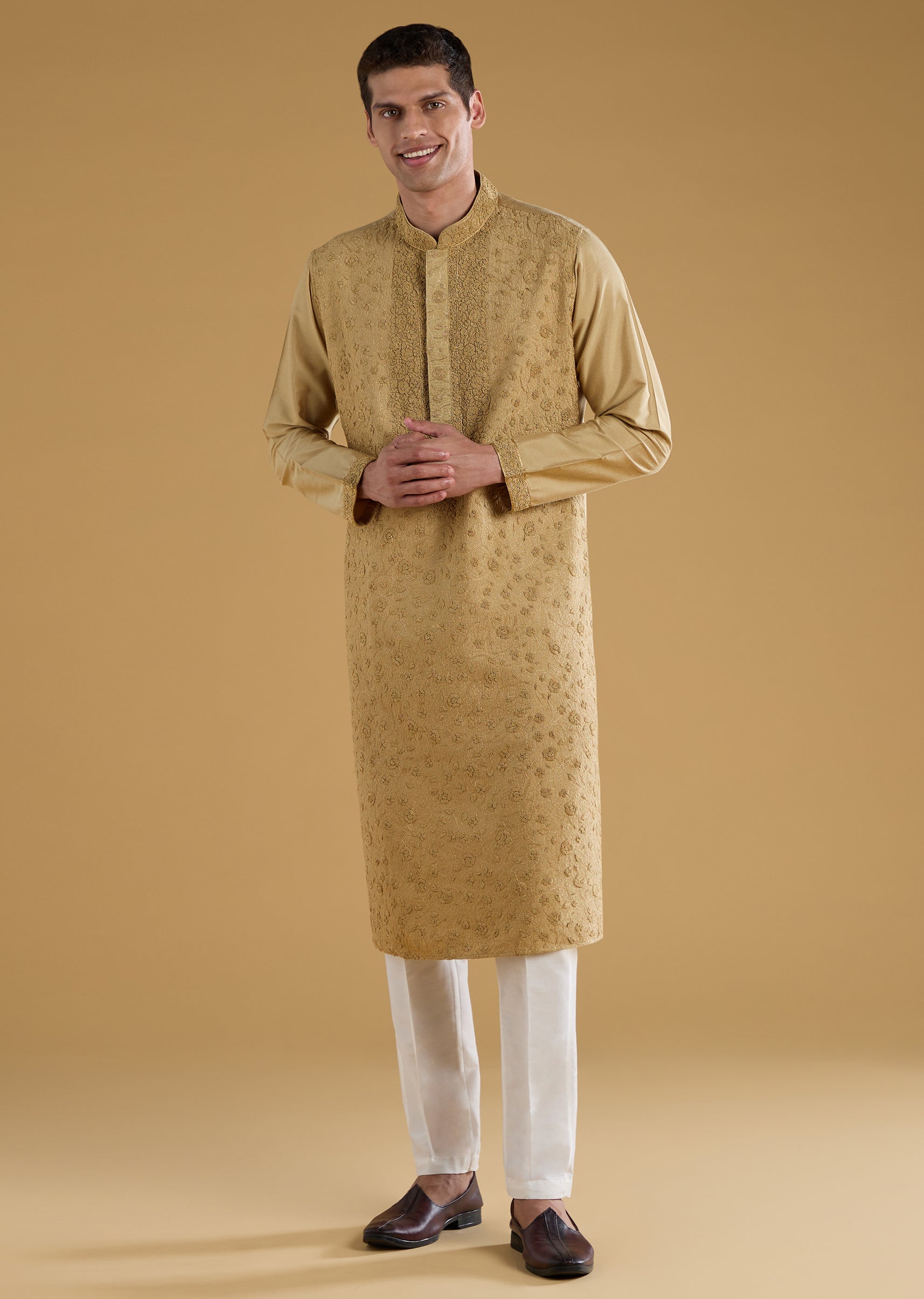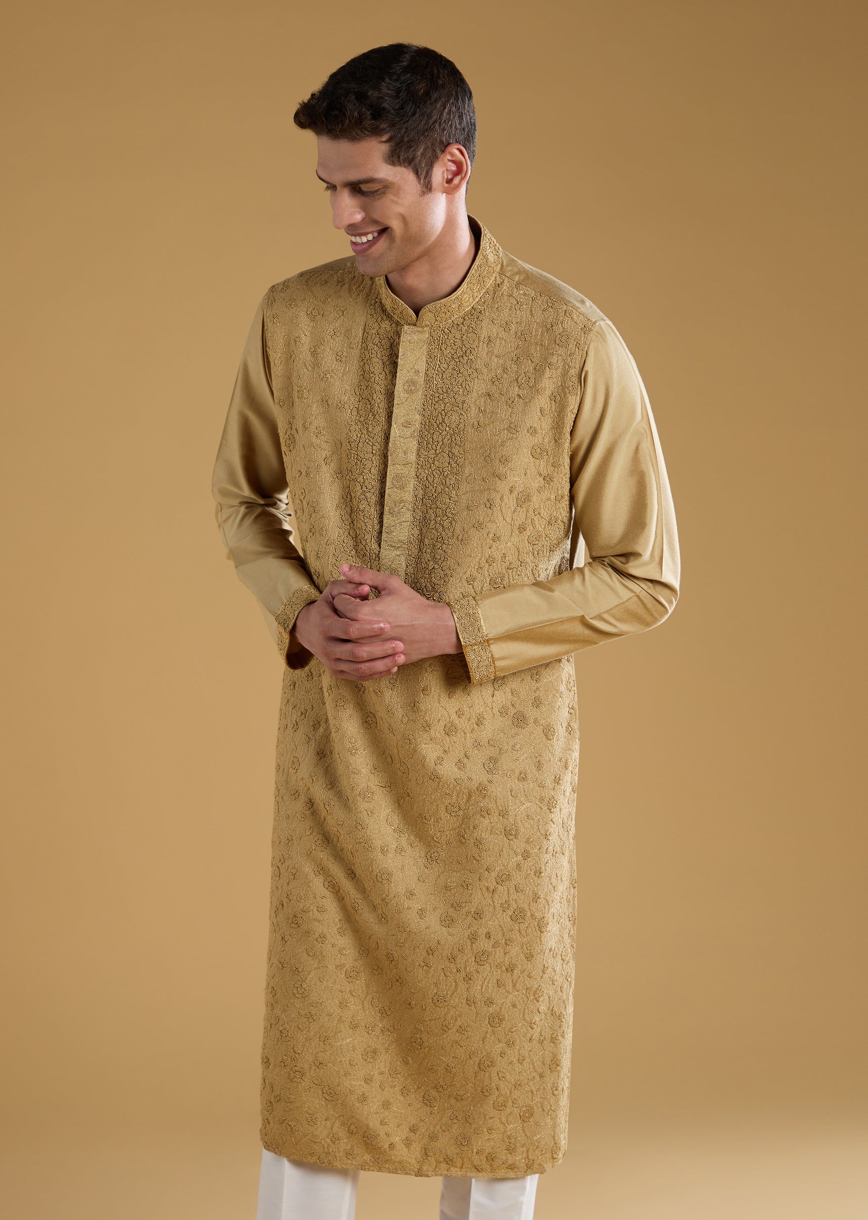 Gold Kashmiri Work Banarasi Silk Mens Kurta Set
