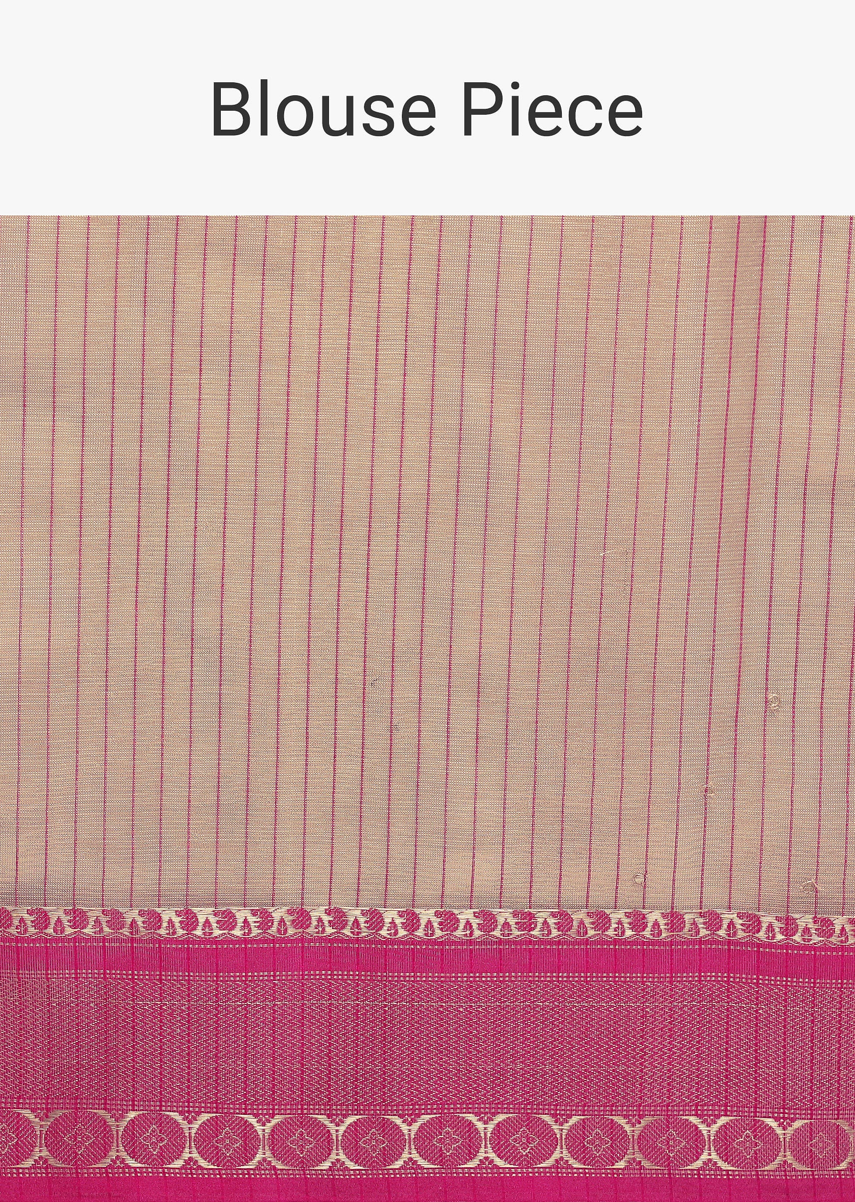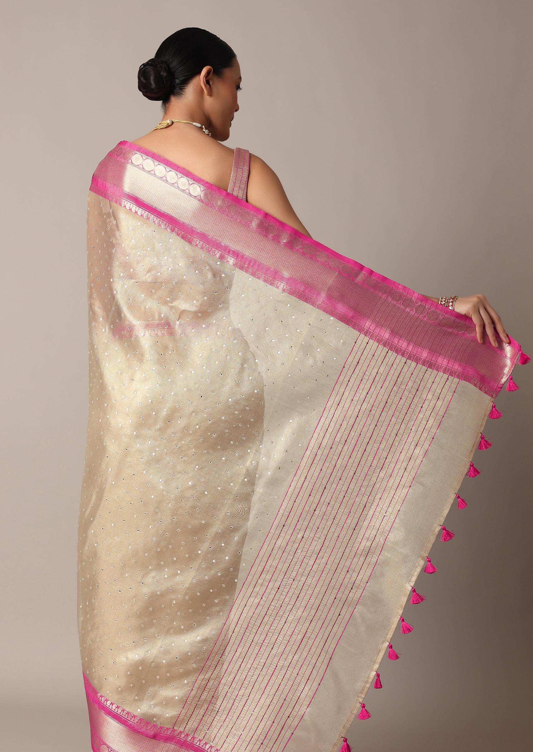 Gold Kota Silk Chanderi Saree With Mirror Detail And Unstitched Blouse Piece