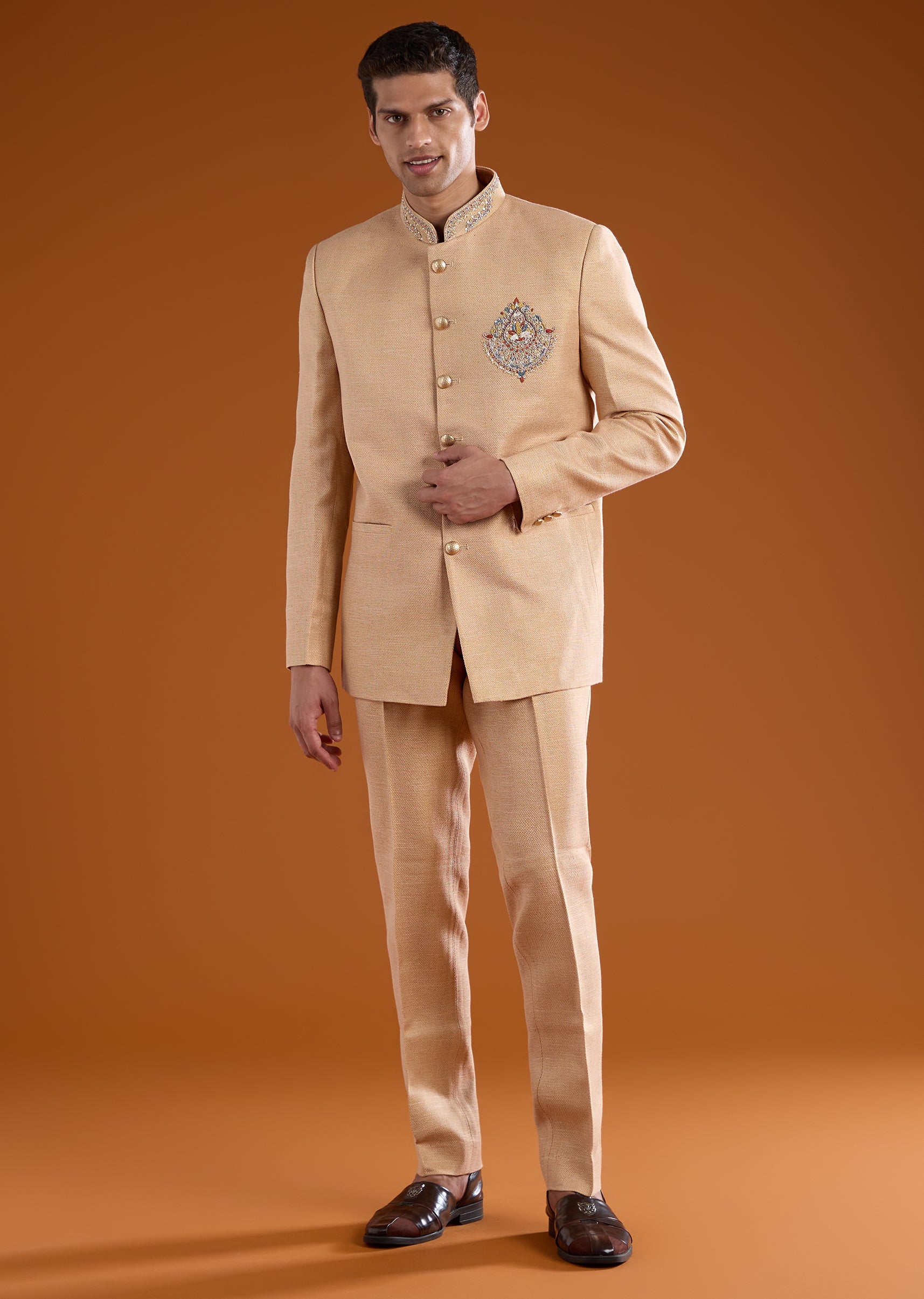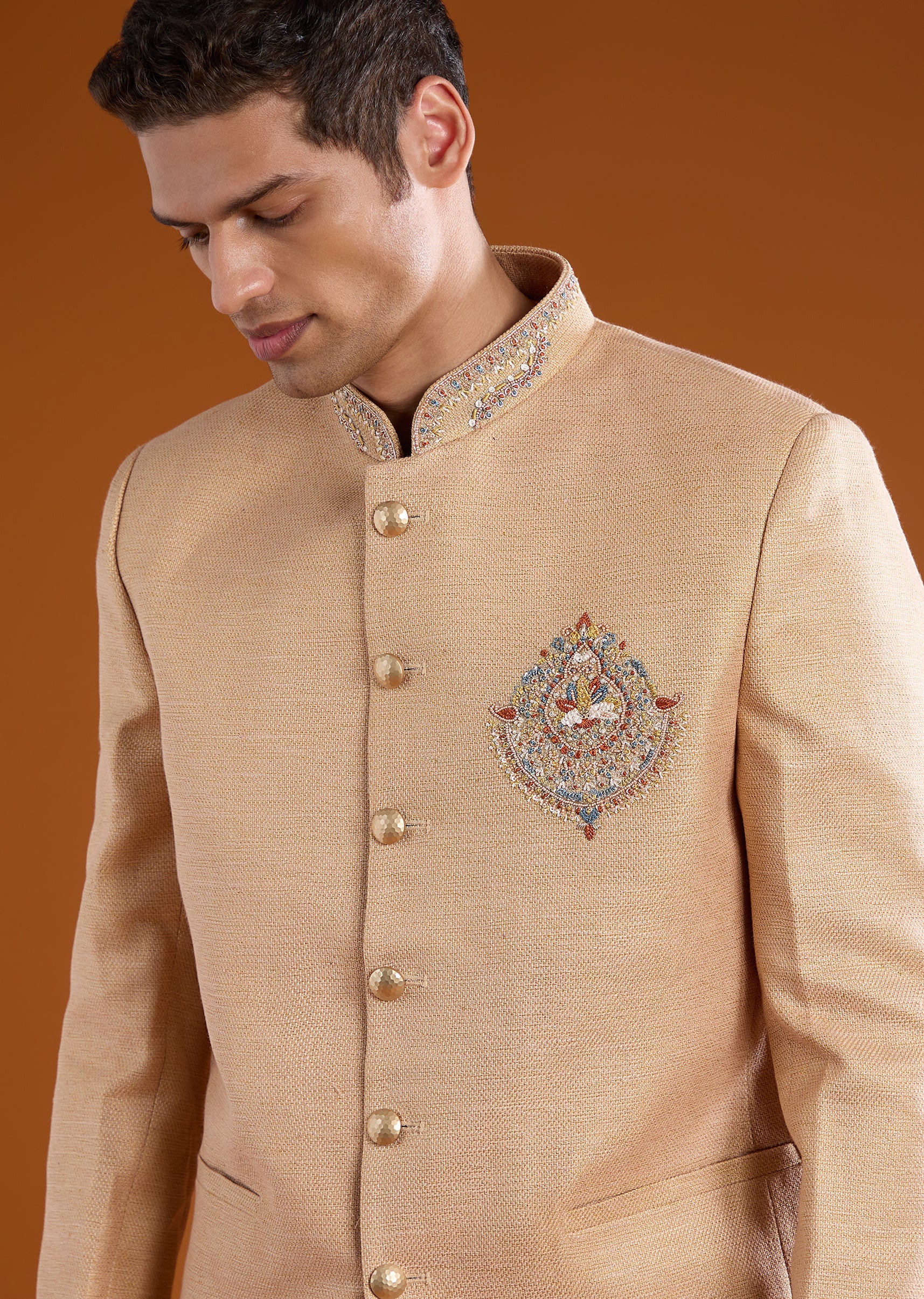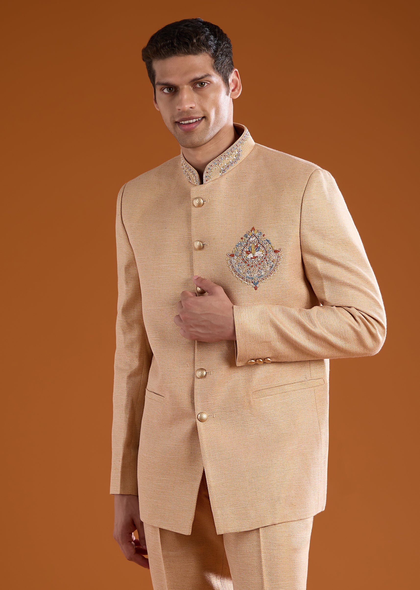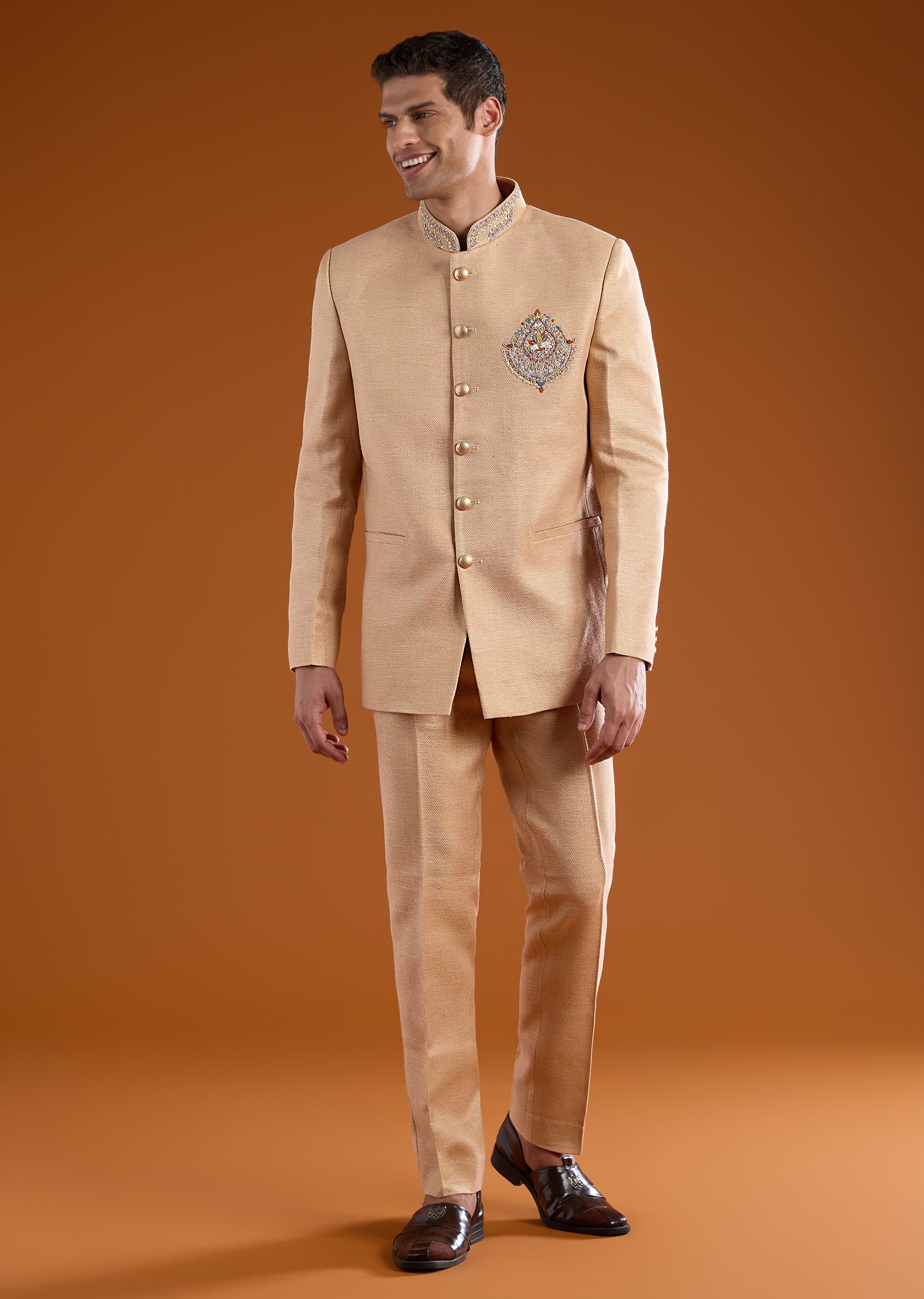 Gold Matka Silk Jodhpuri Set with Bead Work