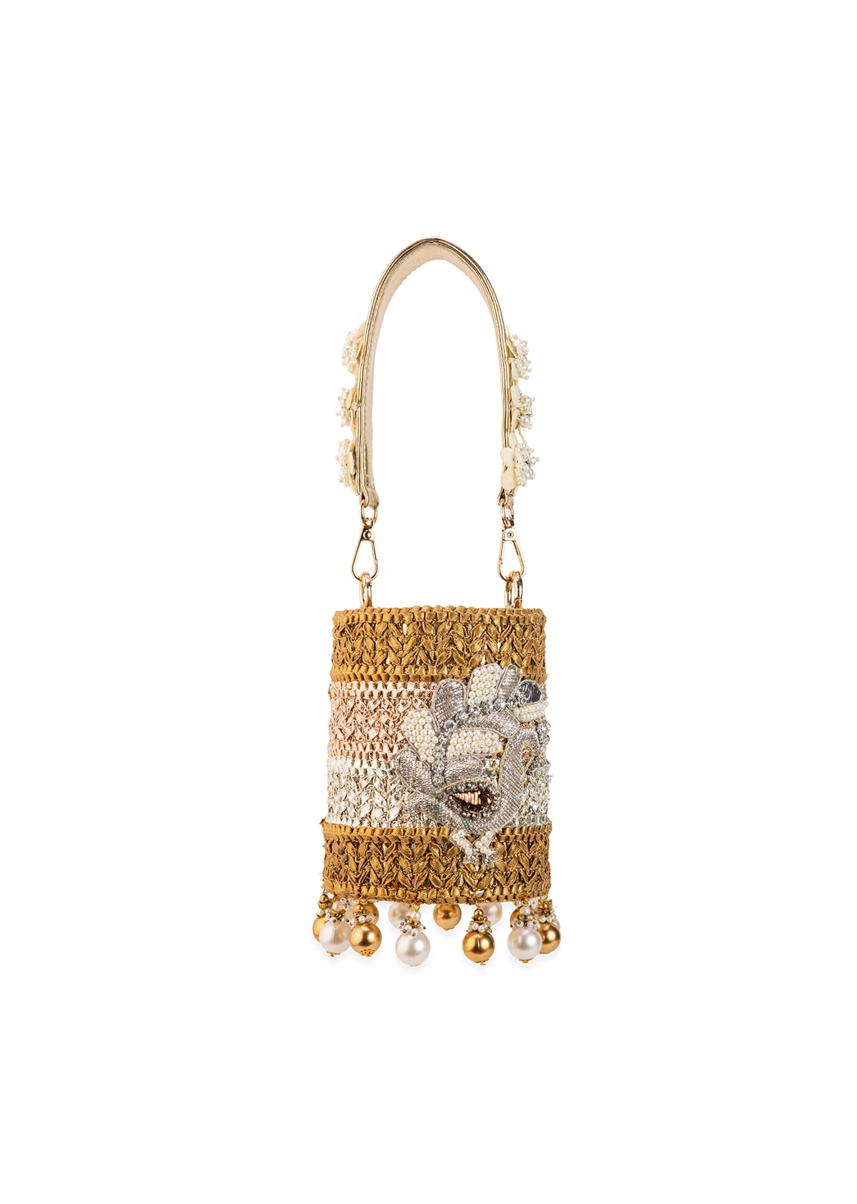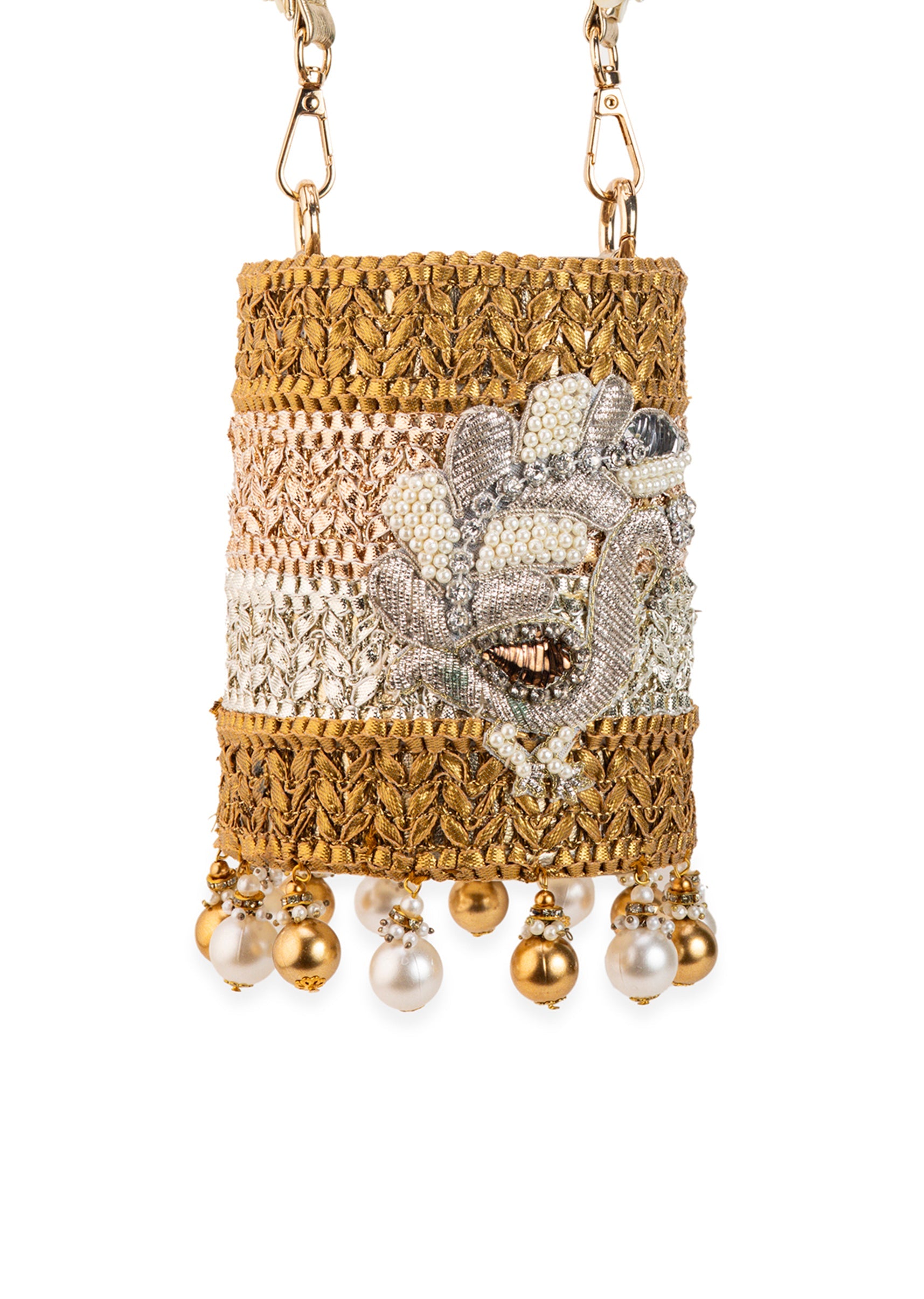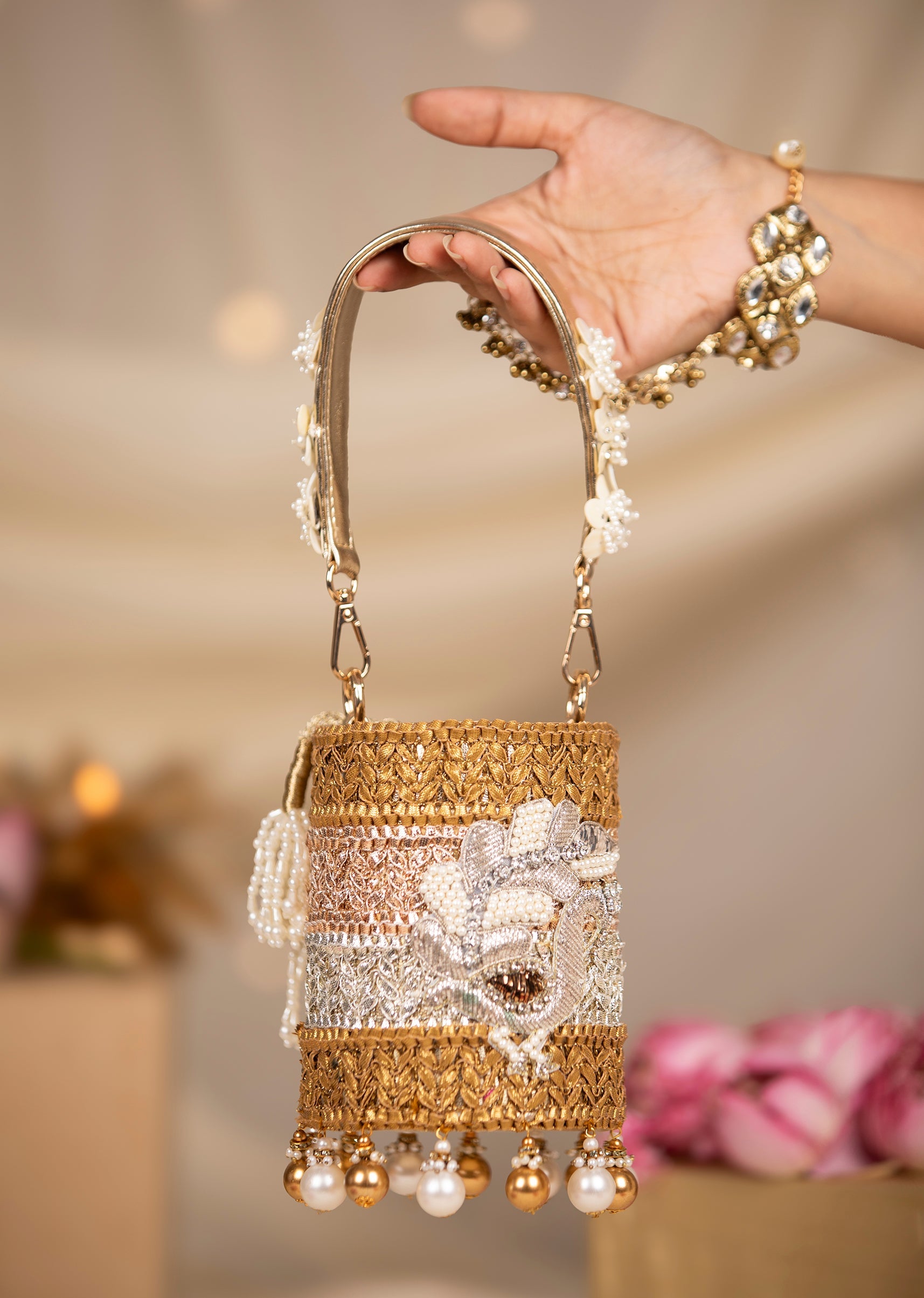 Gold Multi Bead Drop Hand Embroidered Potli Bucket Bag