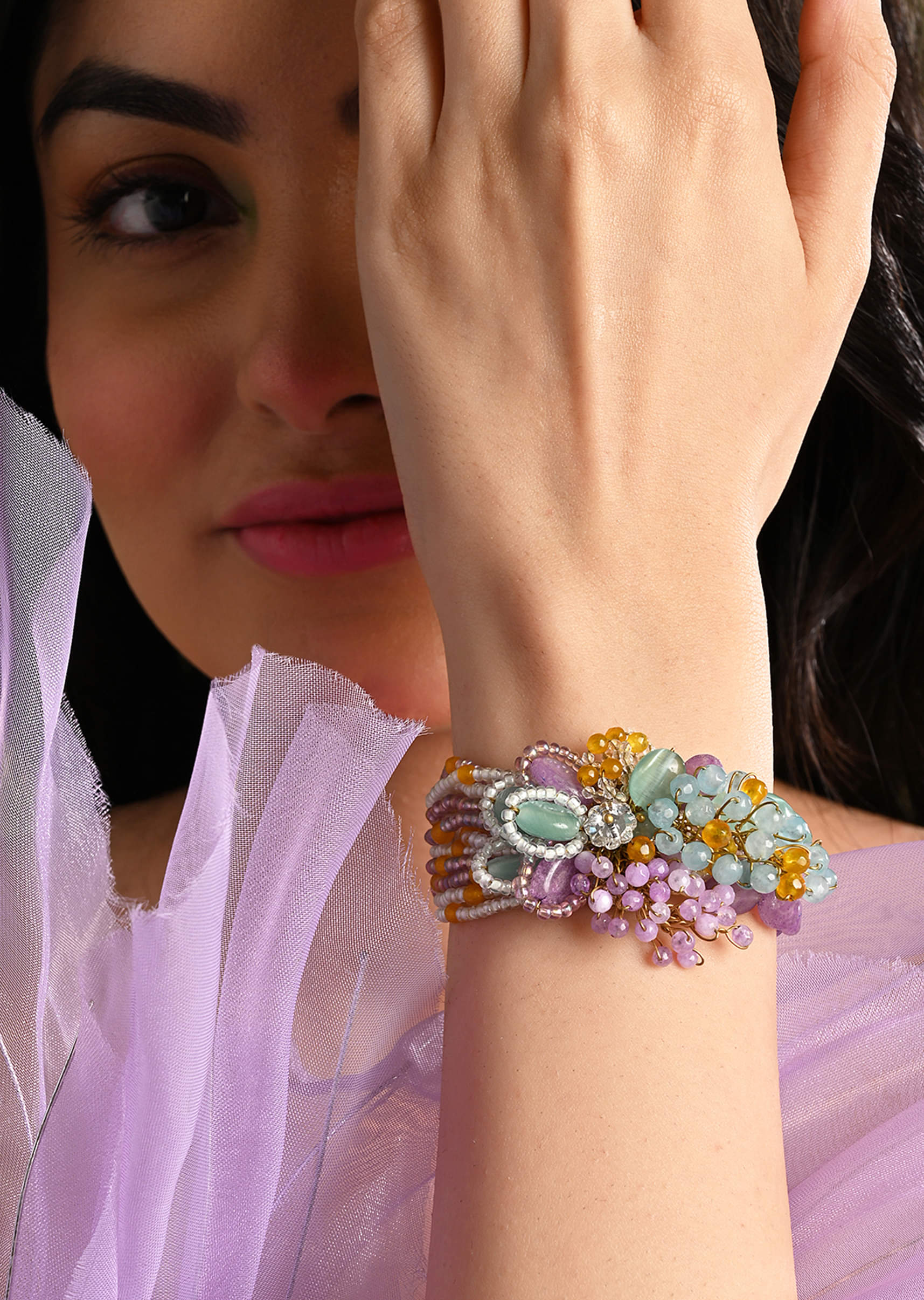 gold plated colourful stone adjustable bracelet for weddings