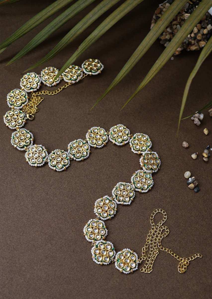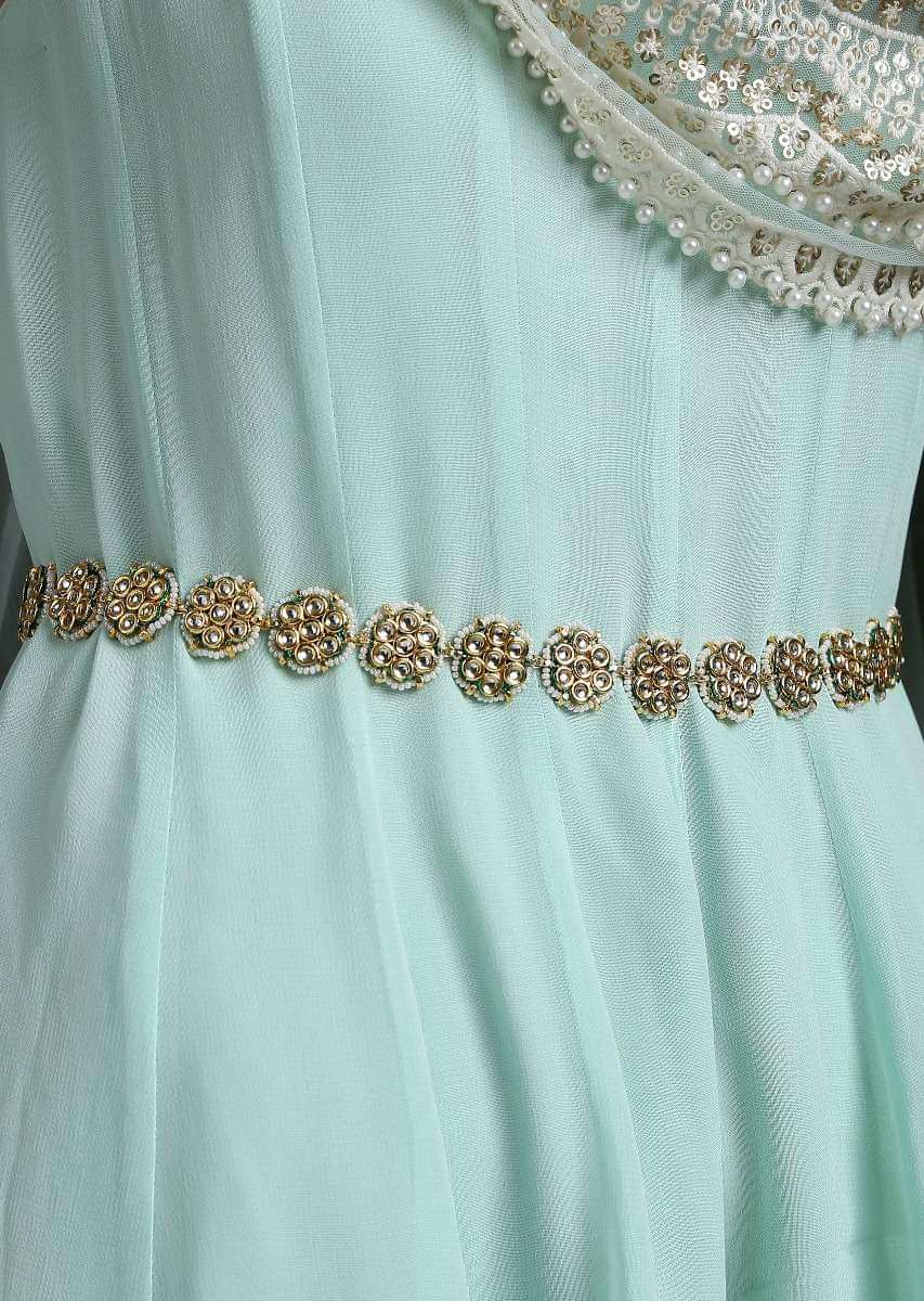 Gold Plated Waist belt Made With Timeless Polki In Floral Motifs That Are Edged With High Grade Shell Pearls By Paisley Pop