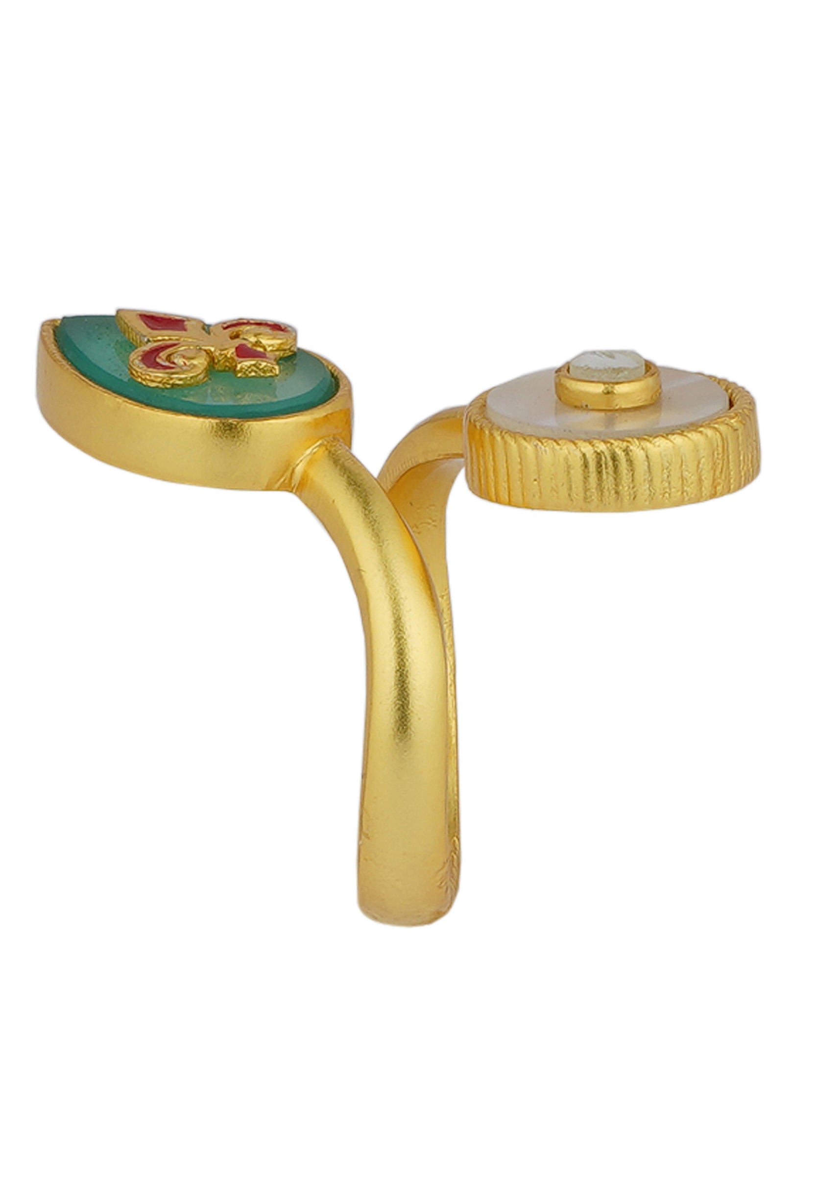 This Exquisite Gold Party Ring Features A Blend Of Traditional Green Onyx And Modern Zircon Detailing Offering A Perfect Harmony Of Old And New Design Elements. The Intricate Craftsmanship Highlights The Vibrant Green Onyx Making It A Bold And Elegant Statement Piece For Special Occasions. Its Mixmetal Base Ensures Durability While Providing A Lightweight And Comfortable Fit For Extended Wear.Awarded As The Most Trusted Brand We'Re Delivering Styles You Love Just As Promised.