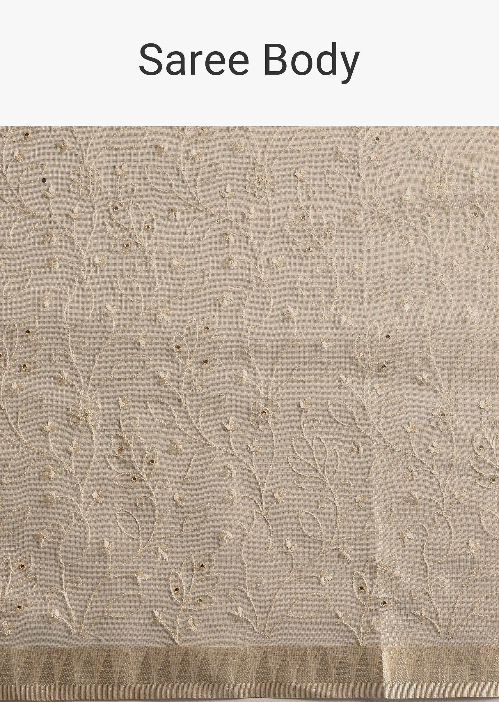 - Adorned with delicate motifs this experlty crafted luxurious saree celebrates rich Indian artistry.
