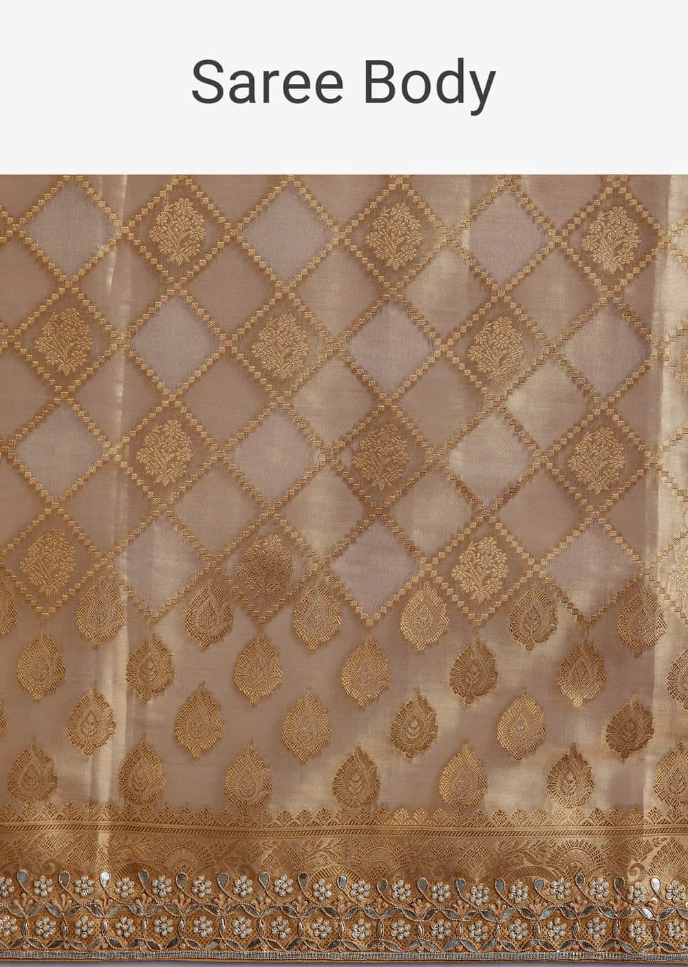 Gold Tissue Brocade Saree With Tassels And Gota Patti Moti Embroidery
