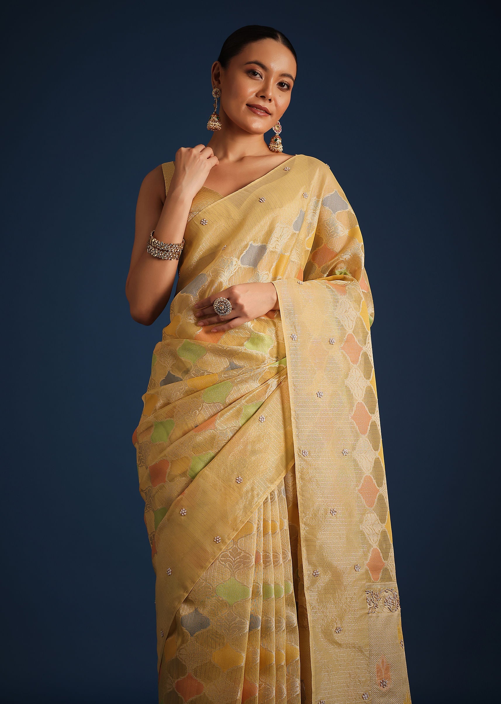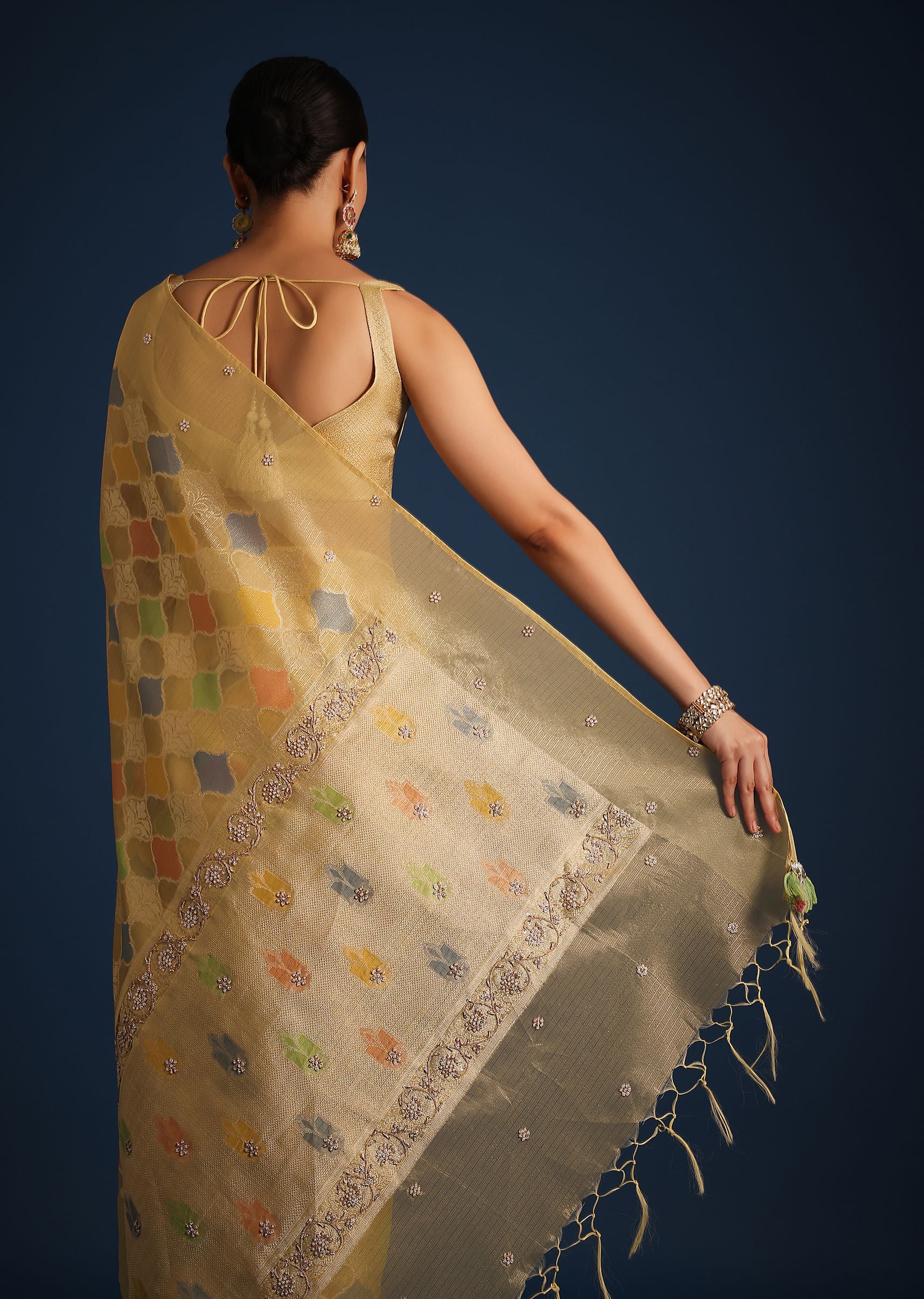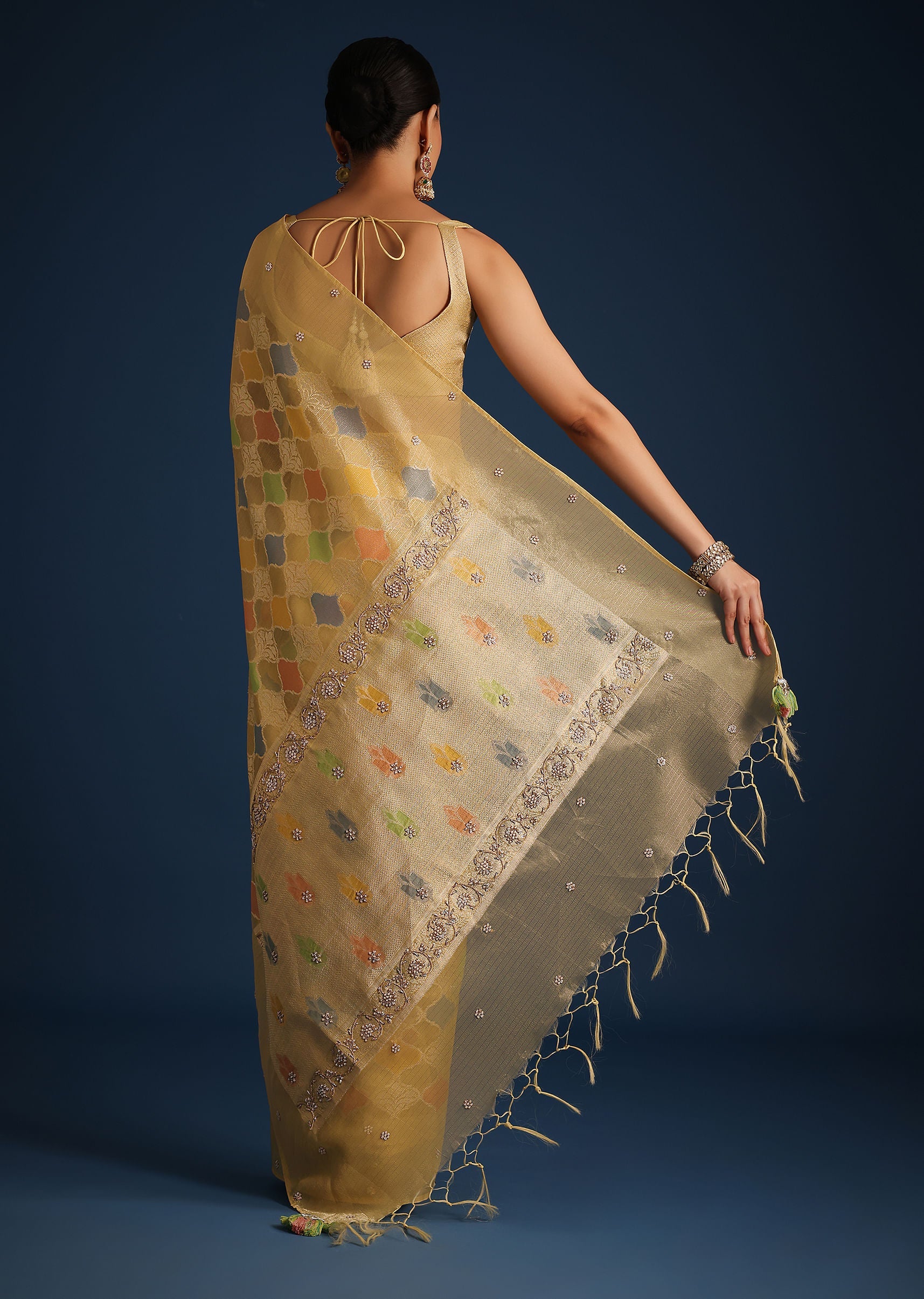 Gold Tissue Chanderi Rangkart Saree with Zardosi Work