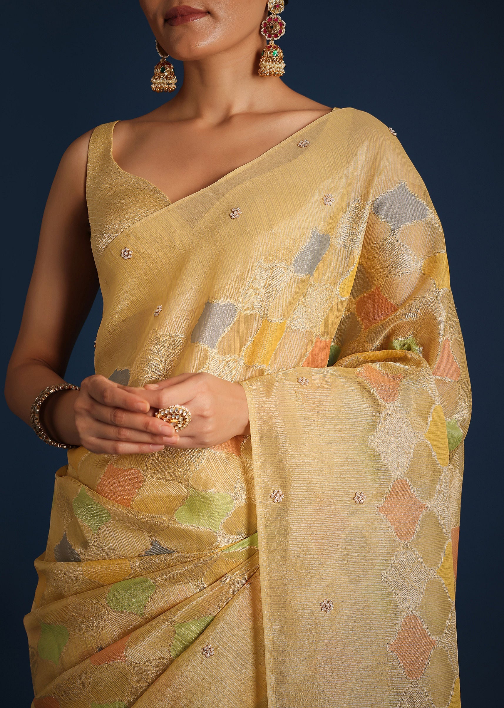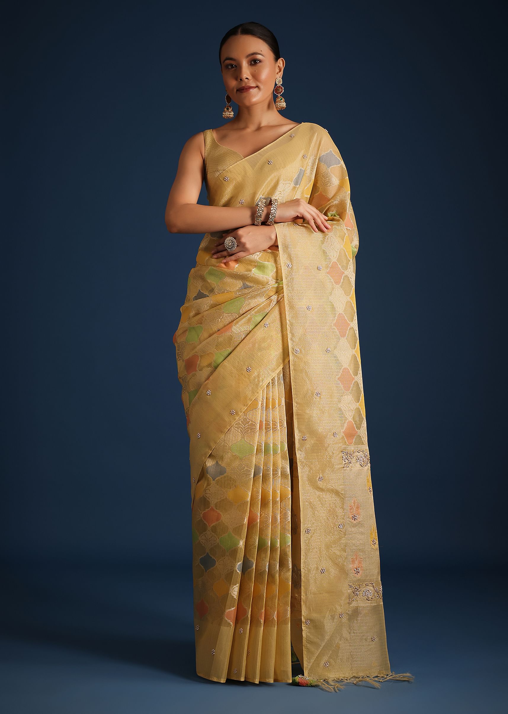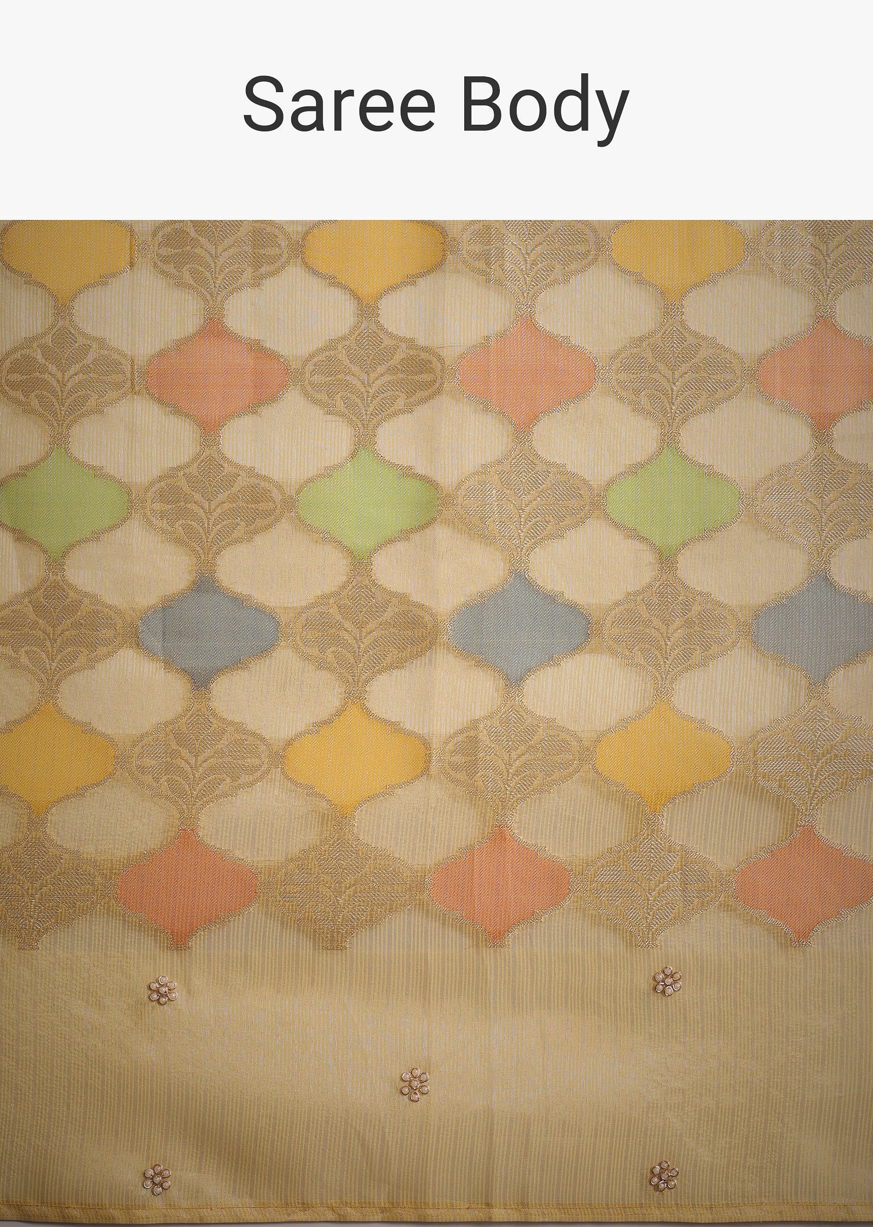 Gold Tissue Chanderi Rangkart Saree with Zardosi Work