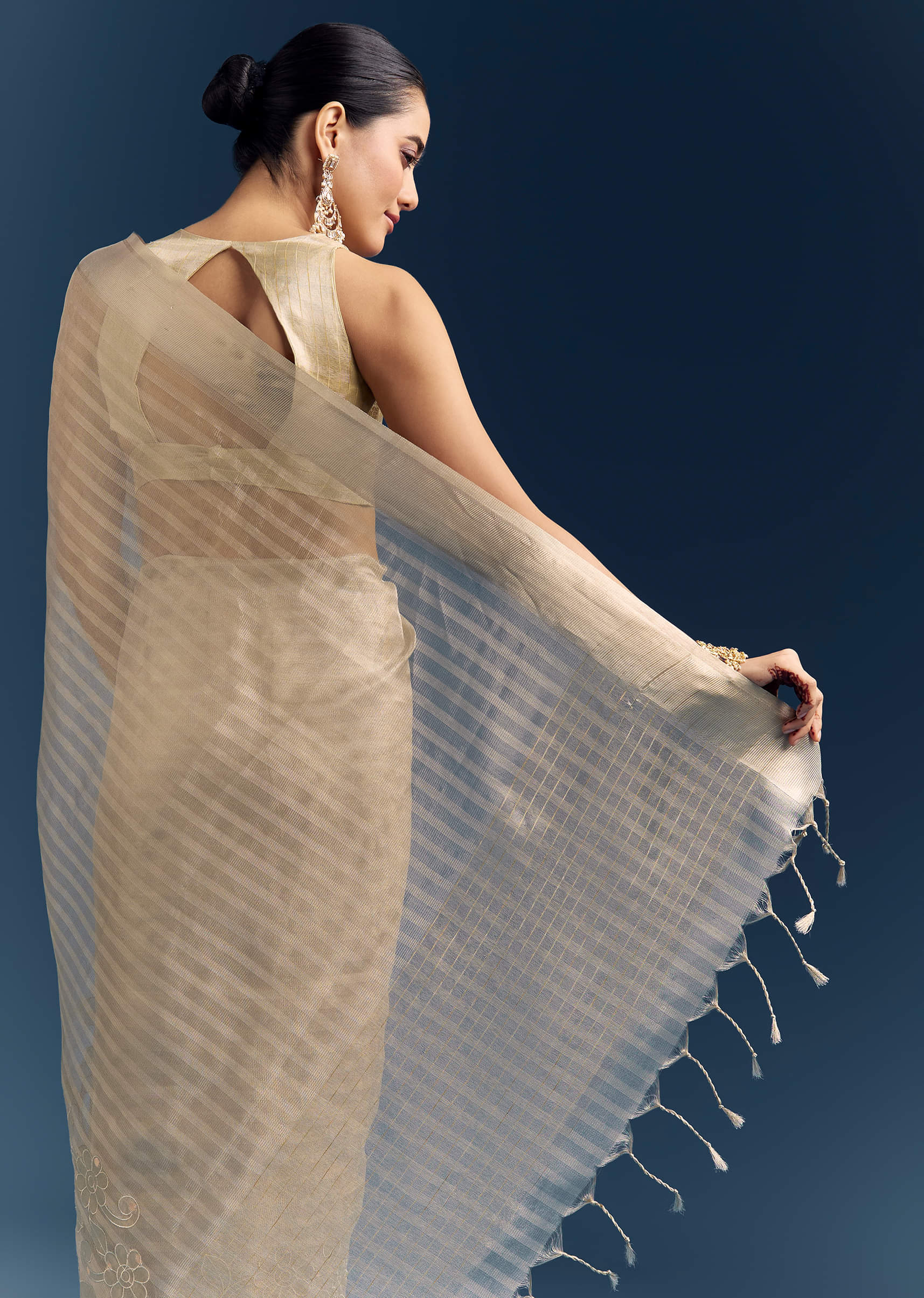 Gold Tissue Organza Saree With Zari And Resham Embroidery