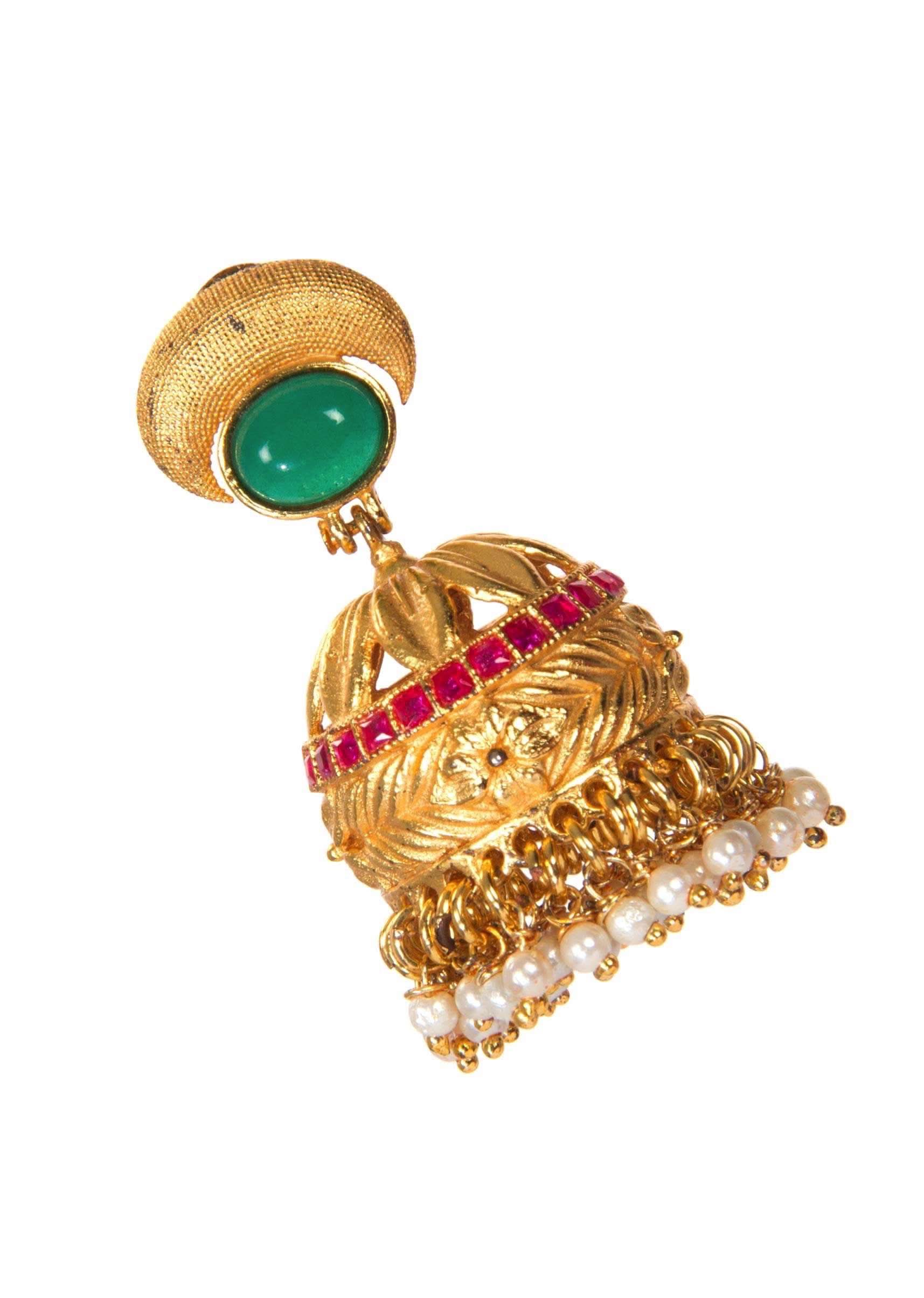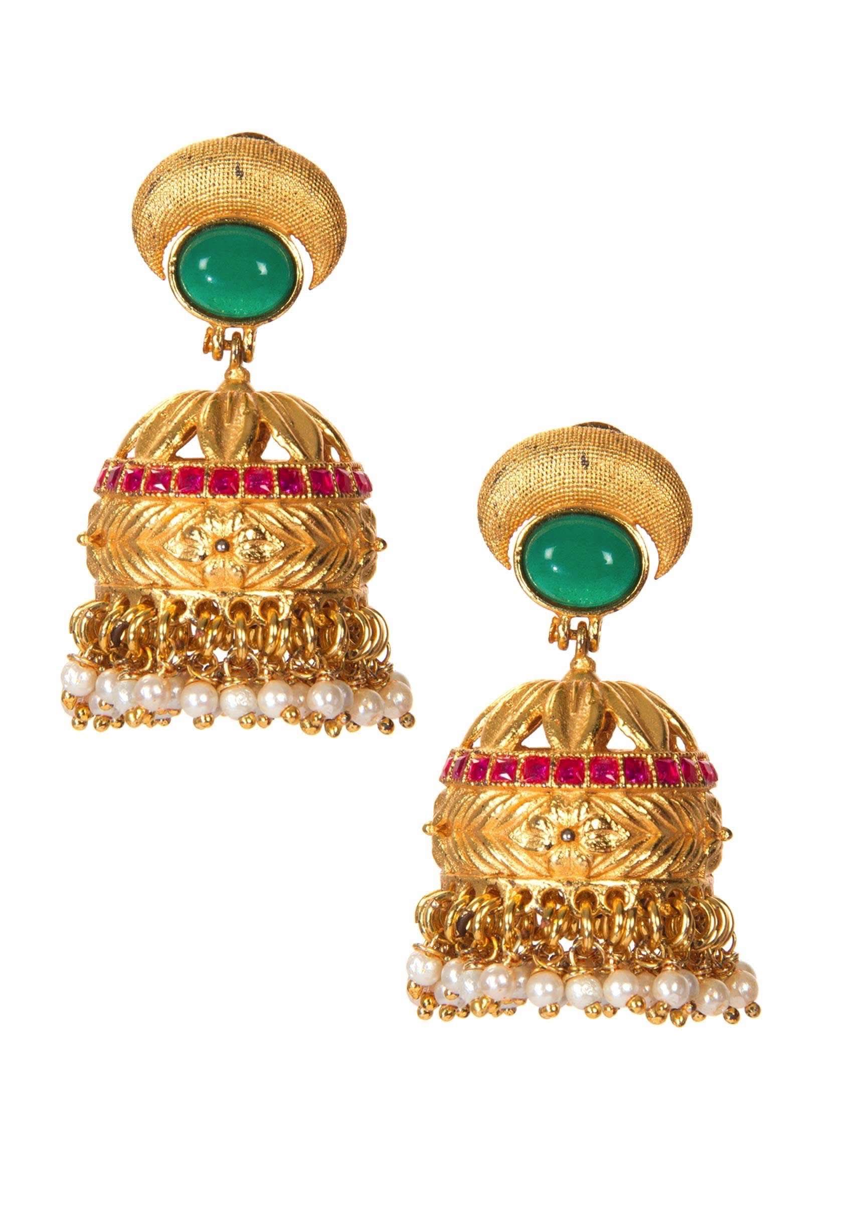 - Find these gold toned jhumkas as your perfect accessory.