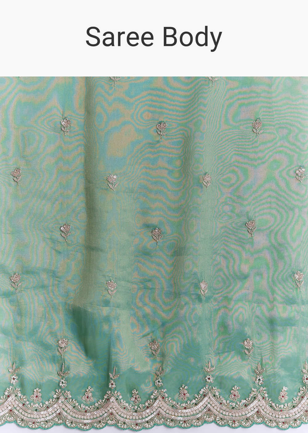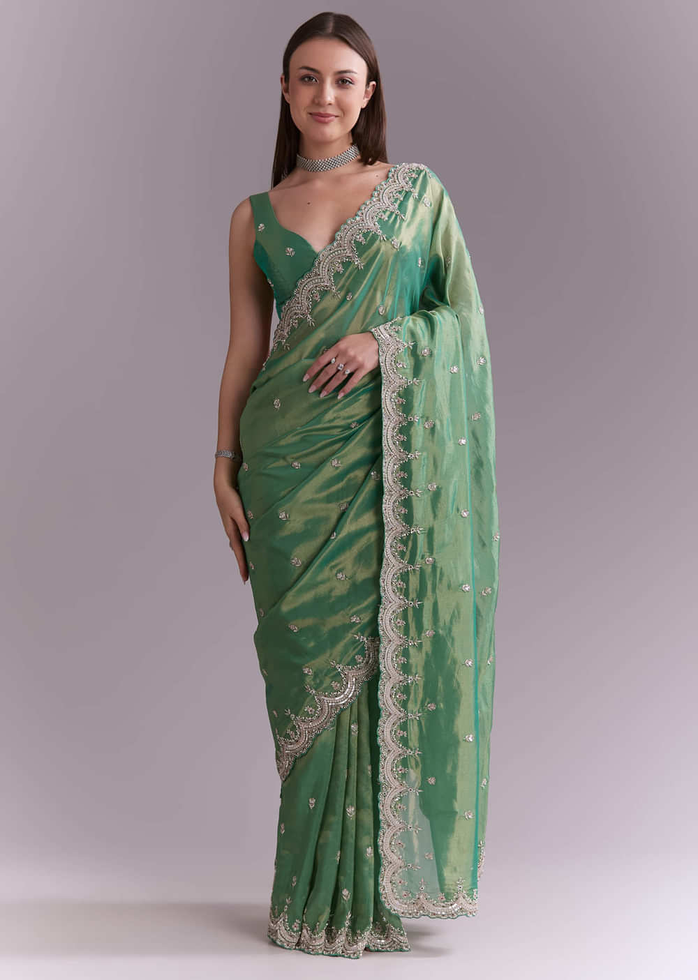 Grass Green Silk Saree With Heavy Hand Embroidery