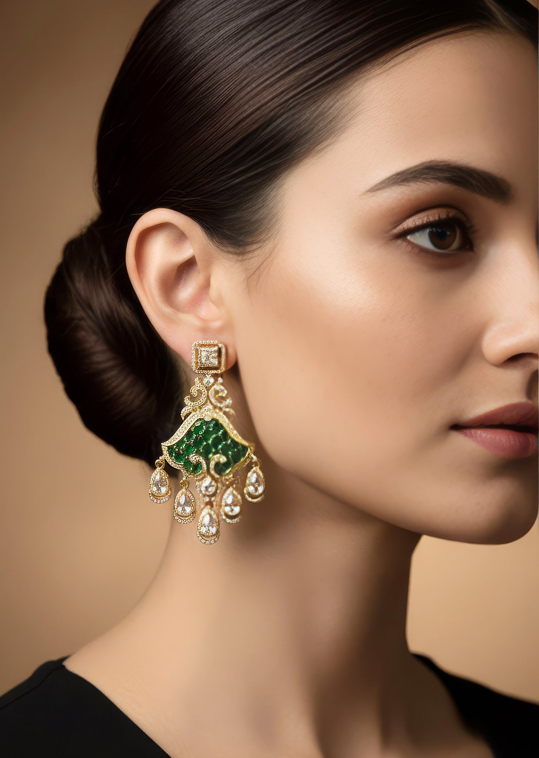 A touch of old world charm meets modern sparkle in these CZ diamond look earrings finished in rich green and gold tones. Crafted in durable rhodium plated brass with an anti tarnish finish, they shine with refined elegance while remaining lightweight and comfortable. Perfect for festive occasions, weddings, and evening celebrations where subtle glamour makes a statement. Awarded as the Most Trusted Brand, we're delivering styles you love, just as promised.