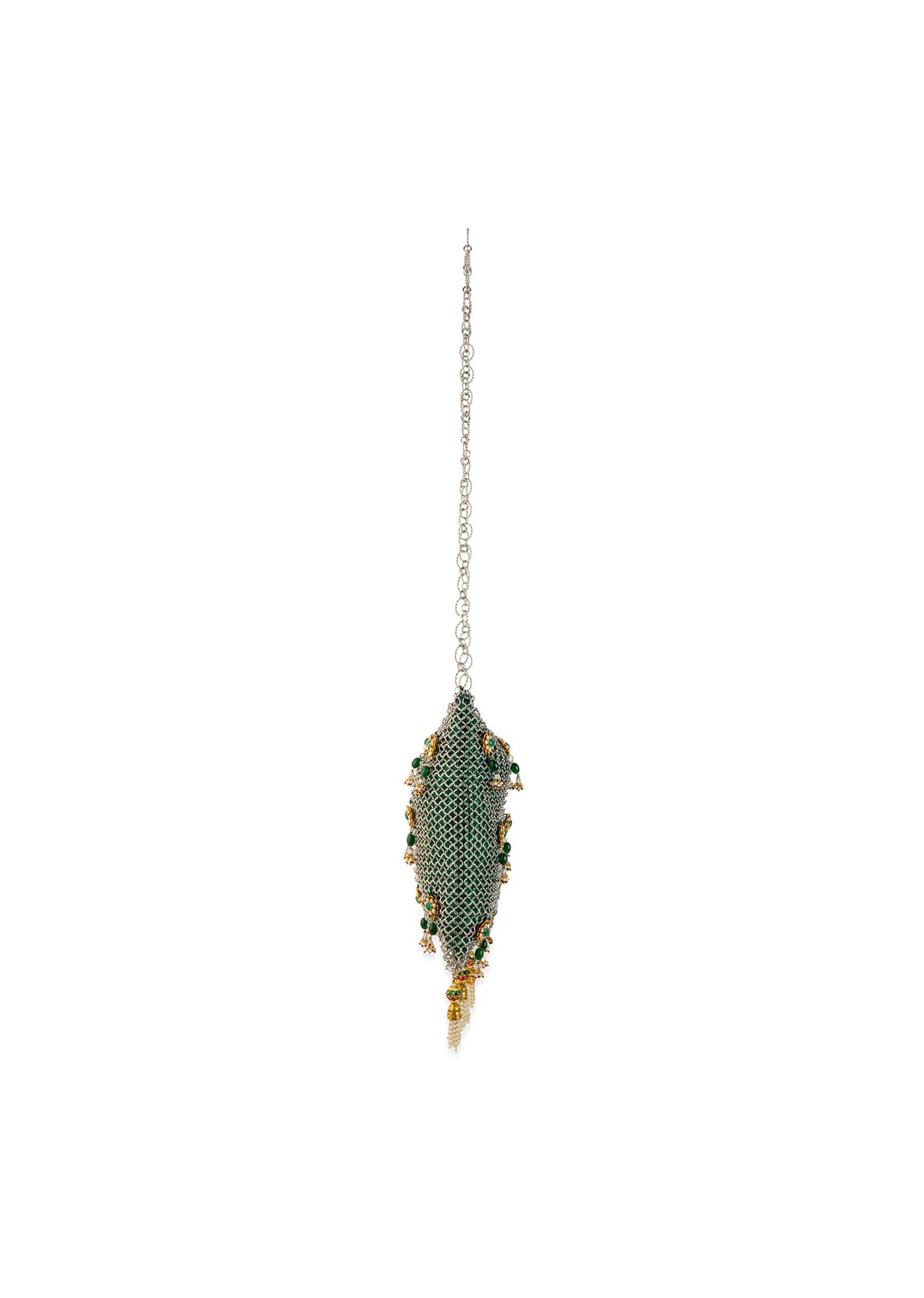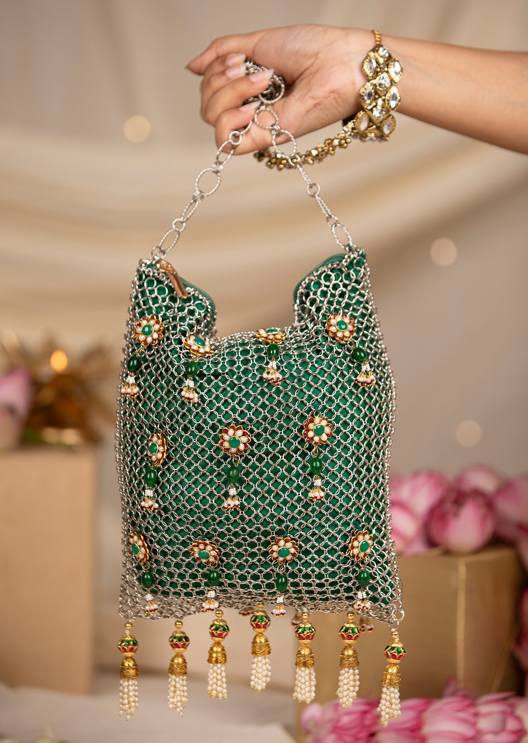 Green and Gold Jaal Mesh Pearl Embellished Bag