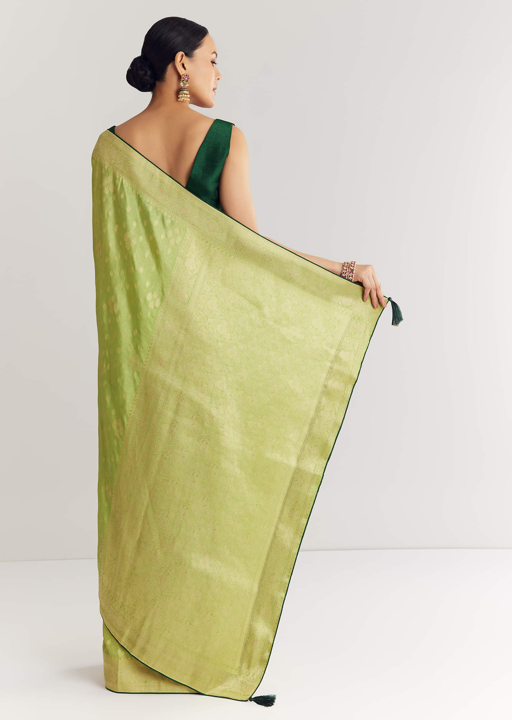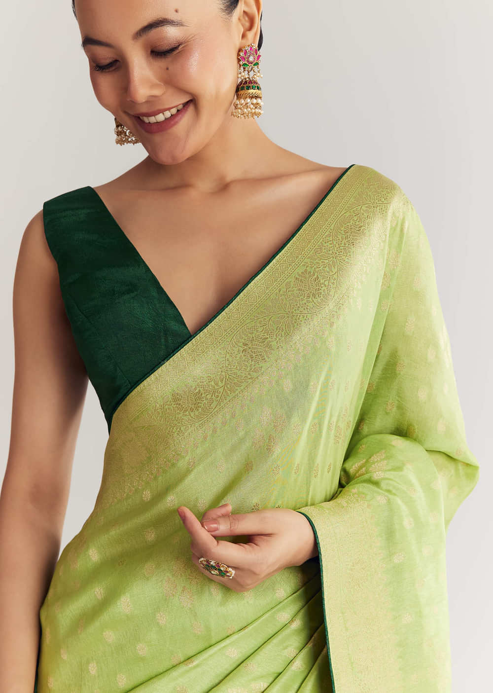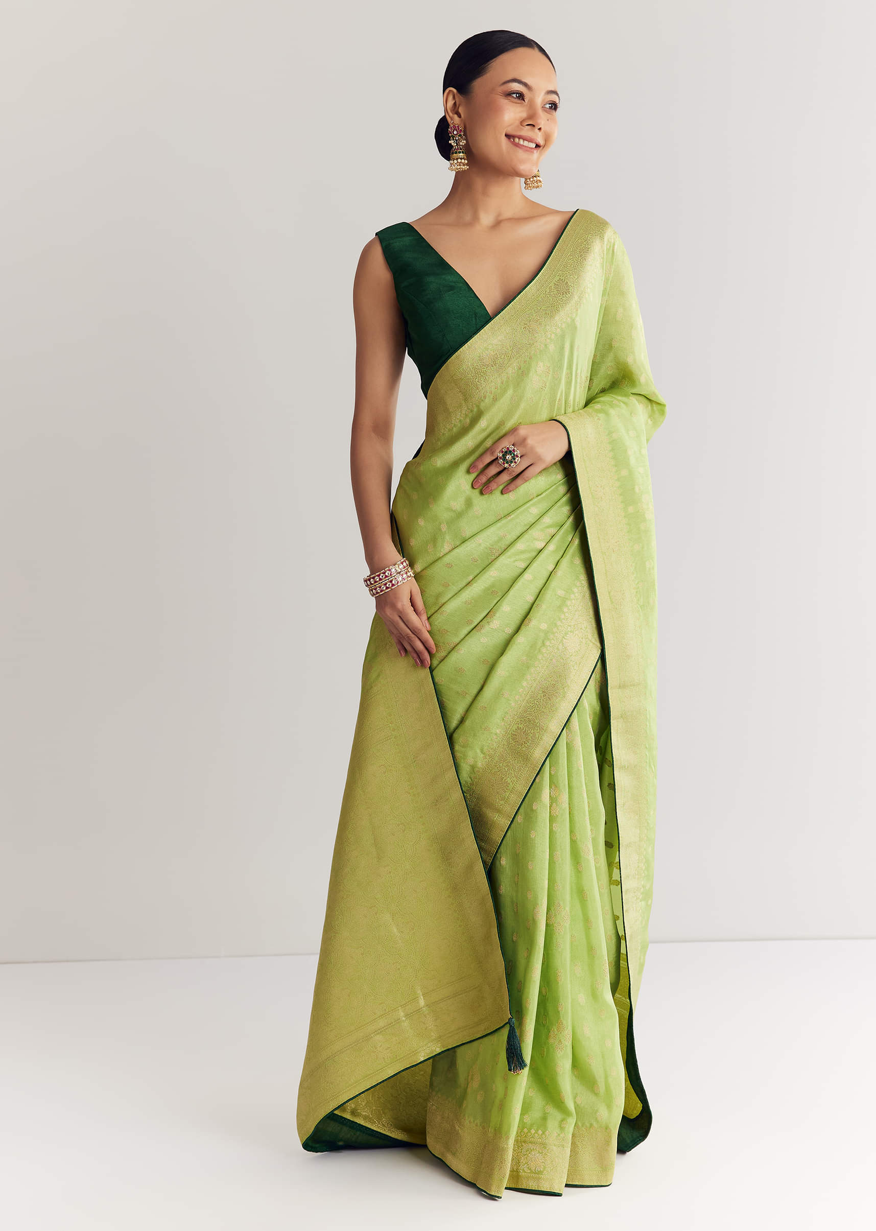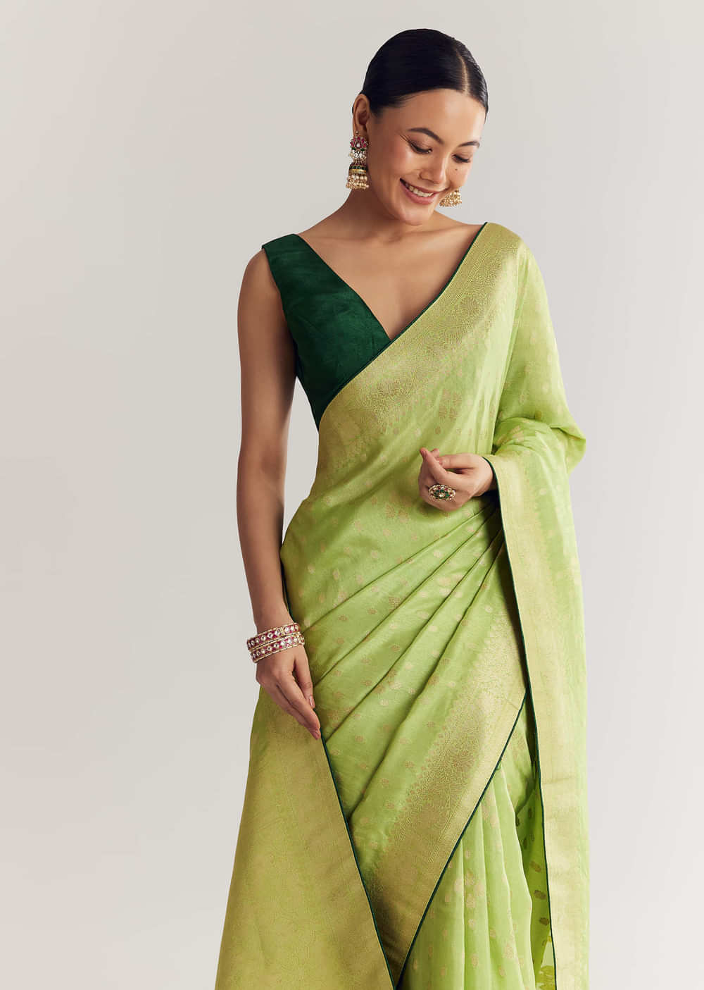Drape yourself in the mystique of this green saree. A star for engagement parties and festive evenings. Elegance redefined through subtle grandeur and grace. It tells a tale with every gentle sway. Awarded as the Most Trusted Brand, we're delivering styles you love, just as promised.